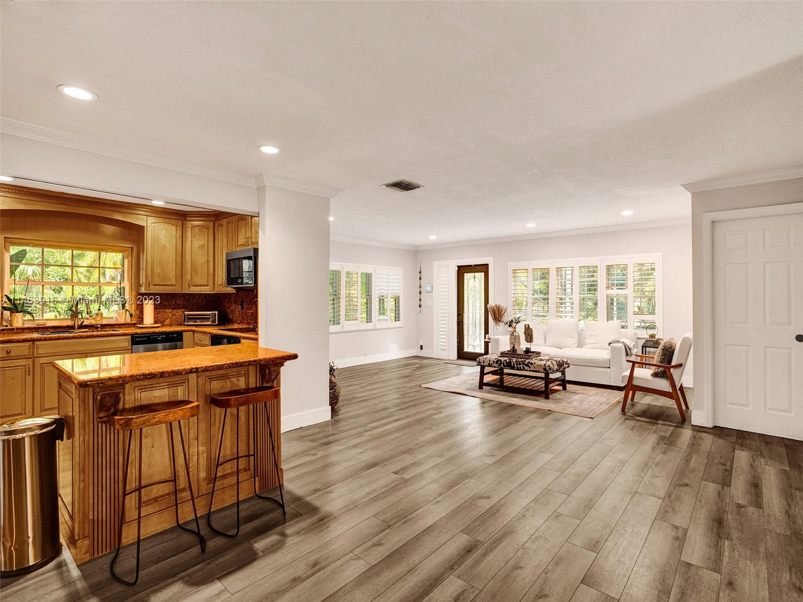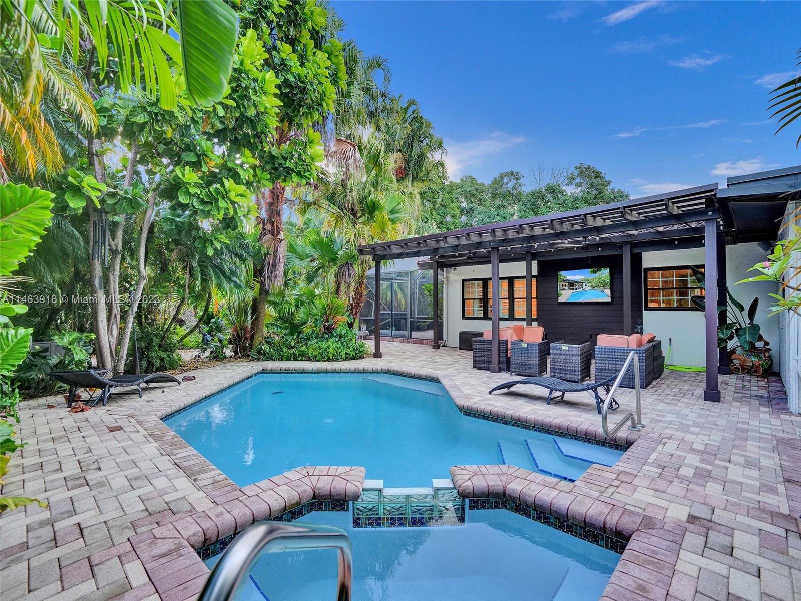 Welcome to this incredible home in the heart of Davie!!! This amazing property is located in a sought after neighborhood surrounded by beautiful homes, mature trees and nature walks, boasts its own stable and pond! Bring your horses, chickens, goats, etc.! This spacious 4 bedrooms/2bath home has a large living room, lrg family room, formal dining room, updated kitchen with granite countertops, wood cabinets, LVP floors, and vaulted ceilings. The exterior boasts a beautiful screened in patio, pool and spa surrounded by lush tropical plants, an outdoor living room, stable, and stocked pond with a castaway raft and also surrounded by beautiful tropical plants and a secluded firepit area. Living here is like living in your own private resort! Don't miss this incredible opportunity.