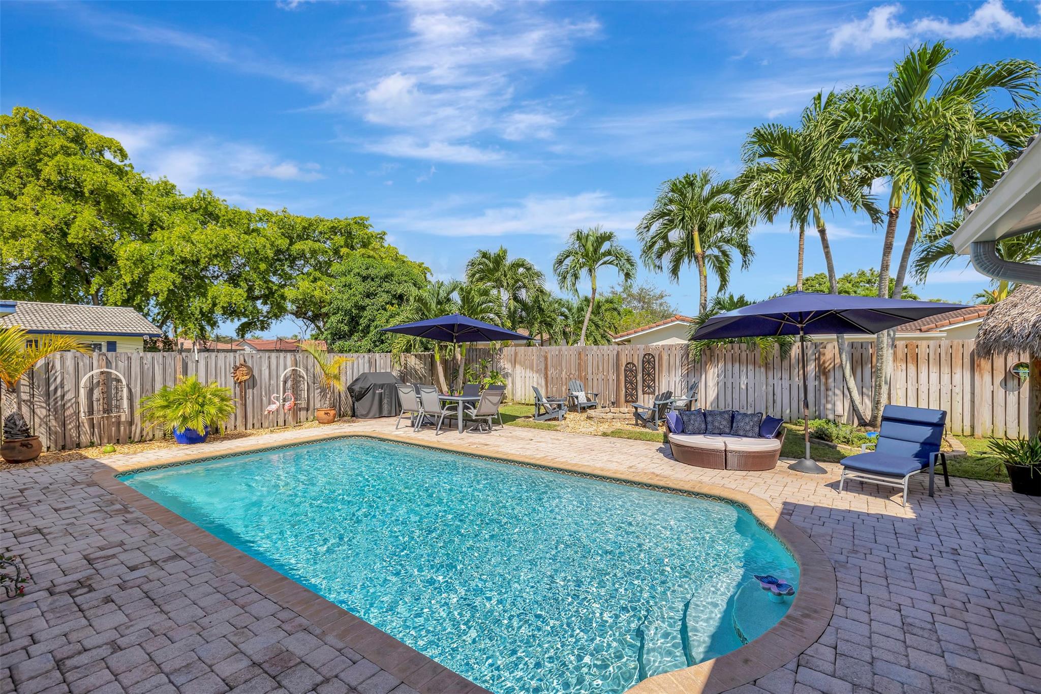 MUST SEE!! Welcome to YOUR beautiful 4/2/2 home! BEST LOCATION!!EXCELLENT SCHOOLS, SHOPPING AND RESTAURANTS! Dog park, Aquatic center, Ice Den, Tennis center AND pickleball down the street! This home features a private resort style back yard with pool, hot tub(2021), firepit and Tiki Hut. Inside you have a split floor plan with an oversized primary bedroom with a large ensuite bathroom! Newer stove, dishwasher and refrigerator (2021) and newer AC(2021)!! Beautiful luxury vinyl floors in bedrooms. Impact windows and doors! Laundry room inside! Gorgeous Landscaping with PAVED driveway and patio! Home is in great condition and ready for you to move in!