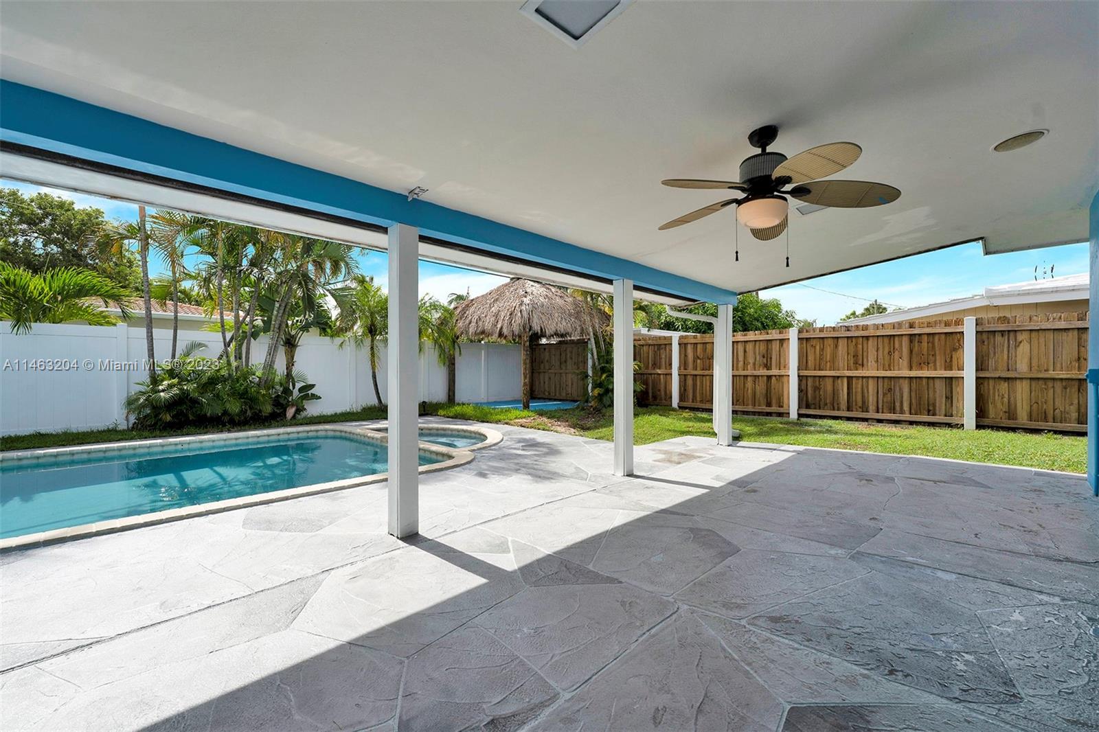 Beautiful home nestled on a quiet cul-de-sac street at the desirable Pompano Beach neighborhood. Open concept living, two bedrooms and one and half bathrooms with a great backyard and oversize salt water pool with attached hot tub and a tiki hut that makes a perfect combination for entertainment or family gatherings. This home features impact windows and doors, new and updated bathrooms and kitchen, new appliances, tankless water heater and, NEW ROOF! Conveniently located 5 minute drive to the beach and close to shopping, restaurants, entertainment and easy access to major roadways. Come see it and fall in love!