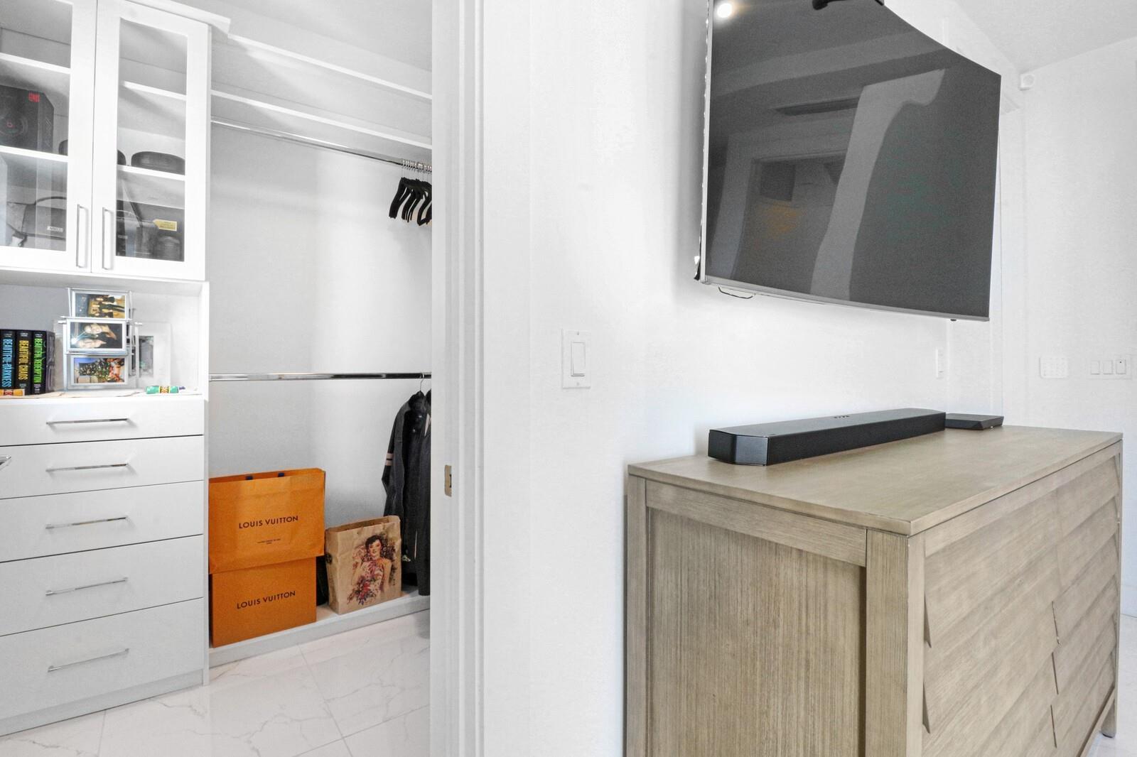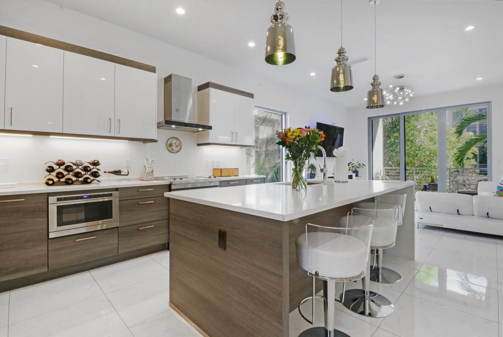 Indulge in luxurious living at Moderne Boca, one of Boca Raton's most exclusive townhome communities. This fully renovated 3-bedroom, 3.5-bathroom townhome with over $100k in upgrades with Daniel Clive's shades, fans, & chandeliers. Enjoy smart home with Google Nest and Alexa integration, allowing you to control your AC, lights, locks, music, and Ring alarm system with ease, Auto lights & remote-controlled shades also included. Upgraded bathrooms w bidets/warmers/lights , master walk-in shower w a massage system and a Jacuzzi tub. An elevator, porcelain tiles, Jenn-Aire appliances. The master suite has a built-in bar with a beverage cooler, custom built-ins his/her walk-in closets, & balcony overlooking the tropical pool setting. The corner unit is filled with natural light.
