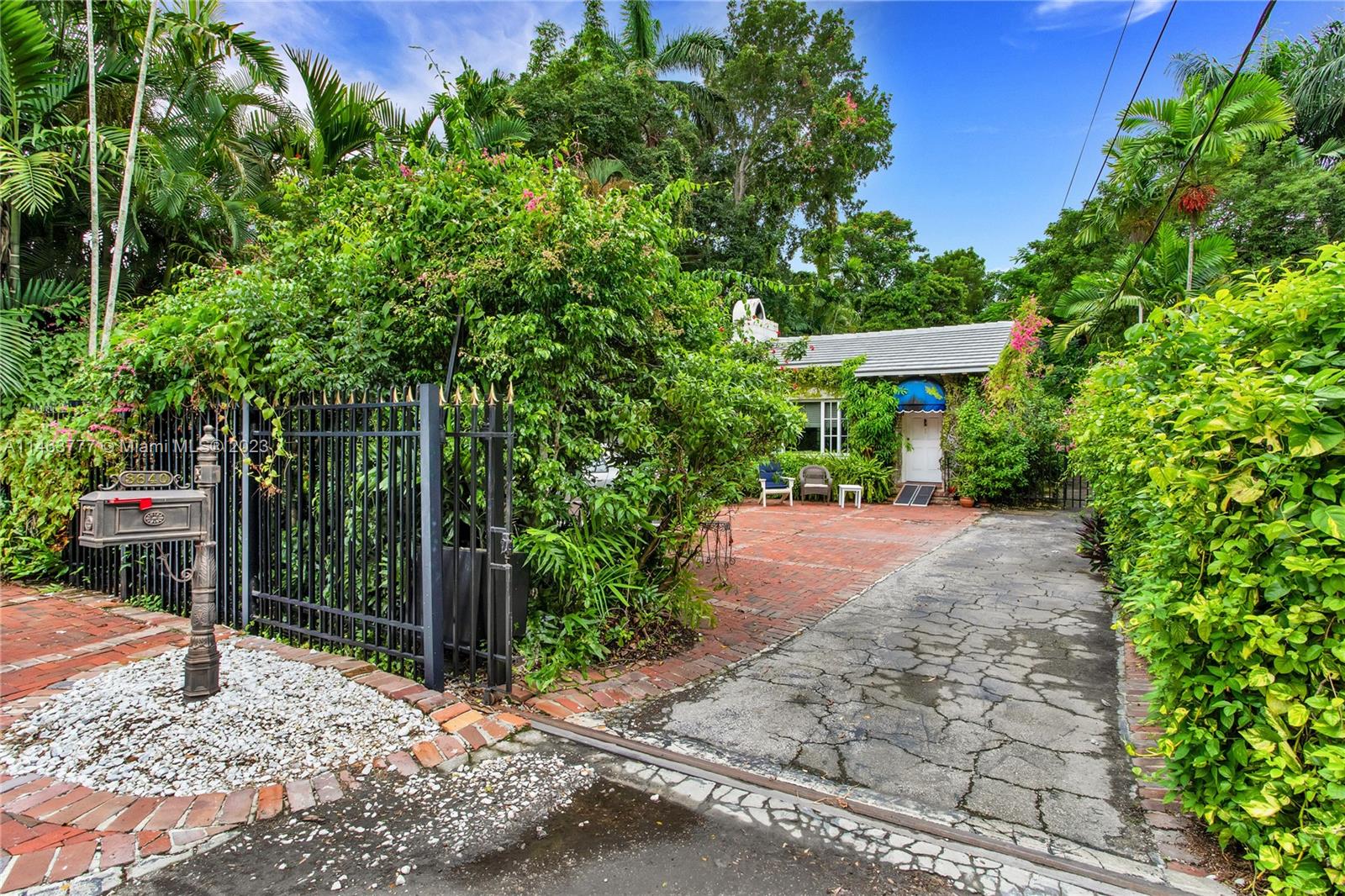 Charming gated home on a tree-lined street in lush South Coconut Grove. Built in 1934 with classic architectural details: vaulted, wood beamed ceilings, original wood & marble flooring, fireplace, French doors & more. Large formal living & dining spaces + 3BR/3BA and light-filled sunroom/office. New tile roof. Expansive 9100 SF lot offers gated parking, mature tropical landscaping, automated sprinkler & lighting systems, a redwood greenhouse, is totally fenced and has a detached 2 car garage. Room to add a pool. 15,000 KW emergency generator. Ready to update to your specifications. Walk or bike to the Grove villages boutiques, cafes and bayfront parks & marinas. Minutes to downtown, MIA, Coral Gables, Key Biscayne & the Beaches.