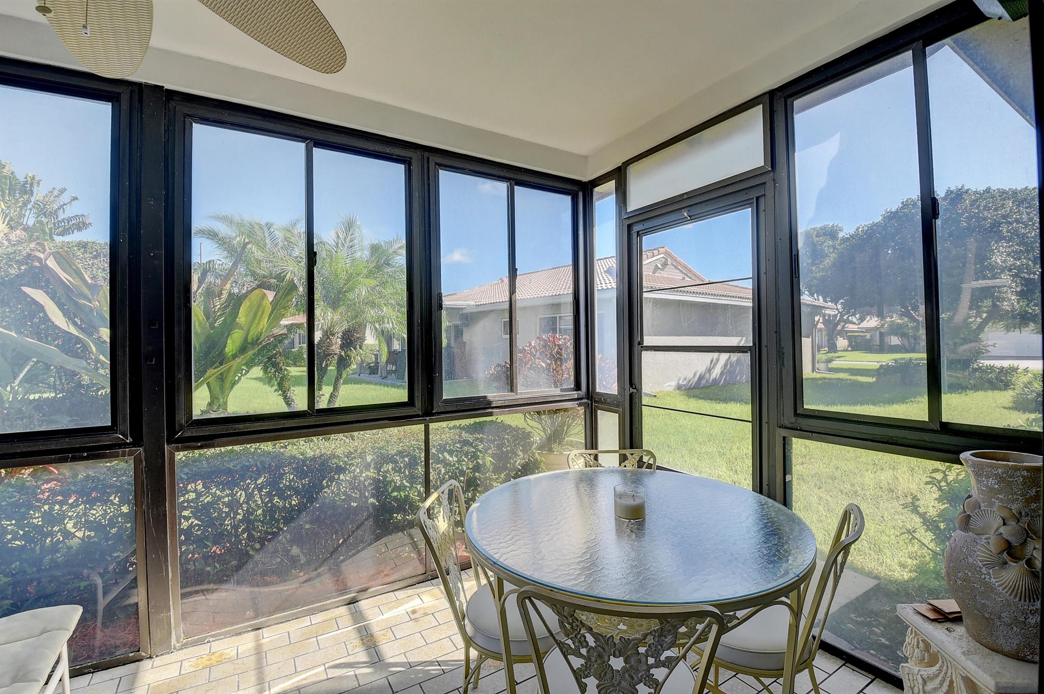 Quiet and Serene well managed 55+ community COLONY WOODS is in the heart of Central Boca Raton. This rarely available meticulously maintained 3/2 home has large bright eat in kitchen with pantry and bonus room (was laundry).The master bedroom has multiple closets and large dressing area. The living room and dining room look out into a garden area and is steps away from the community pool. The 3rd bedroom is currently being used as a den. The floor plan has a great flow yet offers privacy. Two car garage. Cars must be kept in garage over night.