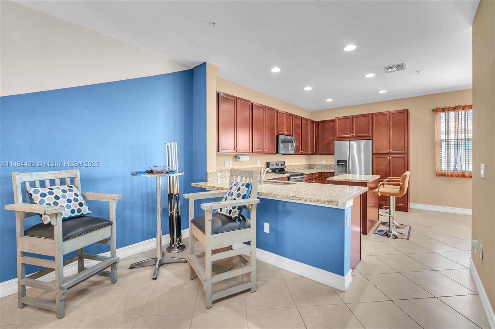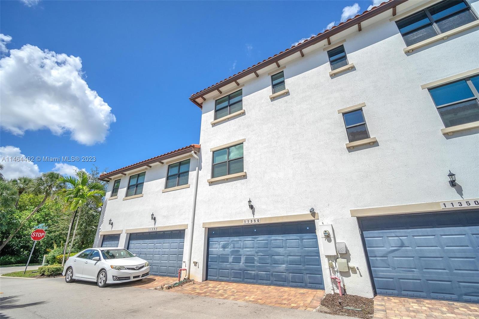 Enter this modern 3 story 2016 townhome from the lush, shaded community gardens that you can admire from a balcony on every floor! Your first level conveniently has its own bedroom, bath & storage. Climb the staircase to a kitchen nicely finished with 42" upper wooden cabinets, stainless steel Whirlpool appliances, granite counters & center isle with lots of extra space. Dining & living areas are ample with 17x17 ceramic tiles & beautiful ceiling lamps + nicely appointed powder room. Your top floor boasts a spacious, carpeted master with dual closets & sinks with a luxury soaker tub, clear tempered glass shower and fine finishes. The 3rd bed & bath are also on this floor. Your 2 car garage has a showroom floor. Community has gym & heated pool. Very well located near I75, shops & services.