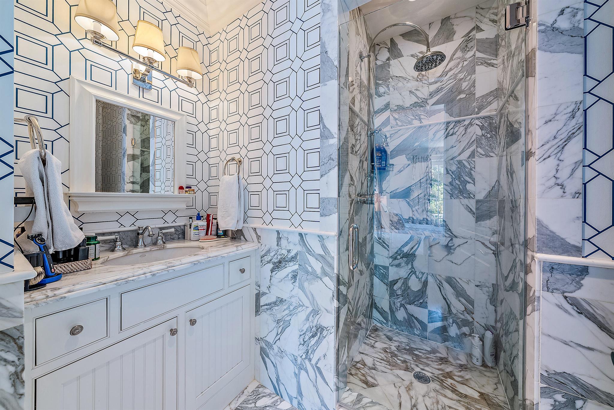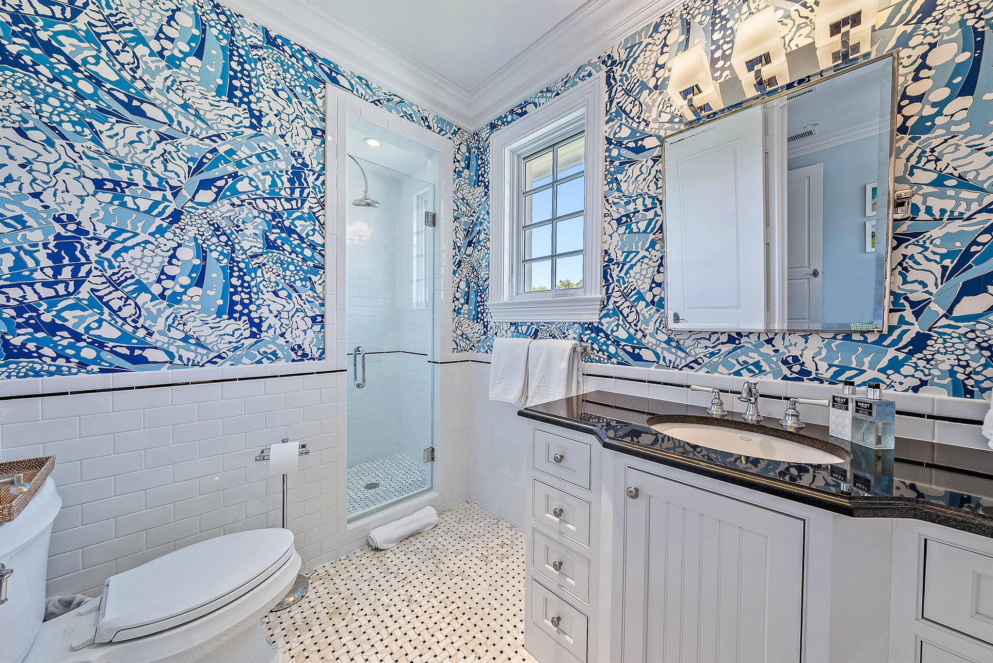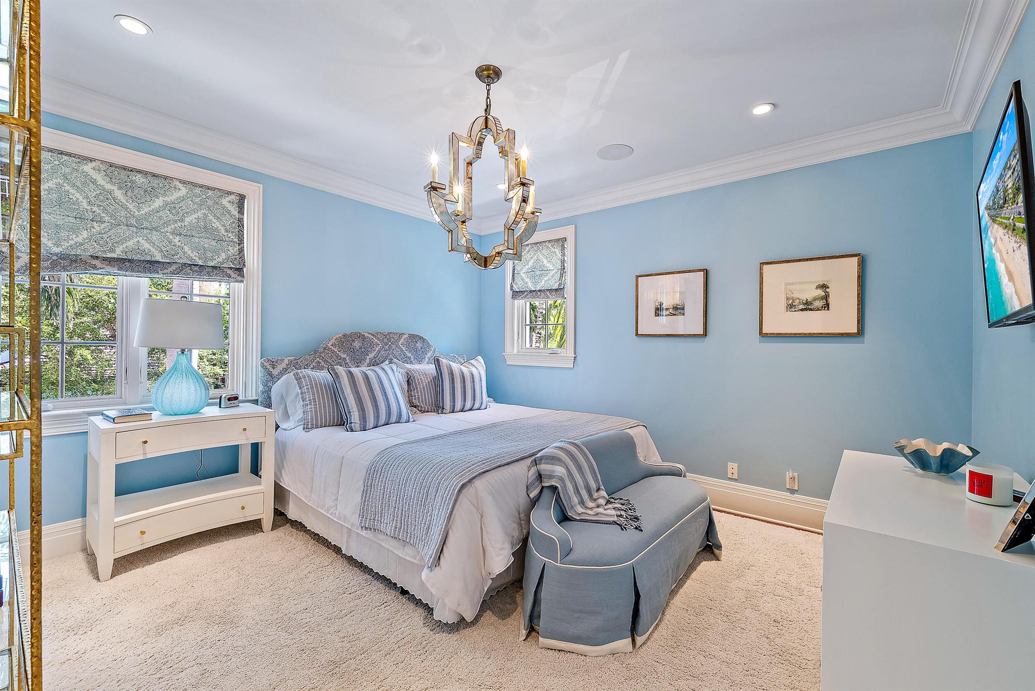 Stunning, light and bright British Colonial built in 2007 with 6 bedrooms, 7 bathrooms, and 1 powder room. Highly desirable north end gem with ocean beach access at the end of the street. Highlights include formal dining room, elevator, 2-car garage, and double height foyer and living room. Oversized gourmet chef's kitchen with top-of-the-line appliances opens to family room with beautiful built-ins. Stunning primary suite with large balcony, dual baths and walk-in closets. Spectacular outdoor spaces feature lush tropical landscaping, pool with spa, covered loggia and open patio perfect for outdoor entertaining.
