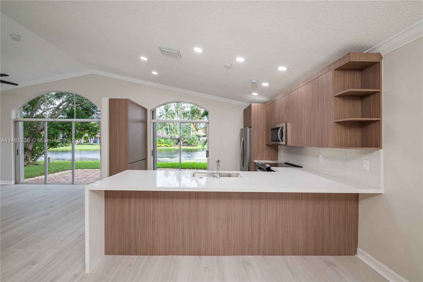 Discover the epitome of modern living at Emerald Isle in the real heart of Weston, Florida. This beautifully one story all remodeled, 3-bedroom, 2-bath home offers a spacious new kitchen with brand-new appliances, fresh bathrooms, and new laminated wood floors throughout. A brand new roof, with permits, prepaid in full and soon to be installed, ordered tiles, ensures peace of mind, while accordion shutters, a pavers on patio, a large backyard, and tranquil lake views add to the allure. Nestled within a small gated community with a pool, this property enjoys proximity to A+ rated schools, parks, and a strong focus on safety. Embrace the Weston lifestyle in this exquisite home.