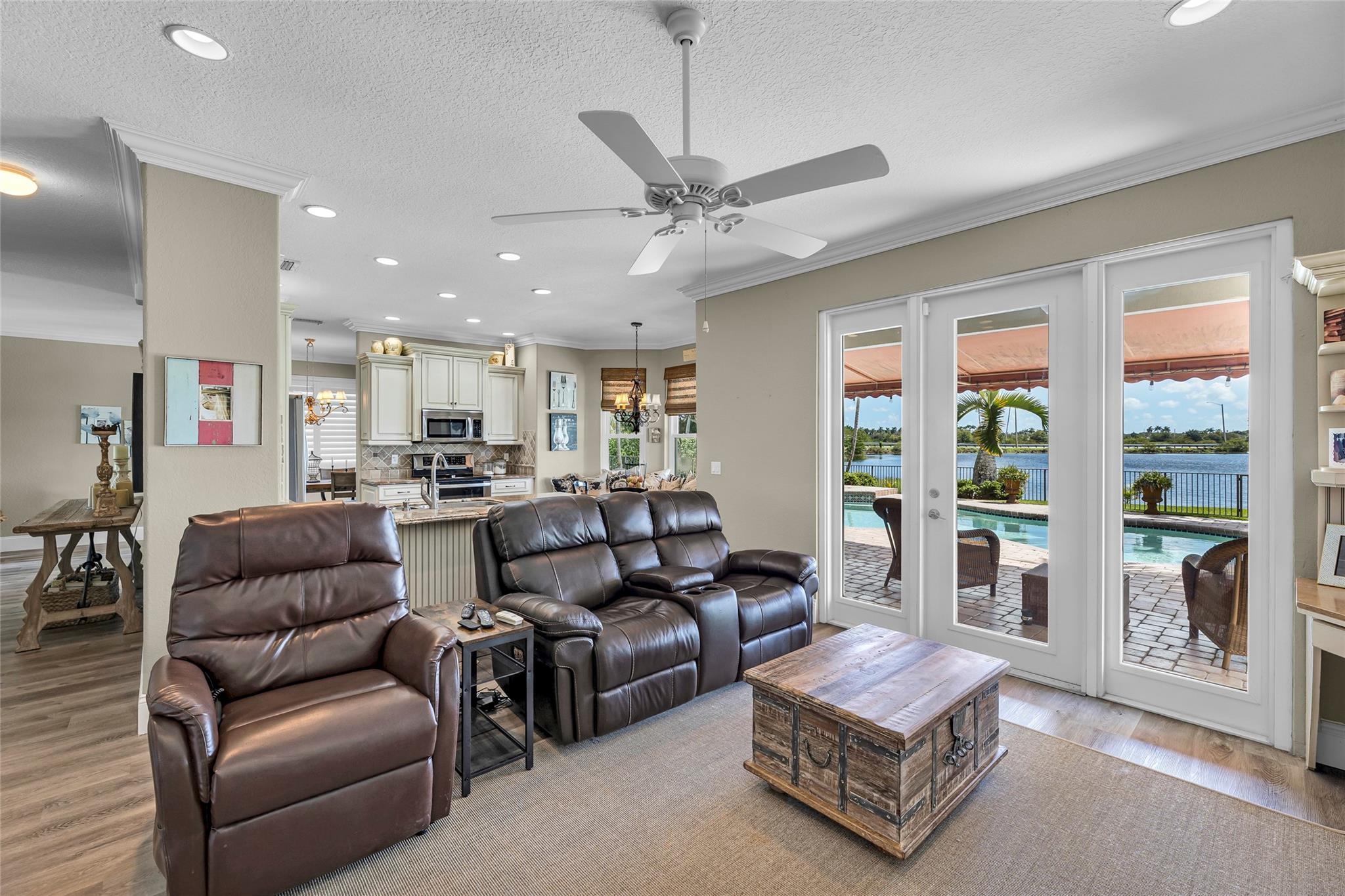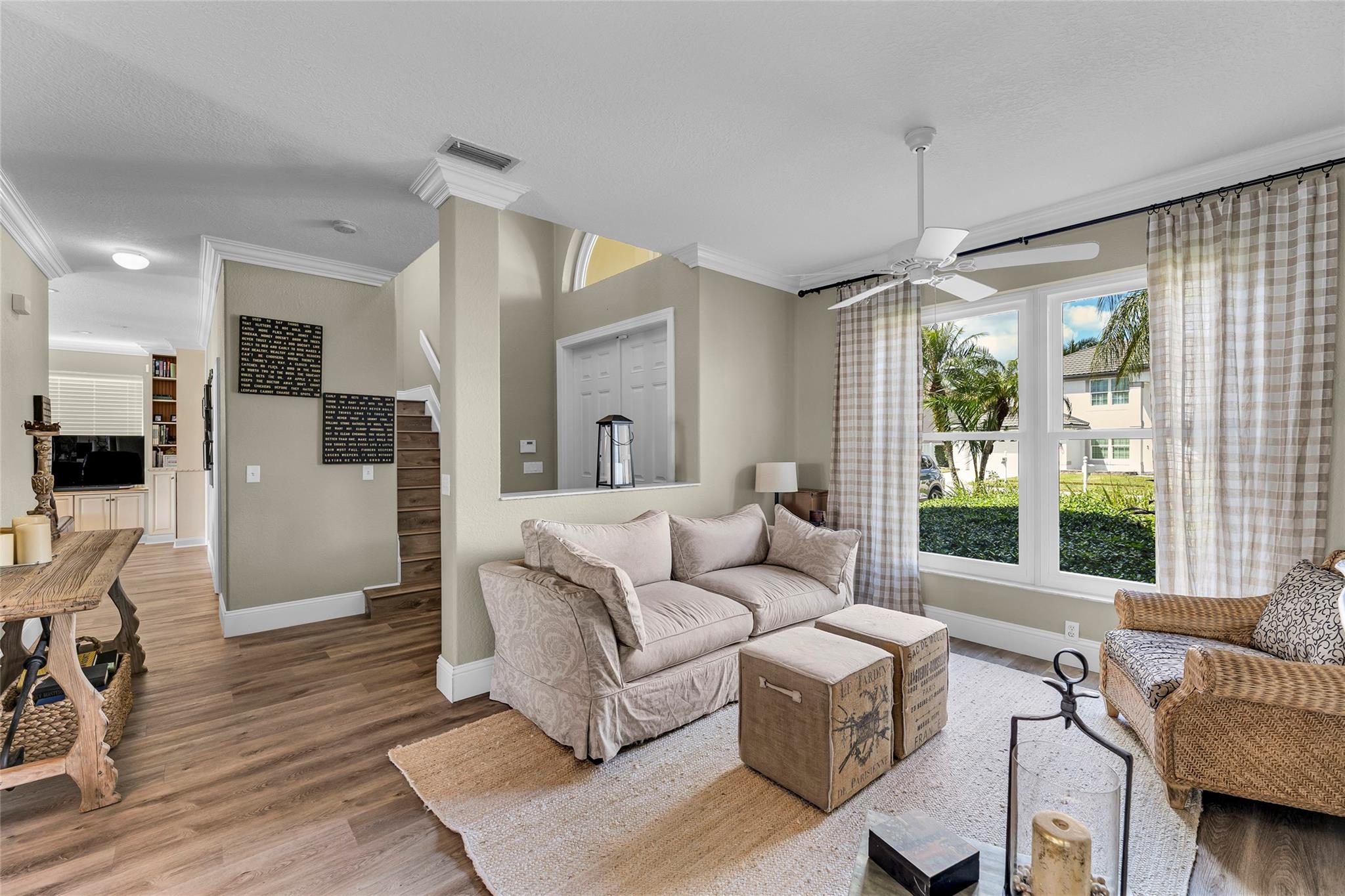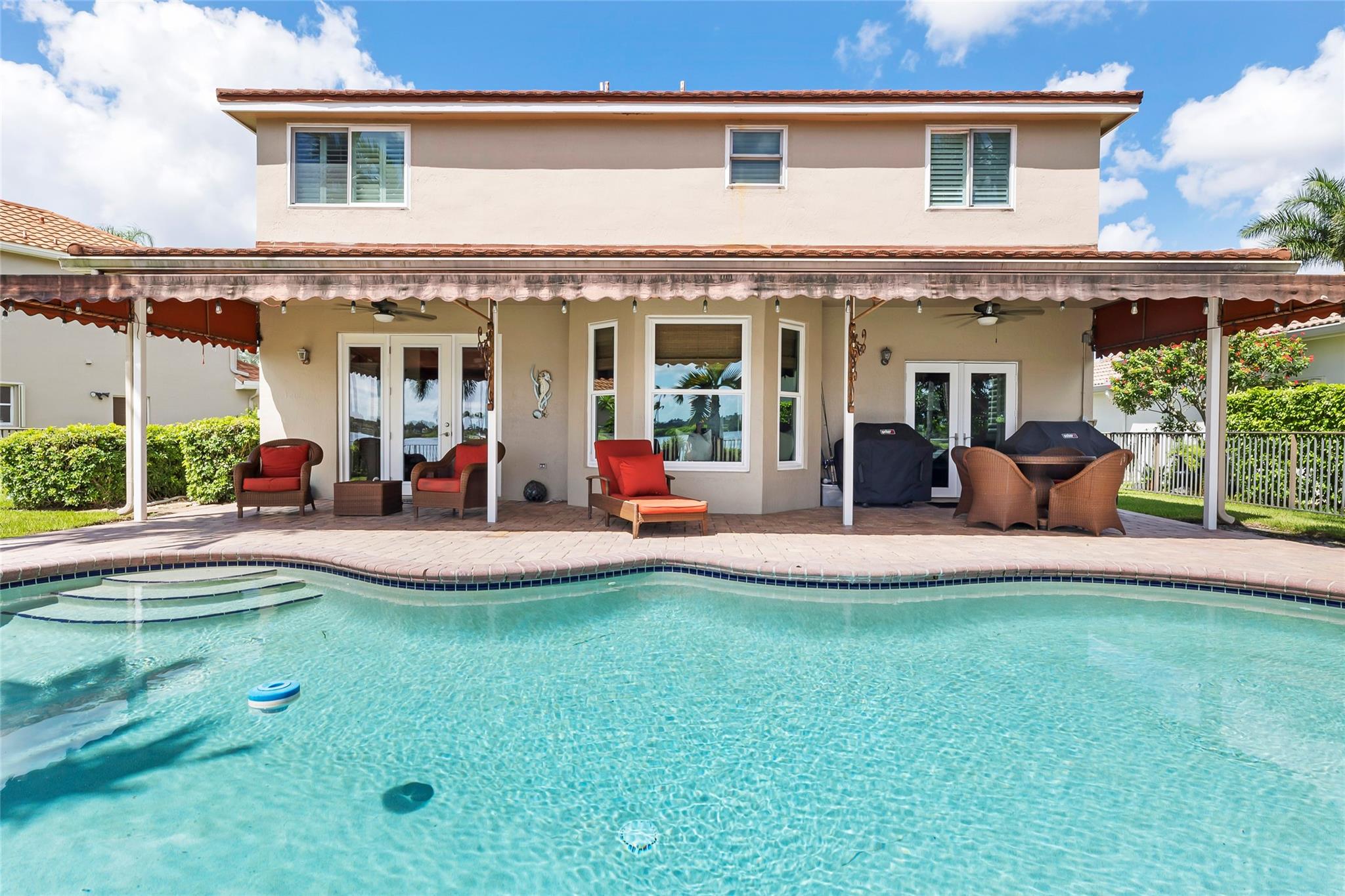 Absolutely stunning, 2-story, 3 bedroom, 2.5 bathroom lakefront home with pool. Wood flooring throughout entire home. Living room overlooks gorgeous lake facing south, perfect for entertaining guests. Beautiful updated kitchen, with formal dining and living room. Family room leads to spacious backyard and pool with pavers, palm trees, grass and nature all around. Covered patio in backyard with cloth awnings. LG appliances throughout the kitchen. All bedroom upstairs including loft area, great for relaxation. Master bedroom features built-out closets and updated bathroom with jacuzzi bathtub and huge walk-in shower. Guest bathroom has combo shower/bathtub.