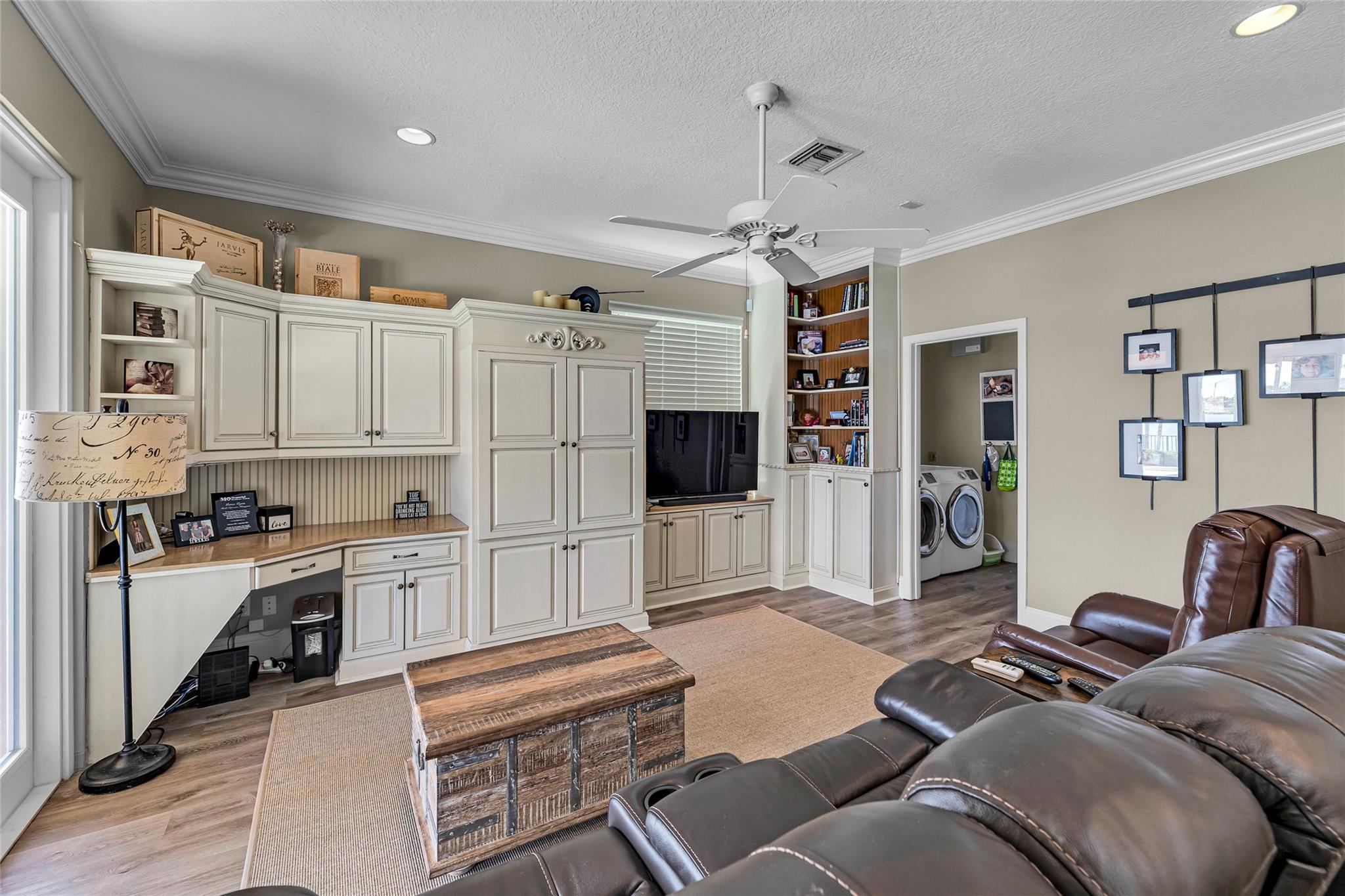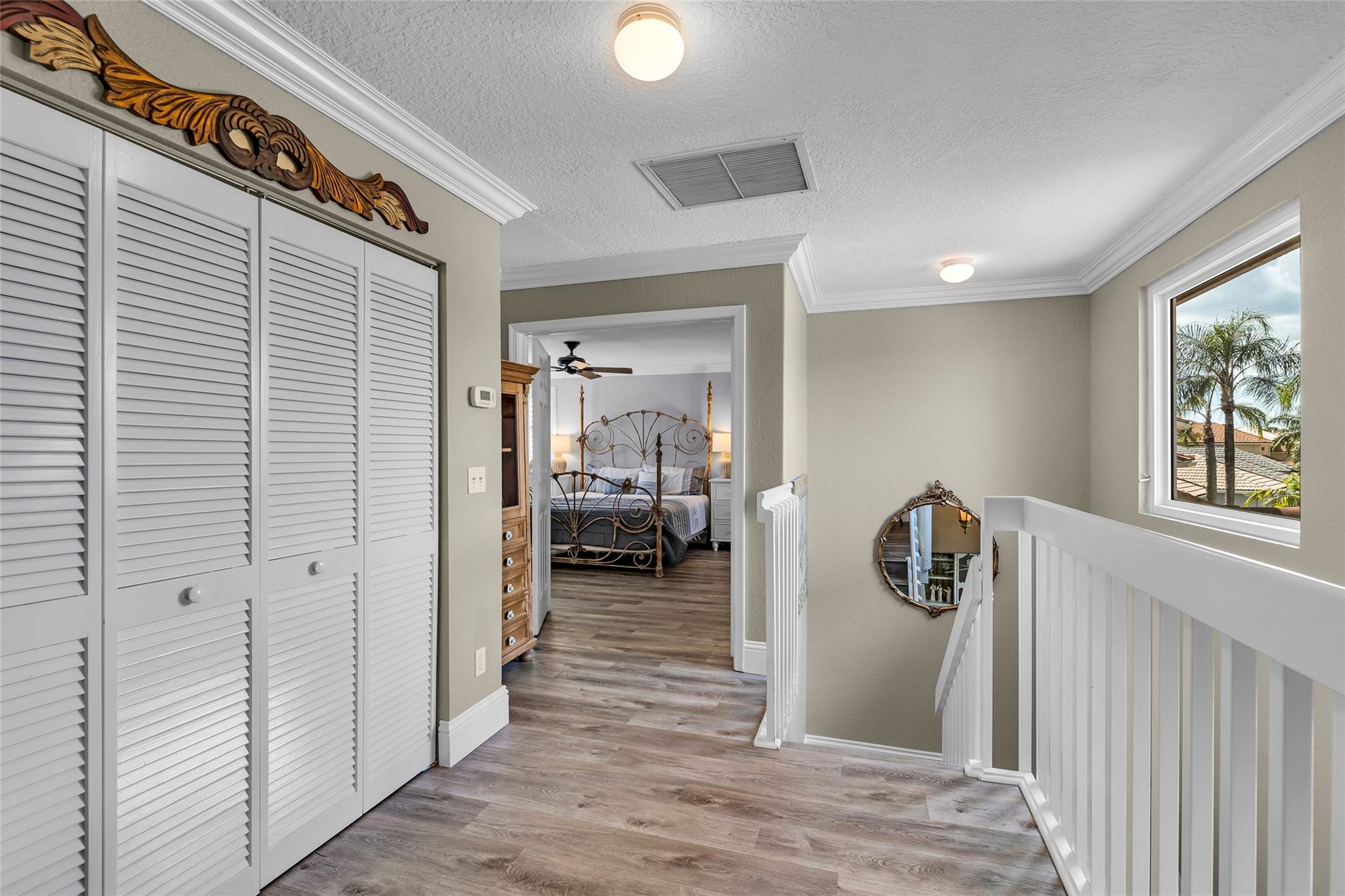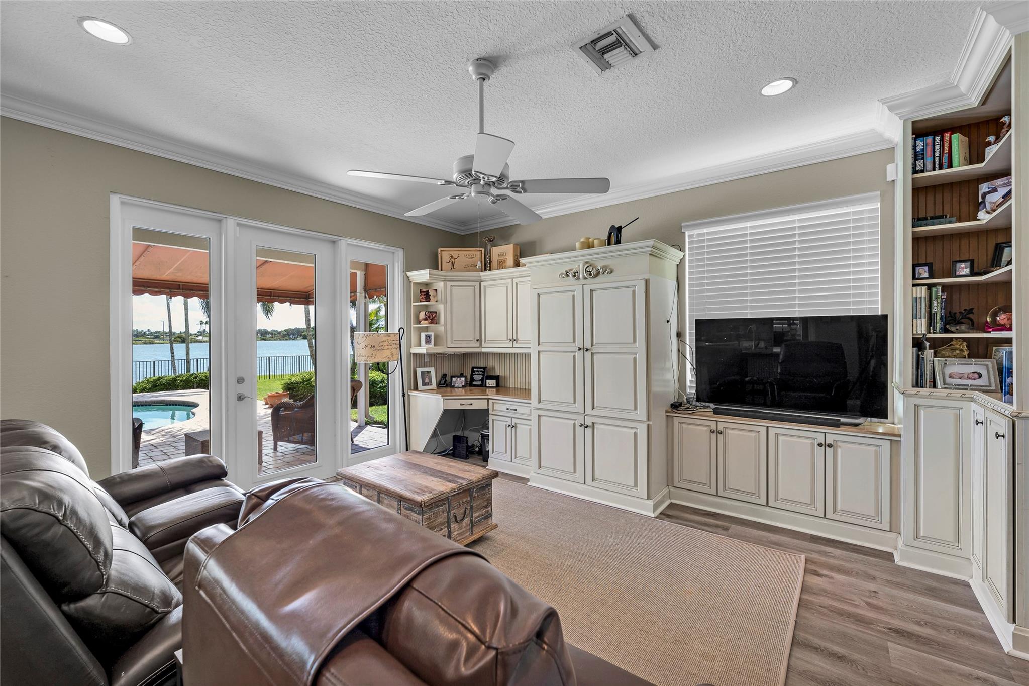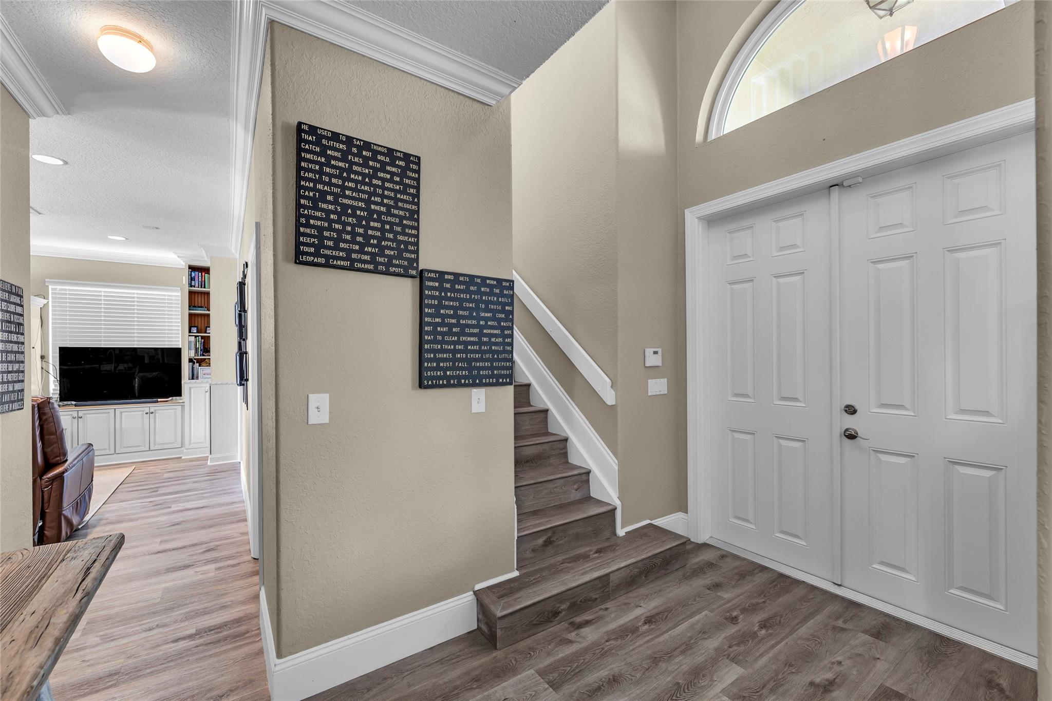 Absolutely stunning, 2-story, 3 bedroom, 2.5 bathroom lakefront home with pool. Wood flooring throughout entire home. Living room overlooks gorgeous lake facing south, perfect for entertaining guests. Beautiful updated kitchen, with formal dining and living room. Family room leads to spacious backyard and pool with pavers, palm trees, grass and nature all around. Covered patio in backyard with cloth awnings. LG appliances throughout the kitchen. All bedroom upstairs including loft area, great for relaxation. Master bedroom features built-out closets and updated bathroom with jacuzzi bathtub and huge walk-in shower. Guest bathroom has combo shower/bathtub.