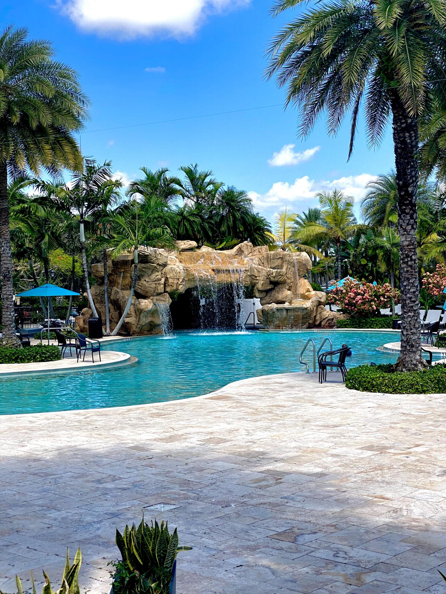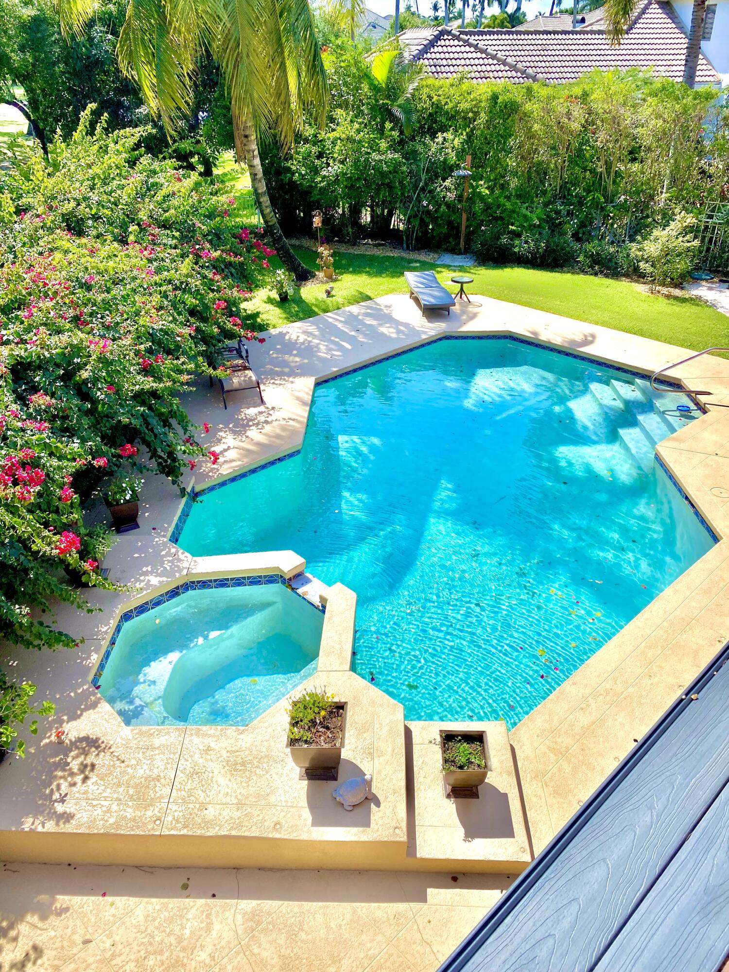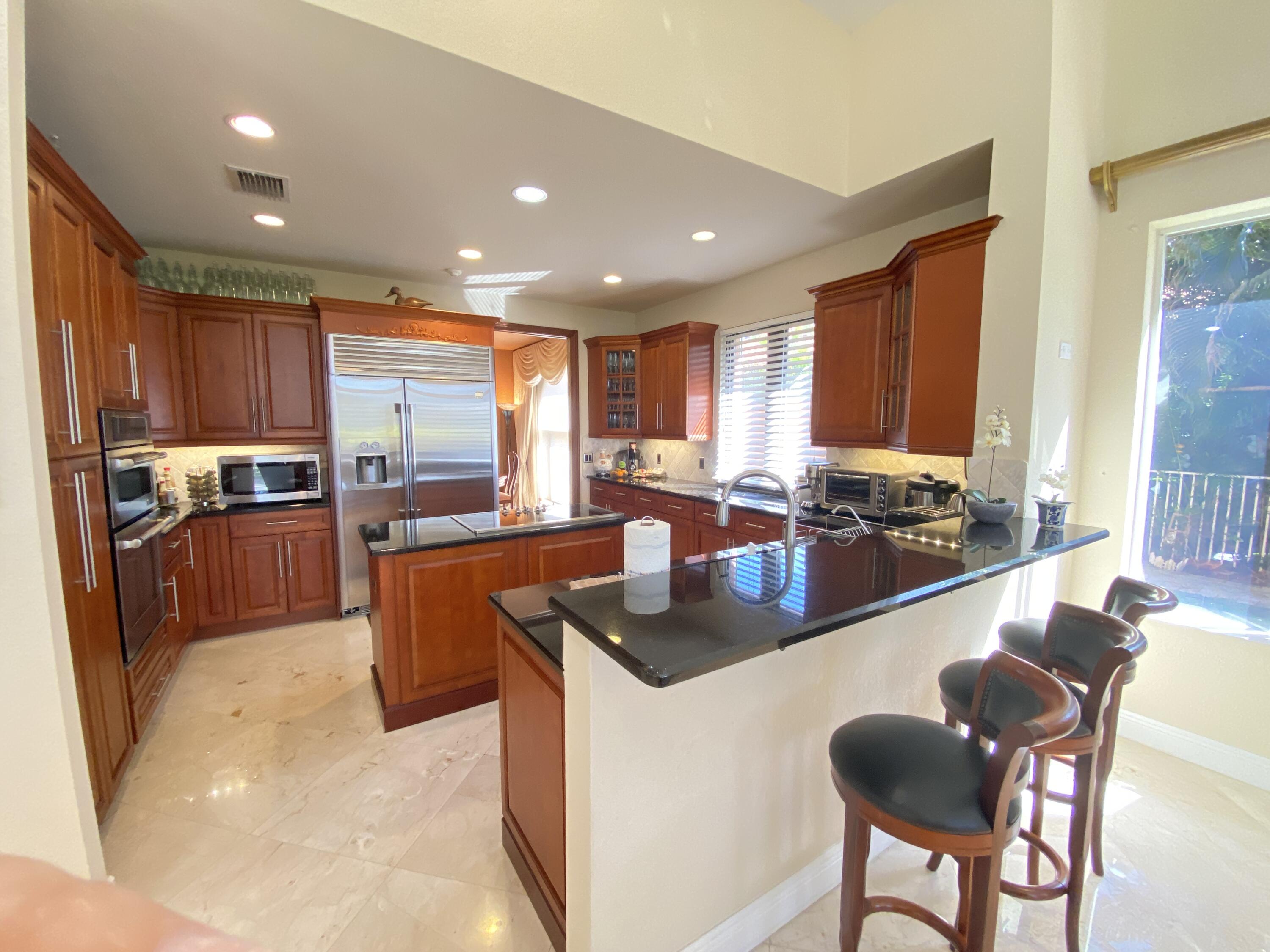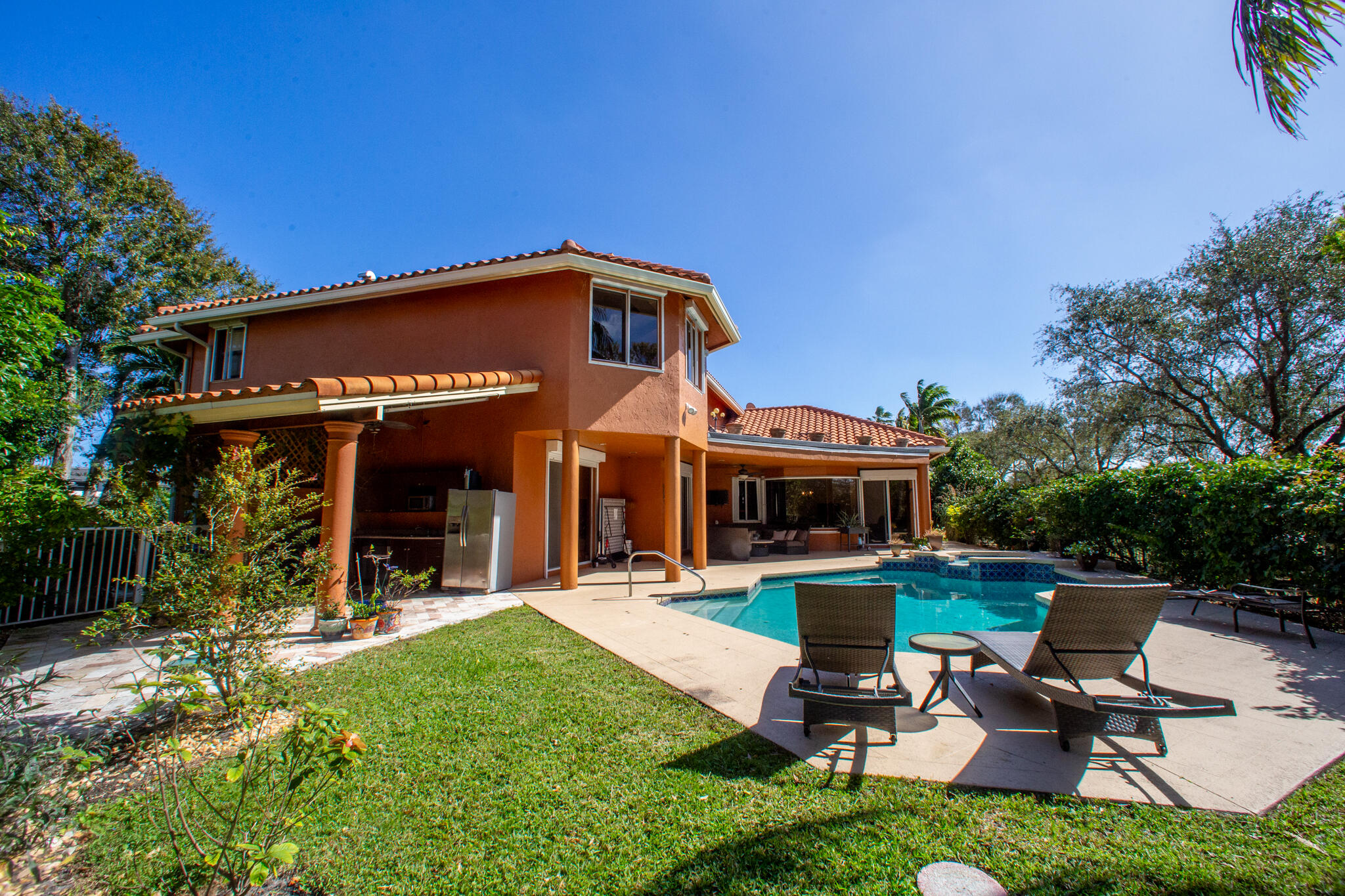 NOW EASY TO SHOW RELAX at your gorgeous, private 6 BD/5 BA home on a cul-de-sac in the Estate section of Grand Oaks featuring marble floors throughout 1st floor, a backyard great for entertaining w/ salt water pool, shower, summer kitchen & cabana bath. Downstairs 2 remodeled bathrooms w/quartz countertops, hand picked vessels & frameless glass shower doors. The upstairs Master Bedroom boosts a large deck with splendid view, bath w/spa tub, double sinks & large closet. Kitchen with granite counter tops, stainless stell appliances and island. Driveway/sides has tumbled travertine floors. Delicious fruit trees: mango, avocato, coconut tree & butterfly garden. Roof 2012. Mandatory membership to the estate of the art Broken Sound Country Club featuring golf, tennis, pickle ball, restaurant.