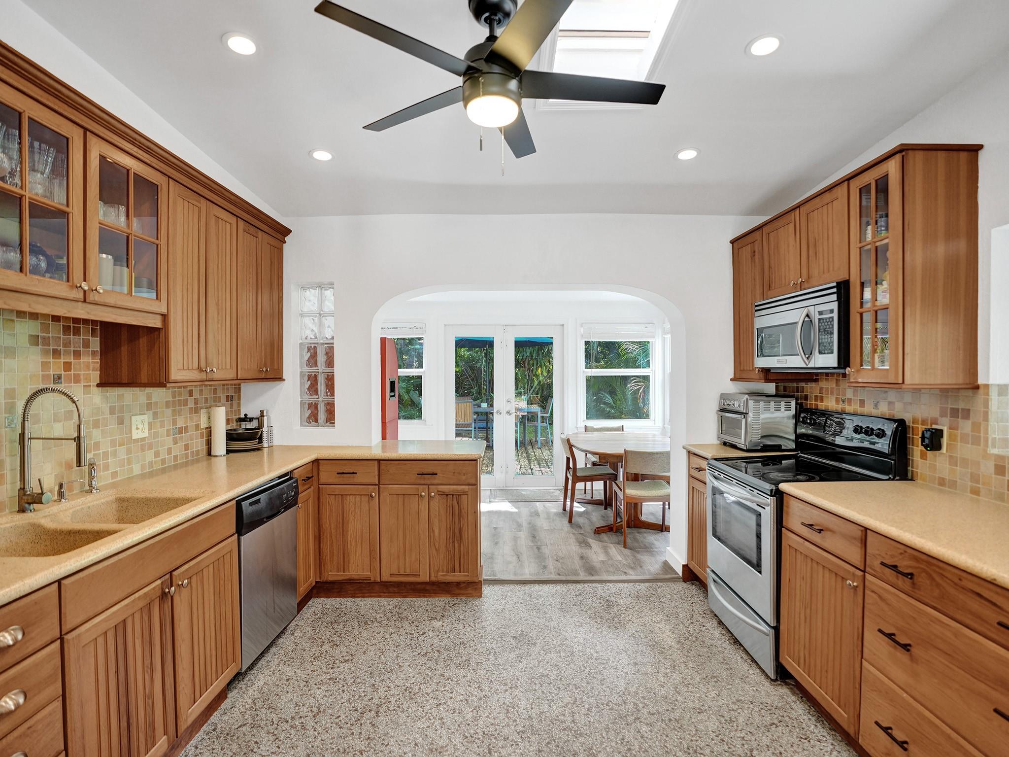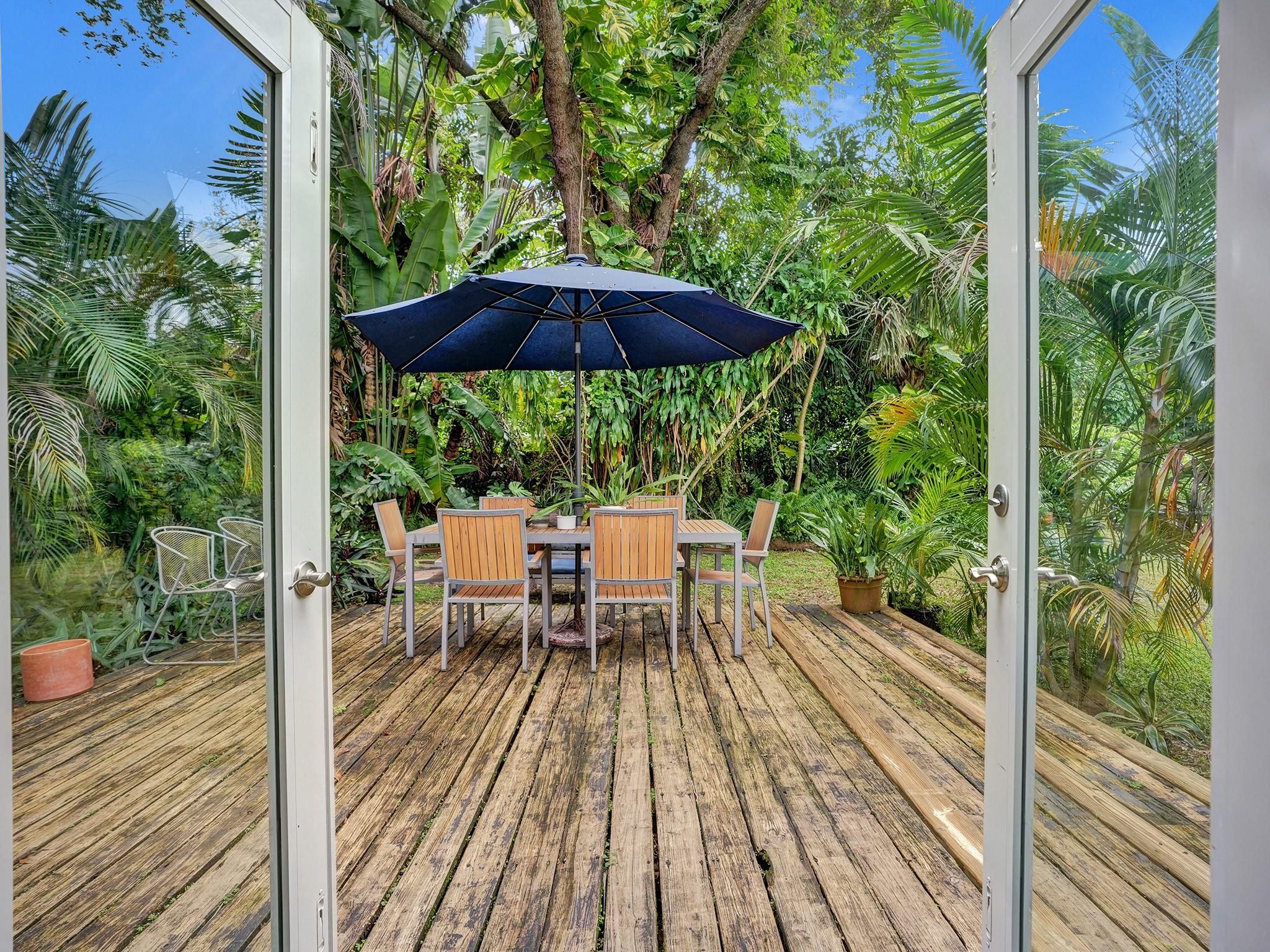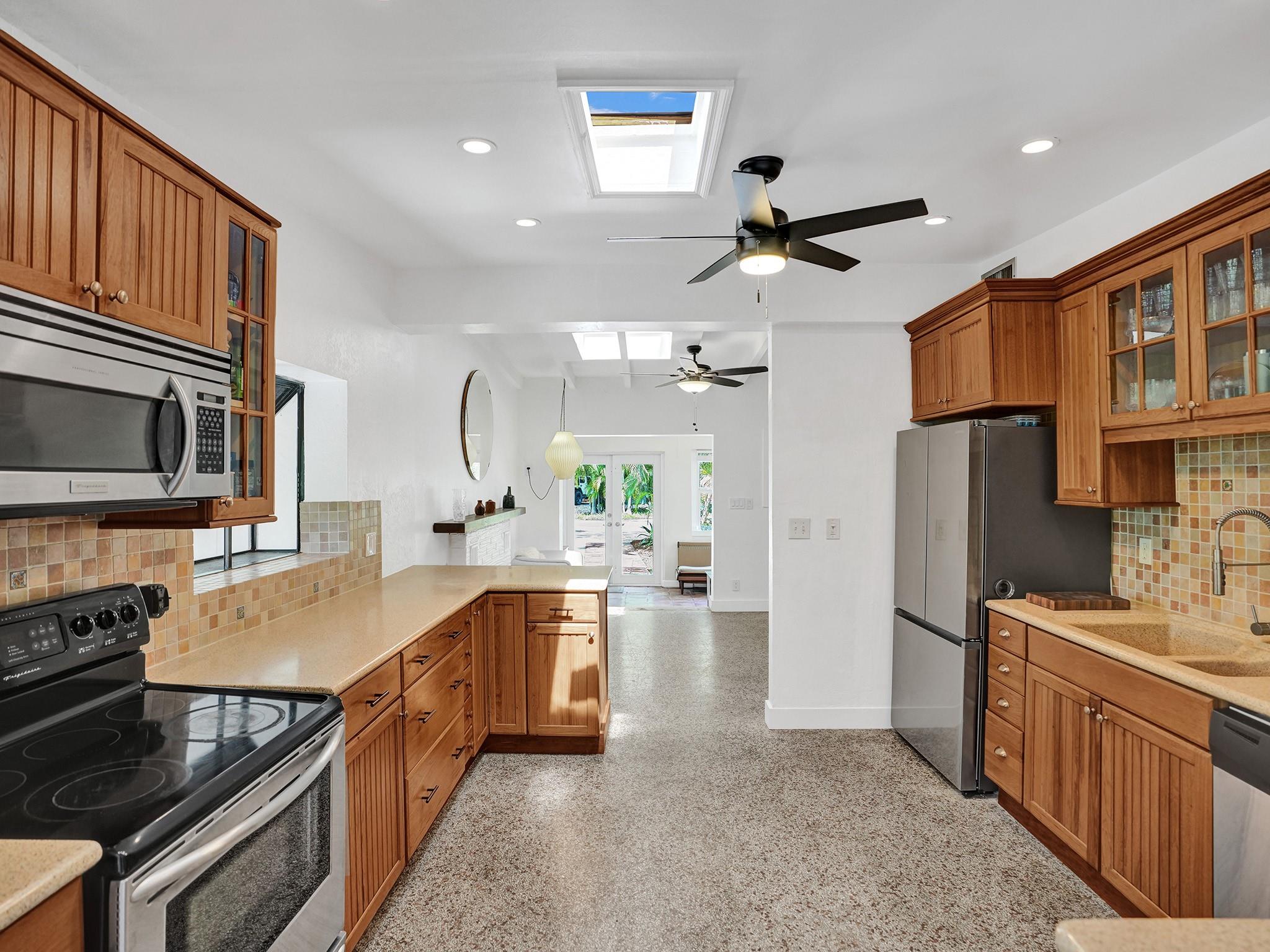Mid Century Delight! 2 bed 2 bath Home in Sought After Shady Banks. Polished Terrazzo Floors, Exposed Beam/Vaulted Ceilings, Fireplace. Freshly Painted Interior& Exterior. New Roof 2023, Impact Windows/Doors. Big Open Kitchen w/ Great Storage. Tankless Water Heater(2022) Natural Light from the New Skylights. Primary Bedroom has Additional Sitting Area/Office Space w/ French Doors leading out to the Back Yard. Sunny Dining Area off the Kitchen Leads to Large Deck Area - Enjoy Morning Coffee & Evening Cocktails Big Backyard Surrounded by Mature, Tropical Landscape. This Home Offers the Perfect Tranquil Retreat but is Minutes from Downtown, Las Olas &the Beach. One Way In/Out, surrounded by the New River, No Through Traffic & 2 Parks Make this East Ft Lauderdale's Hidden Gem Neighborhood.