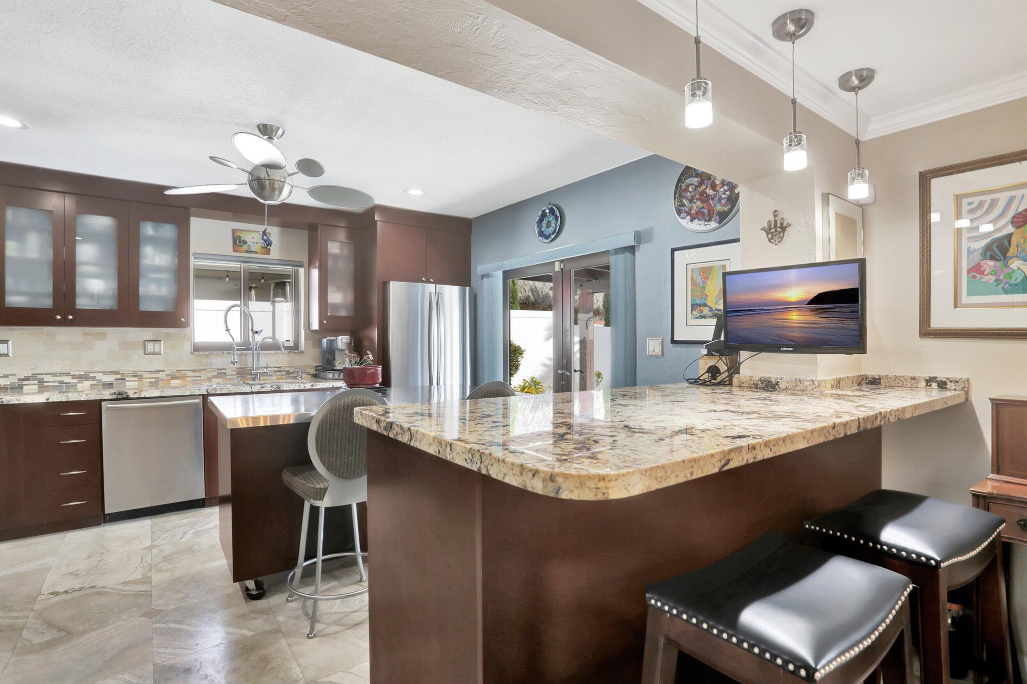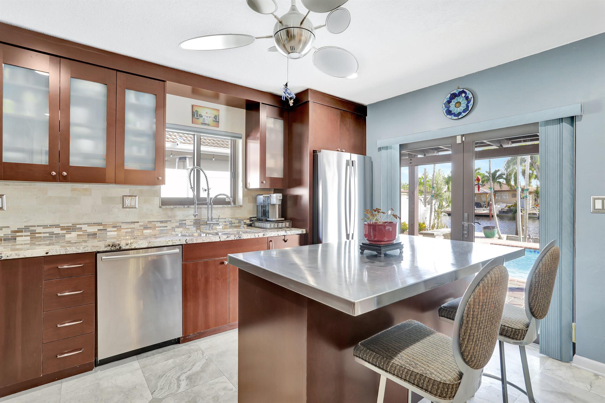 DEEP WATER - 65 FT WATERFRONT UPDATED 3 BEDROOM 3 BATH SPLIT PLAN 2002 SQFT UNDER AIR PLUS ONE CAR GARAGE & CIRCULAR DRIVEWAY NO HOA . 1 OF A KIND HUGE KITCHEN WITH HIGH END APPLIANCES, ISLAND, BAR, FRENCH DOORS FROM MASTER, ALL NEW BATHROOMS WITH QUARTZ COUNTERTOPS SEPARATE JACUZZI TUB IN MASTER BATHROOM SATURNIA MARBLE & LARGE PLANK WOOD FLOORING MASTER BATHROOM HAS LARGE WALK IN CLOSET ,FRENCH DOORS LOOKING OUT TO POOL & CANAL ,ALL IMPACT WINDOWS & DOORS THROUGHOUT THE HOUSE HAS A TANKLESS GAS HOT WATER HEATER 65FT DOCK WITH ELECTRIC LIFT ,LARGE POOL 30 FT LONG JUST RE DONE TO DIAMOND BACK & NEW POOL PUMP WITH COVERED PATIO ,NO FIXED BRIDGES TO THE OCEAN MINUTES TO INTERCOASTAL, RESTAURANTS, A MUST SEE !