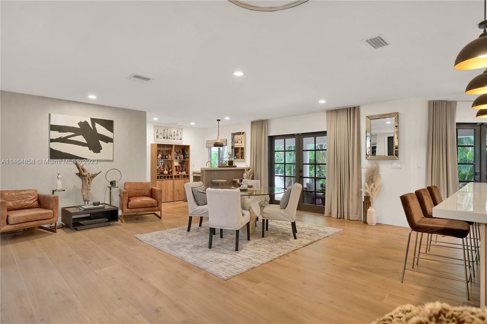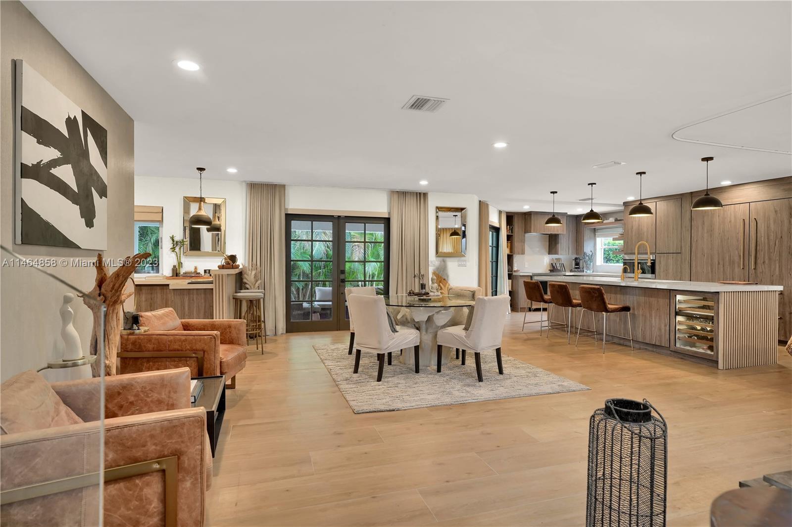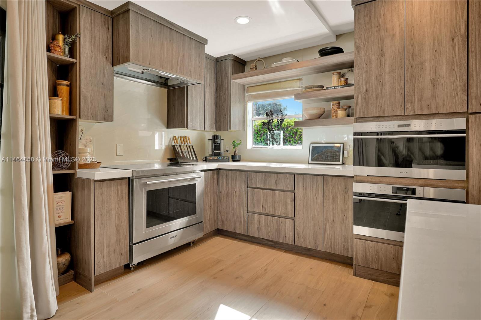 Exquisite Coral Gables Oasis, walking distance to The Plaza on Ponce de Leon and downtown Gables. This gem boasts a designer kitchen, Wolf/Subzero appliances including steam oven, wine cooler, oversized fridge/freezer, water filtration, glass-enclosed office, bathed in natural light, invites productive days. Unwind in the spa-like master bathroom, your personal retreat. So many luxuries...Kohler fixtures, 2 new A/C's, smart tech lighting, camera/surveillance/alarm system, new washer/dryer, Nest A/C control, textured straw wallpaper, wide plank ceramic floors, custom millwork, privacy curtain in family room, one car garage, room for a pool. Luxury and convenience converge in this charming sanctuary. Your dream home, waiting to embrace your every desire, awaits you in beautiful Coral Gables.