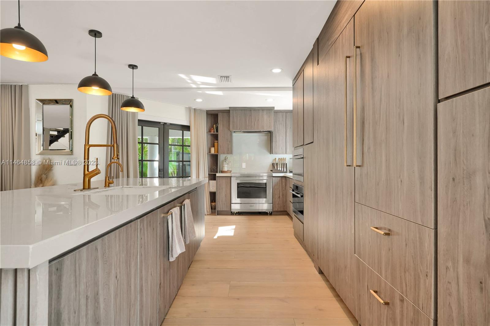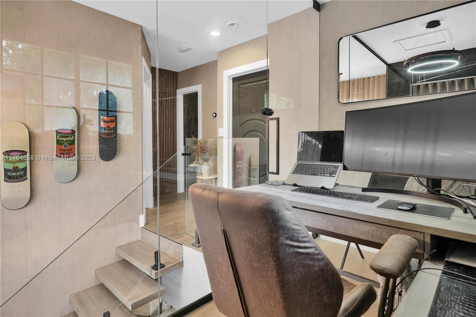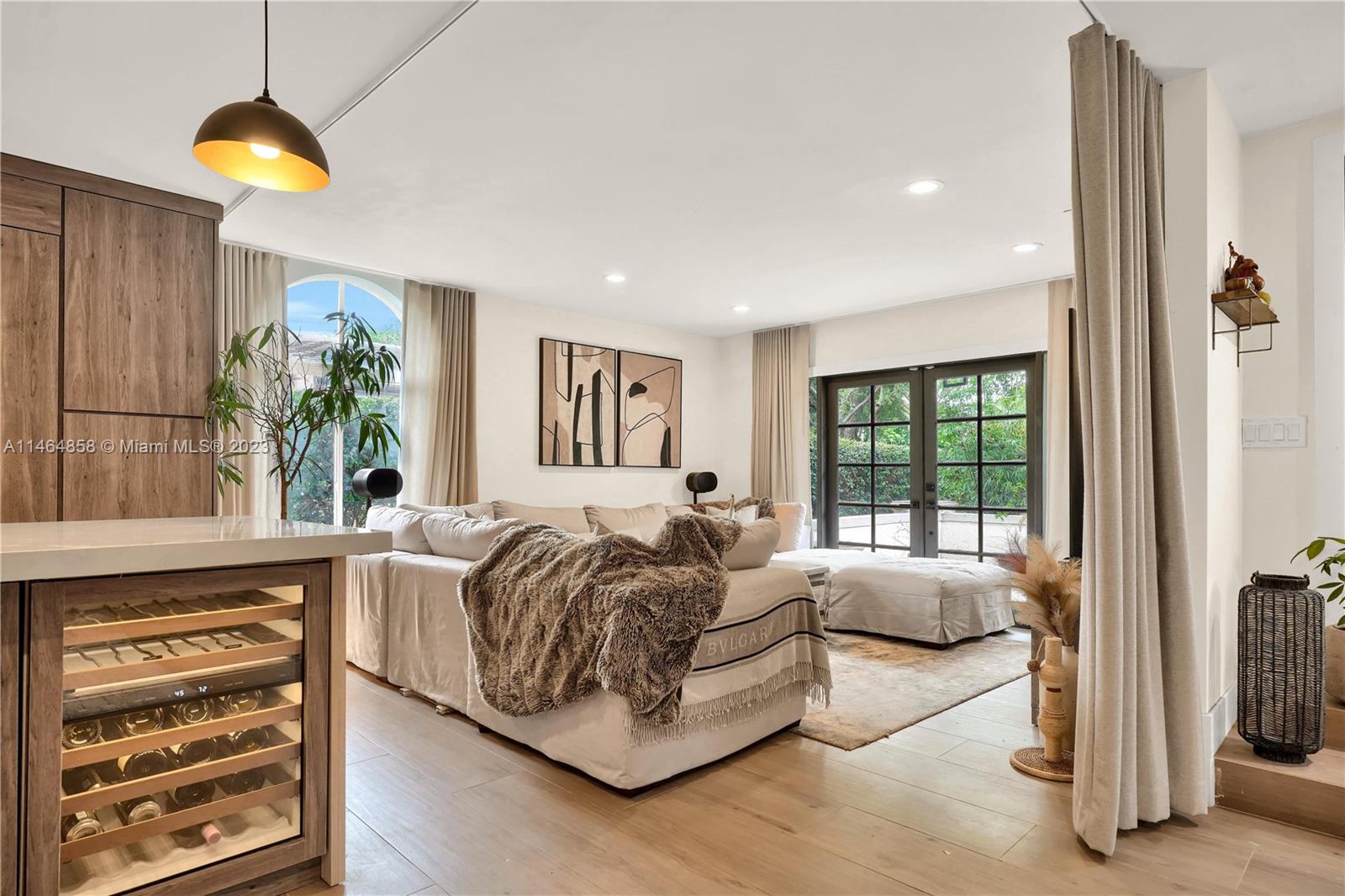 Exquisite Coral Gables Oasis, walking distance to The Plaza on Ponce de Leon and downtown Gables. This gem boasts a designer kitchen, Wolf/Subzero appliances including steam oven, wine cooler, oversized fridge/freezer, water filtration, glass-enclosed office, bathed in natural light, invites productive days. Unwind in the spa-like master bathroom, your personal retreat. So many luxuries...Kohler fixtures, 2 new A/C's, smart tech lighting, camera/surveillance/alarm system, new washer/dryer, Nest A/C control, textured straw wallpaper, wide plank ceramic floors, custom millwork, privacy curtain in family room, one car garage, room for a pool. Luxury and convenience converge in this charming sanctuary. Your dream home, waiting to embrace your every desire, awaits you in beautiful Coral Gables.
