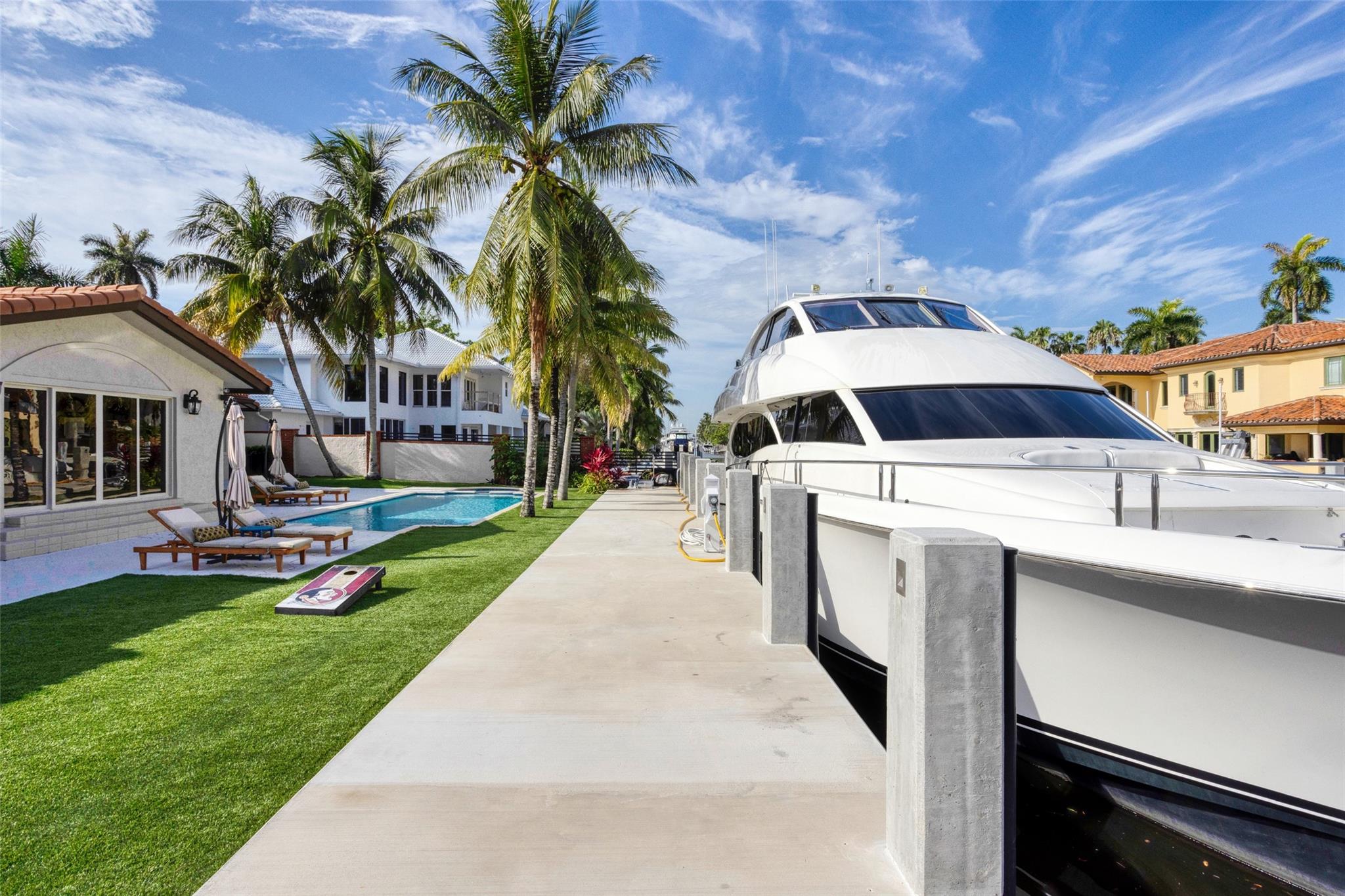 Gated and walled Coral Isles Spanish Colonial-inspired Deepwater estate sited on 100 +/- feet of waterfrontage in exclusive Las Olas Isles. Private canopy treed courtyard entry greets guest to an glass enclosed lanai. Formal Living/Dining Room and Club Room for entertaining. Gourmet kitchen with chefs appliances (Viking and Subzero) features a breakfast bar that opens to a large family room. Four bedrooms for family and friends. Resort-like pool with maintenance free turf and a new fully equipped concrete yacht dock minutes to Ocean access. Property sold in ''As Is'' condition.