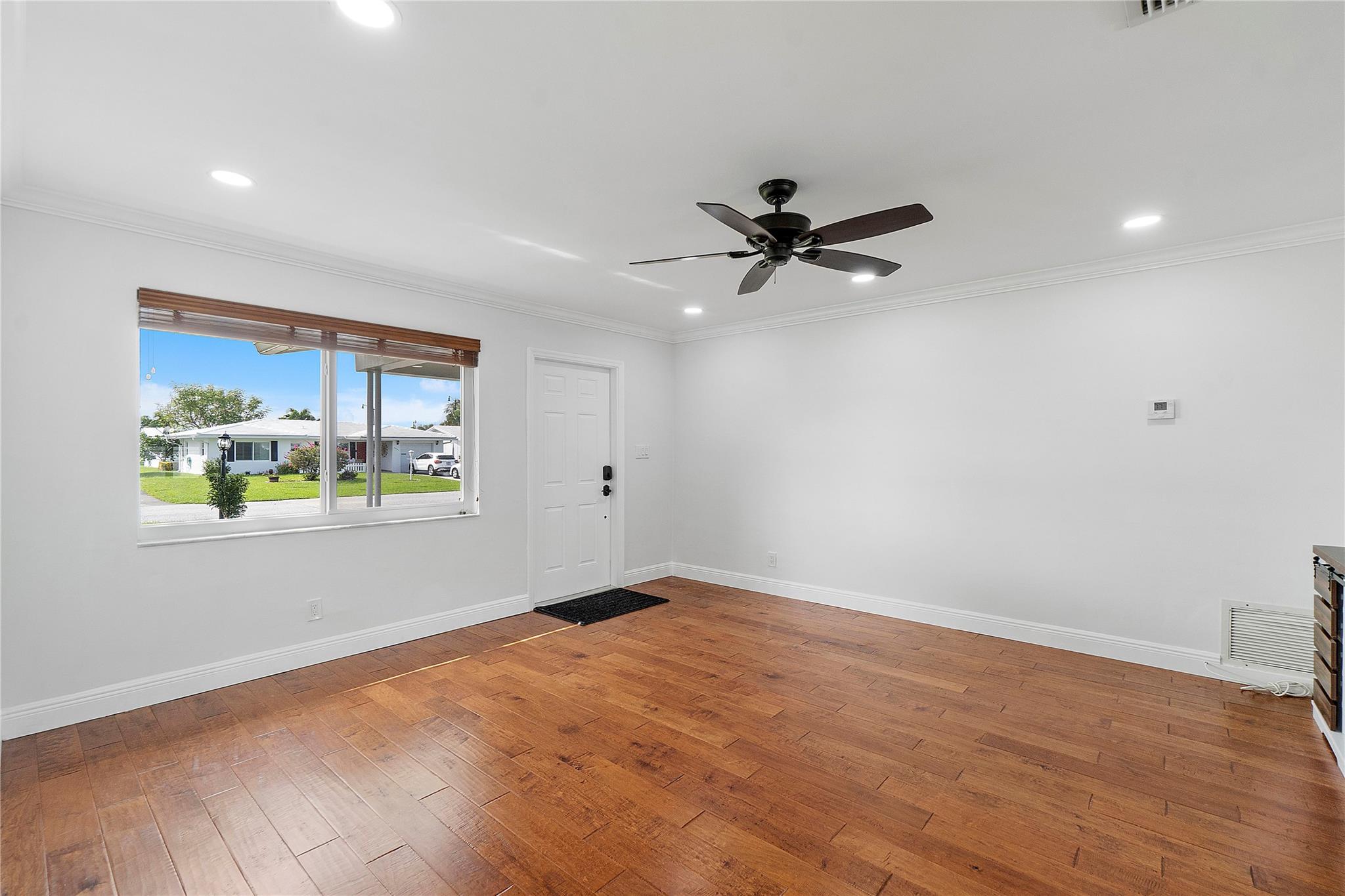 Beautifully renovated and move-in ready 2 bedroom and 2 bathroom single family home with one car garage and double width paved driveway, situated on corner lot in Leisureville. Open and bright floor plan features engineered hardwood floors throughout, including renovated fully bathrooms and kitchen with brand new SS appliances and brand new washer/dryer. Home is fully hurricane protected with impact windows and doors throughout, fully updated electrical, roof 2017, AC 2021. Florida room is perfect for enjoying outdoor living. Leisureville Pompano Beach, a Private Golf Community, offers 2 pools, 2 clubhouses, shuffleboard, billiards, game room, small library, scheduled shuttle bus, free par 3 9-hole golf to all residents, and more. Pet-friendly community. One owner must be 55+ years old.