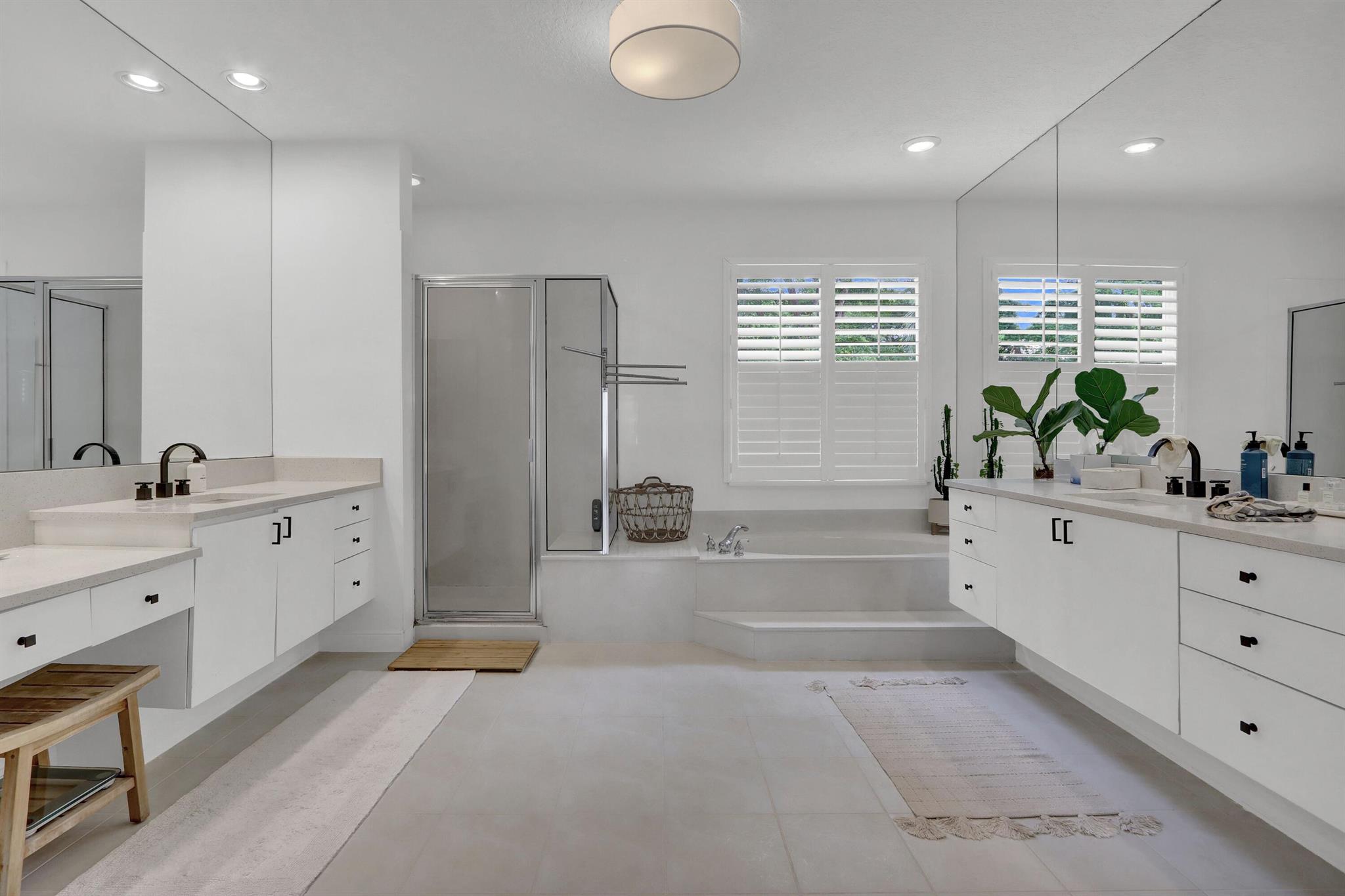 Light, bright & cheery, this immaculate 2-story pool home of 4 bedrooms plus a loft features volume ceilings with new light fixtures; neutral tile & engineered wood floors; plantation shutters; an open kitchen with white 42'' cabinetry, quartz counters & tile backsplash, stainless steel appliances & a new refrigerator.One bedroom & full bath are downstairs; Primary + 2 bedrooms are upstairs. The spacious Primary suite offers 2 custom-configured walk-in closets, & a bonus area perfect for an office, another closet or exercise area. The rear patio is screened in and offers an inviting free-form pool with stone edging, new pool pump & astroturf . A/C - 2020 - 2 zones; new water heater.