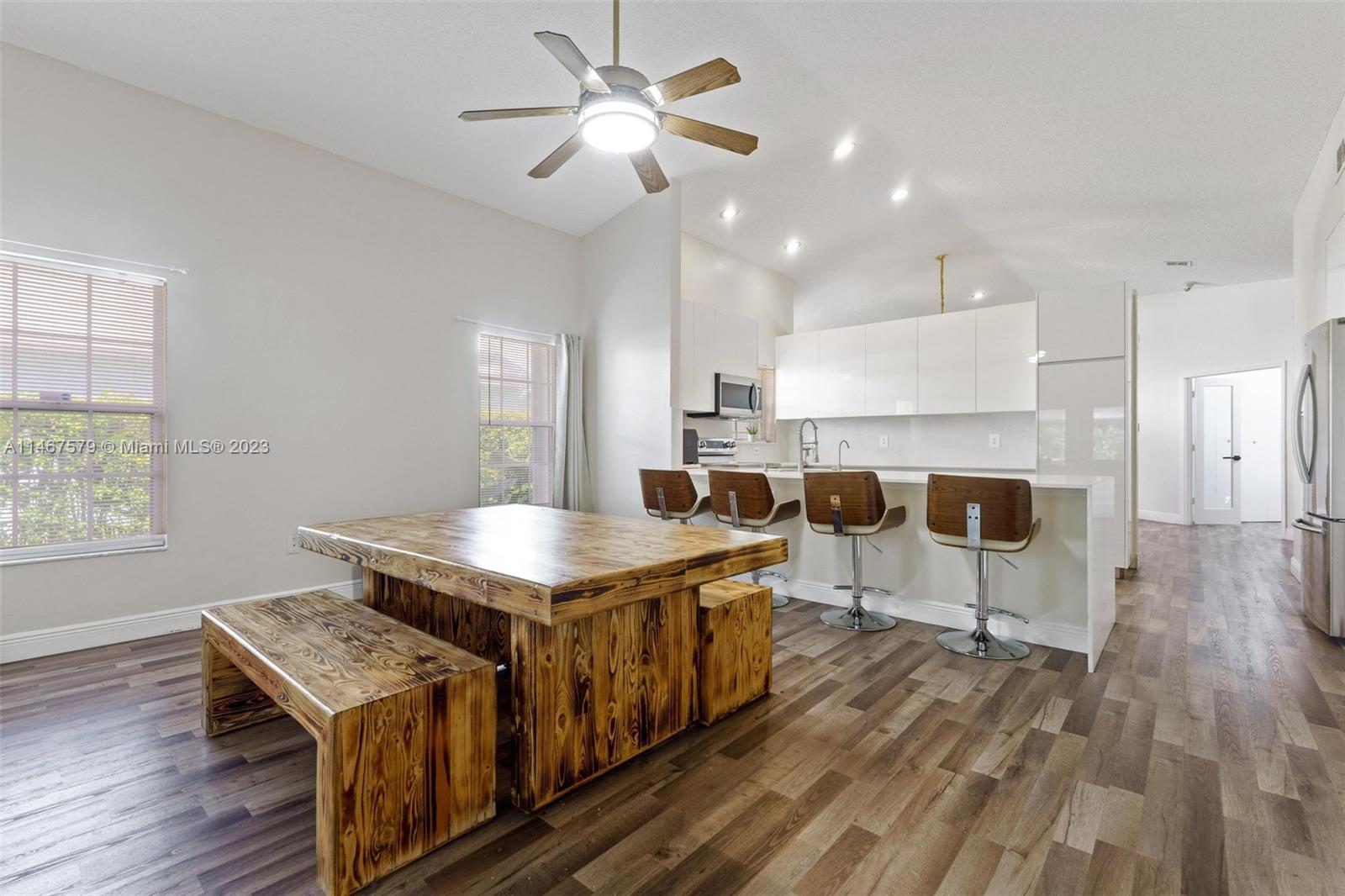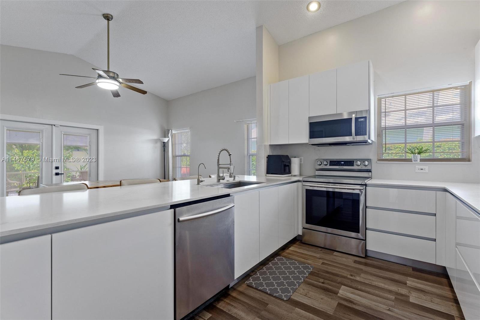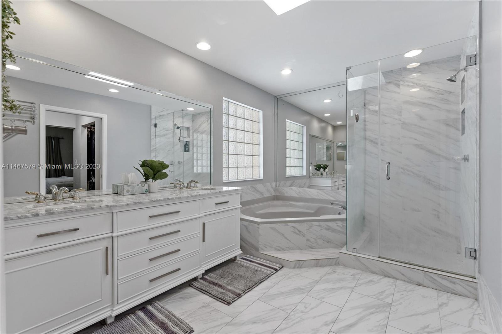 Exquisite Residence in Grand Palms Wilshire! This generously proportioned property boasts a sizable corner lot spanning 8,122 square feet, enveloped by a spacious, fenced yard shrouded in privacy hedges. Come and see this lovely 3/2 home with a 2 car garage. The landscaping underwent a stunning transformation in 2021, while a new roof was added in 2019. The kitchen received a top-tier upgrade in 2021 by Florida Kitchens, featuring 42" white laminated cabinets, an extra-long and wide white/gray quartz counter top with convenient pull-out drawers, double drawers, and robust double pull-outs in the corners. You'll also find a built-in spice rack and double trash container for added convenience. The bathrooms were remodeled, with the master bathroom receiving a complete upgrade in 2020.