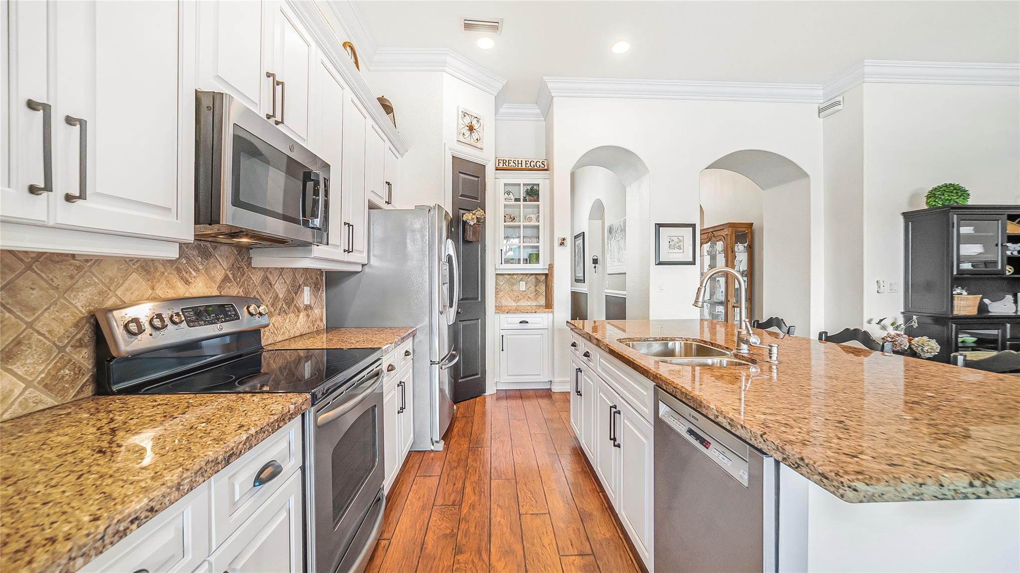 Live the Heron Bay Lifestyle Here in This Warm and Inviting 3 Beds 2 Baths Home w/ Endless Lake Views! Features Include a Fully Fenced Backyard w/ Plenty of Room For a Pool, Wood Flooring Throughout Main Living Areas, Freshly Painted Interior, Custom Draperies, Beautiful Kitchen w/ White Cabinets, Granite Countertops, and Tumbled Marble Backsplash, Shiplap Wall in Primary Bedroom, California Closet in Primary and One Bedroom, Jacuzzi Tub Plantation Shutters, Brand New GE Dryer, Crown Molding, High Ceilings, Tons of Natural Light, Community Includes Resort Style Amenities w/ Two Clubhouses, Fitness Center, Splash Park, Playground, Tennis, Basketball Courts and So Much More, Parkland's A Rated Schools, Make This Home Yours Today!!