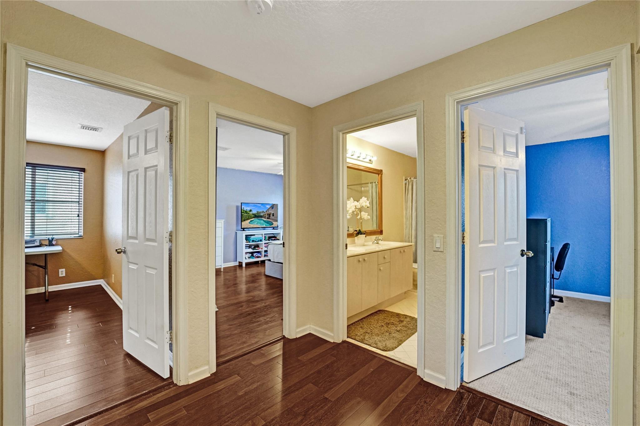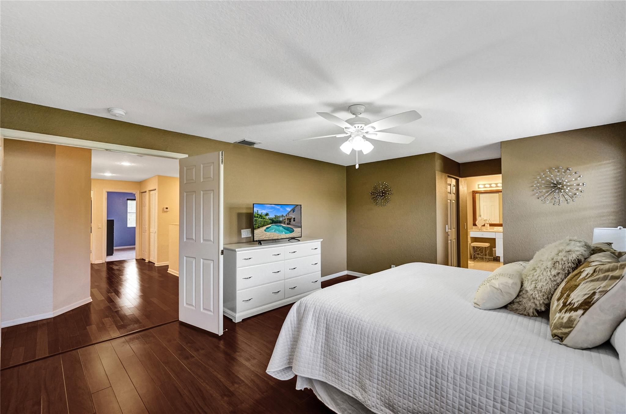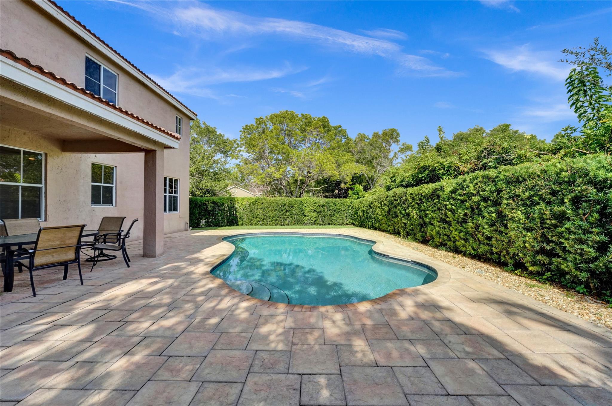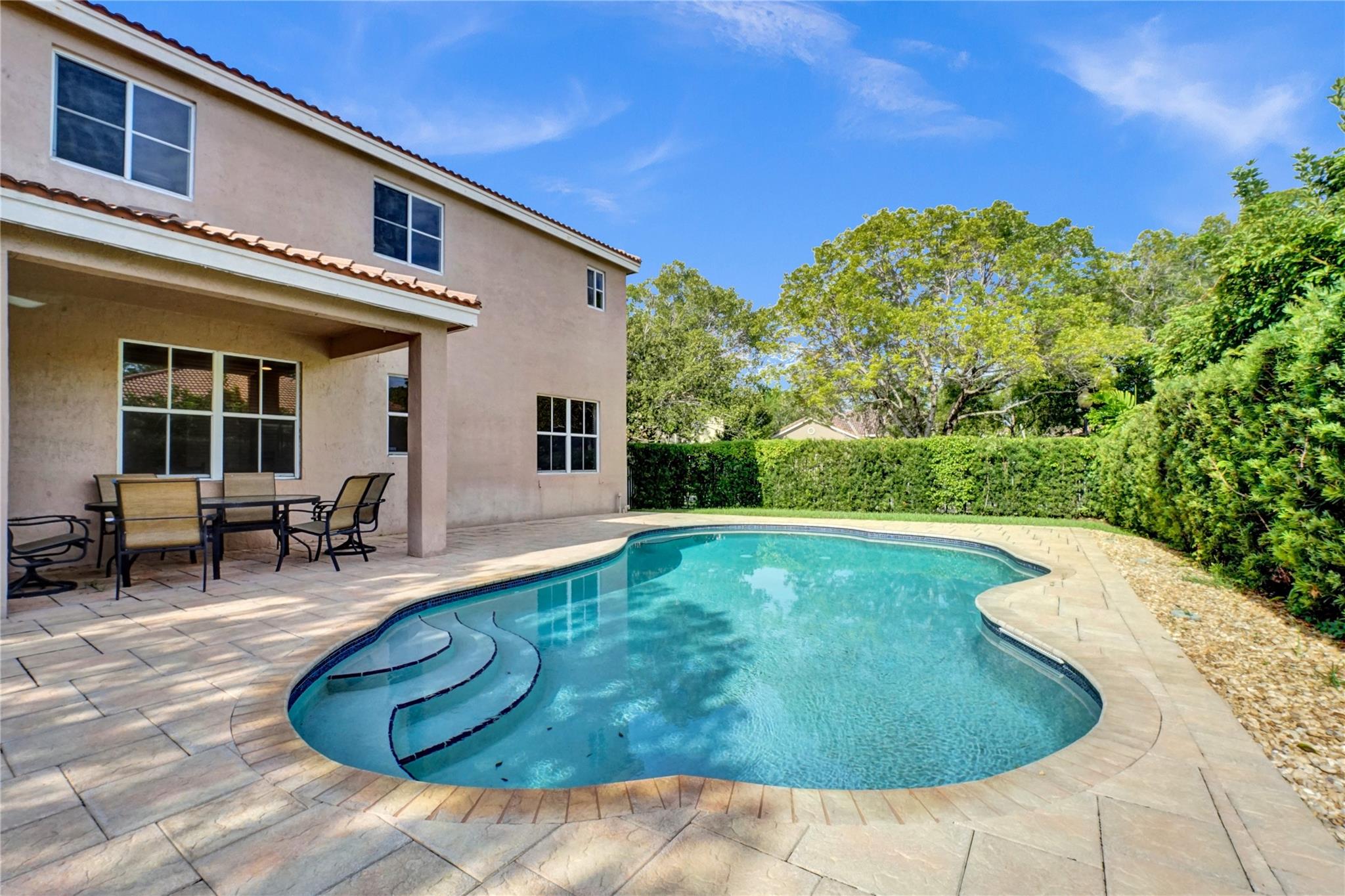 Incredible Lily model on a corner lot, boasting over 3K sqft of living area. This spacious home features 5 bedrooms, 4 full baths, and 2 bonus rooms, offering versatility and ample room for your needs. The upgraded kitchen with a center island is perfect for culinary enthusiasts. The formal dining room is adorned with elegant moldings, while the large family room with volume ceilings provides a comfortable gathering space. A bedroom and bathroom on the main floor offer convenience. Upstairs, a huge master suite with an oversized sitting area awaits, complemented by beautiful wood floors throughout. Step outside to an oversized covered paver patio, open pool, and private fenced yard. A perfect retreat for outdoor living.