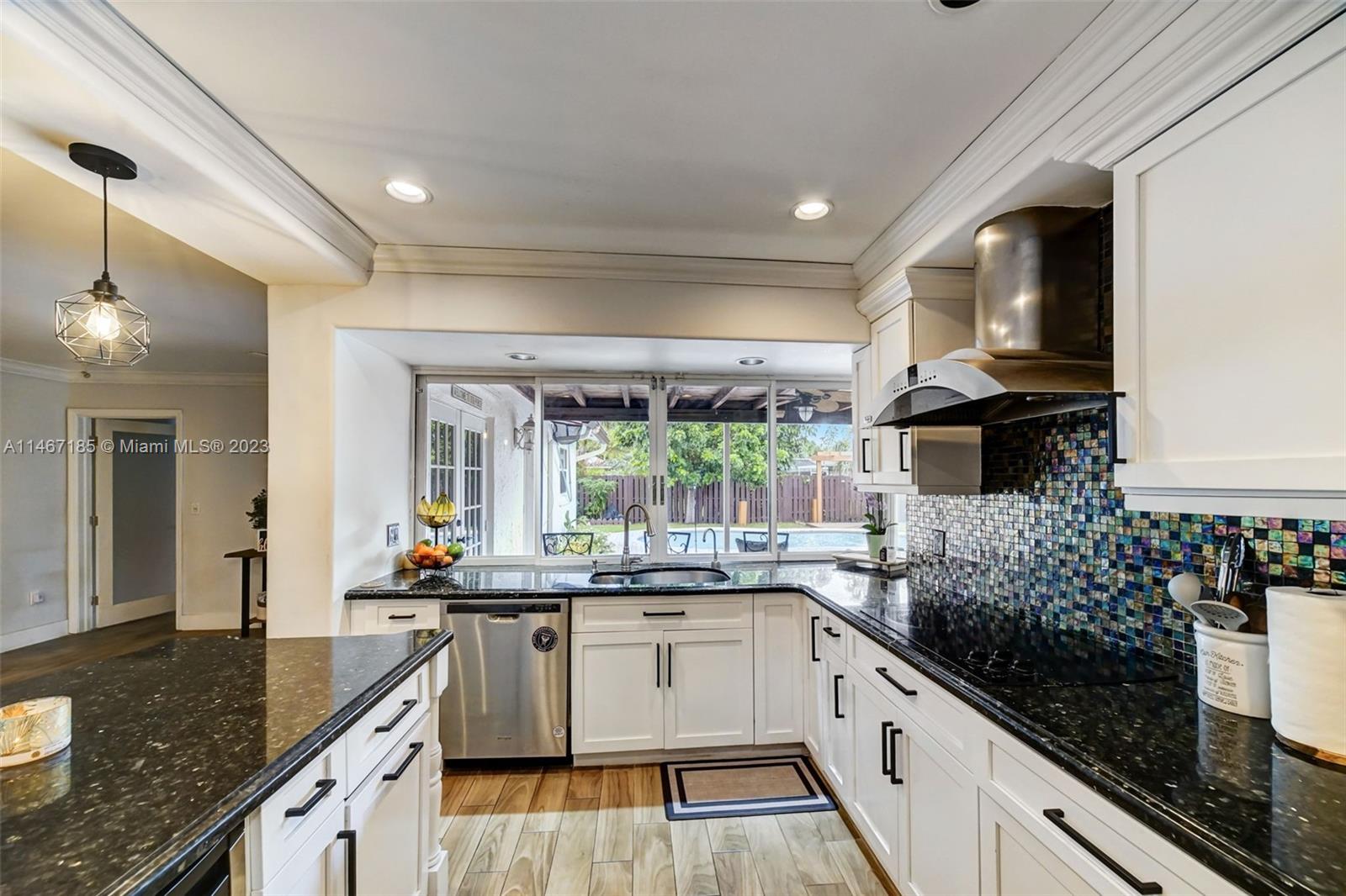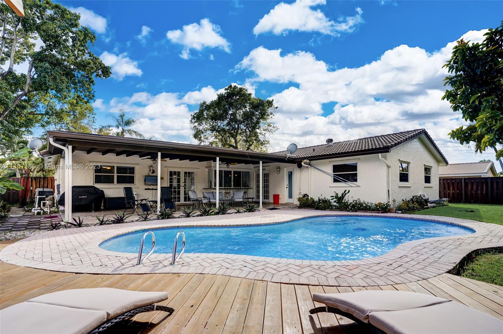 This exceptional property combines the best of outdoor living and modern interior design. Home features a saltwater pool, covered patio with a pass thru window to kitchen. Inside, the home has undergone a transformation. Chef's dream kitchen, adorned with pristine white cabinetry, exquisite backsplash, cooktop, wall oven, vented range hood and island for workspace or gathering. Both bathrooms have been tastefully updated to reflect current design trends. Luxury plank (LVP) flooring extends throughout the home, providing a cohesive and low-maintenance flooring solution. Spacious bedrooms are all generously sized, Backyard is fenced, circular driveway, air conditioner 3 yrs new. This property epitomizes modern luxury and convenience, making it a rare find in a desirable location.