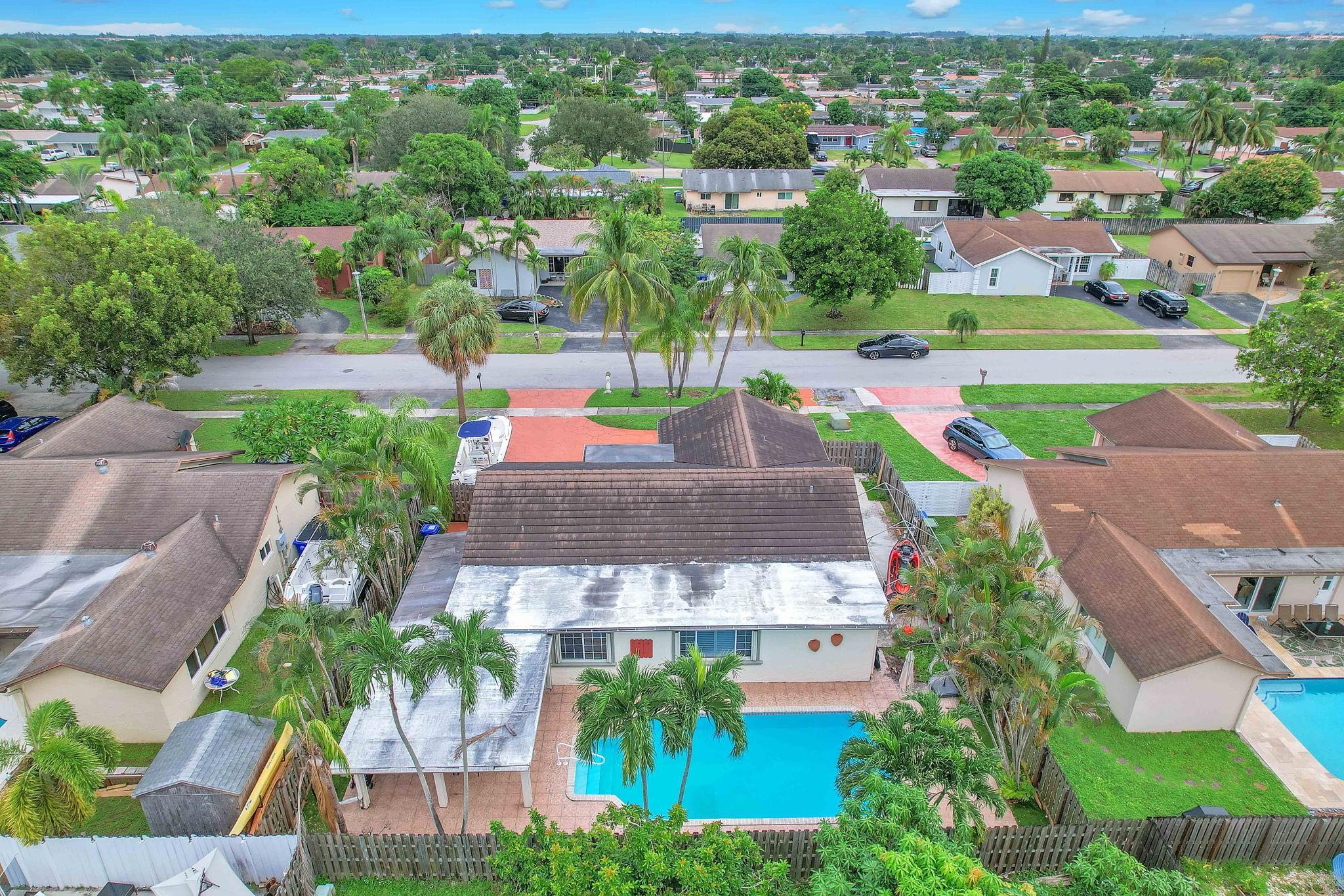 Updated 4 bed/2 bath+office pool home with circular driveway. This open & spacious home checks off all the boxes. Formal living and dining room w/ great family room makes space perfect for hosting gatherings & entertaining. Master bedroom w/ private bath that leads outside to the patio/pool area. Vinyl floor throughout. Outside enjoy the privacy of your fenced backyard while you relax by the pool under the shade of the covered porch. BBQ in your outdoor kitchen while your family enjoys the pool. Inside Laundry/utility room. *NO HOA* Accordion shutters. Updates include; Roof 2017, Air Con 2017, Pool resurfaced 2021 , New kitchen cabinets 2021, 2022 Impact front door. Perfect location for Airbnb/Vrbo rental income. Less than 5 Min to I-95 & 10min to Famous Hard Rock Hotel and Casino.