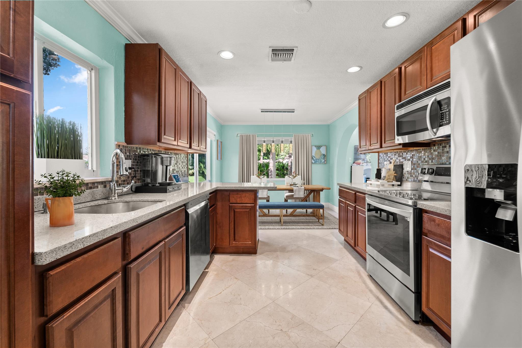 Welcome to your dream home in sought-after Country Club Estates, Plantation! This spacious 2 bed/2 bath gem features one of the neighborhood's largest backyards for a nature lover's delight. Enjoy a cozy wood-burning fireplace in an oversized sunroom. Imagine sipping morning coffee while surrounded by towering pines in your own backyard. The new roof with algaecide treatment brings peace of mind. Impact windows & doors enhance energy efficiency & curb appeal. Fresh paint inside & out radiates Florida lifestyle. The kitchen boasts stainless appliances and granite countertops. LED lighting & crown moldings add functionality & elegance. RV hookup & 60-amp EV charging in the garage with a Tesla adapter. Don't miss this sunlit retreat!