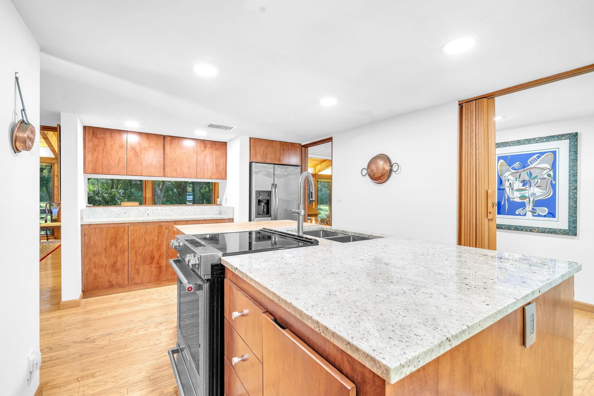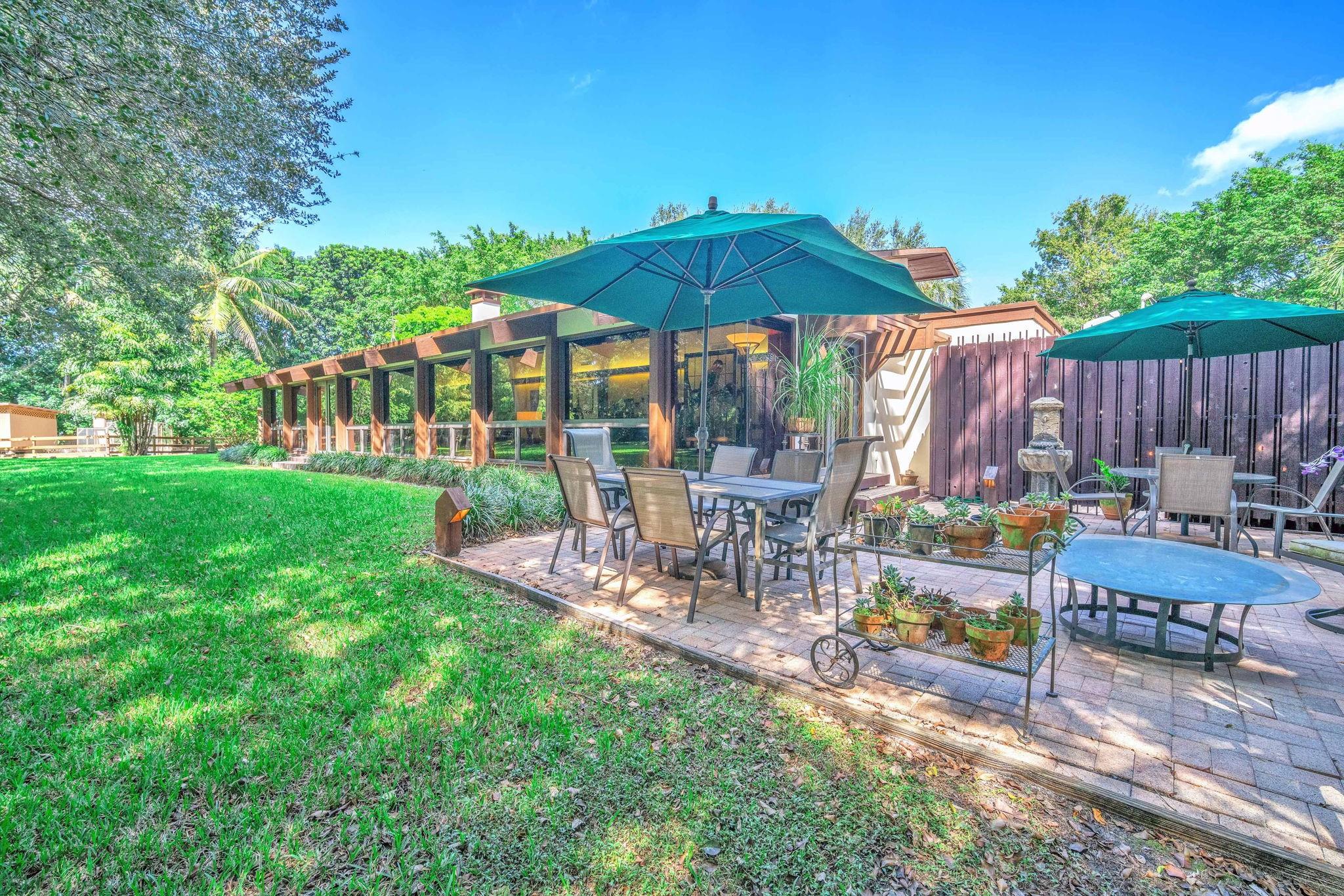 Welcome to this stunning three-bedroom, two-bathroom home situated in a quiet cul-de-sac. The Frank Lloyd Wright-inspired masterpiece in the heart of Plantation Acres offers a unique design and all-glass windows that provide breathtaking views of the outdoors. The kitchen features stainless steel appliances, ample counter space, and custom cabinetry. The bedrooms in this home are generously sized and the primary suite boasts an ensuite bathroom and ample closet space. As you step outside, you'll discover a backyard oasis that is perfect for entertaining with lush landscaping providing shade and privacy for a little farm, creating a serene and picturesque escape from the daily grind. With its convenient location, you'll have easy access to a variety of shopping, dining, and entertainment.