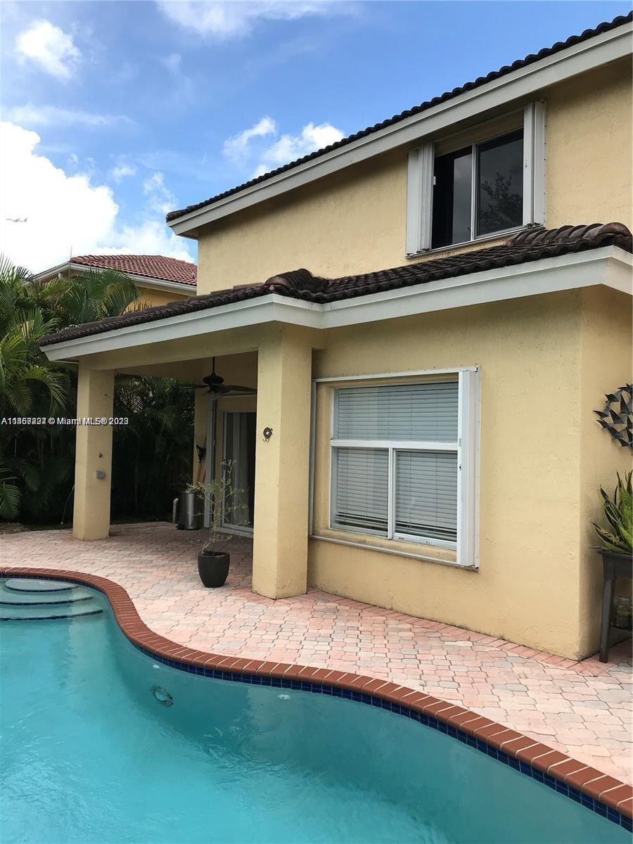 Spectacular single home in the heart of Doral, with the best neighborhood in Doral Meadows condominium . A 2 story house located in the corner, The house is well lit due to has fabulous high ceiling.. features 4 bed and 2.5 bath. .huge master bedroom and closet. Kitchen with granite counter top and steel appliances, first floor all with tile and second floor with laminated floor.. Enjoy the pool with pavers around the pool area & beautiful landscaping...Definitely one of a Kind.. Will not last this opportunity!!