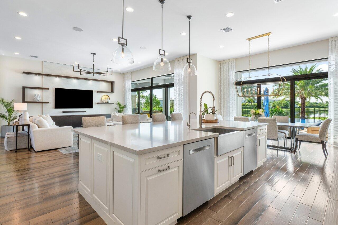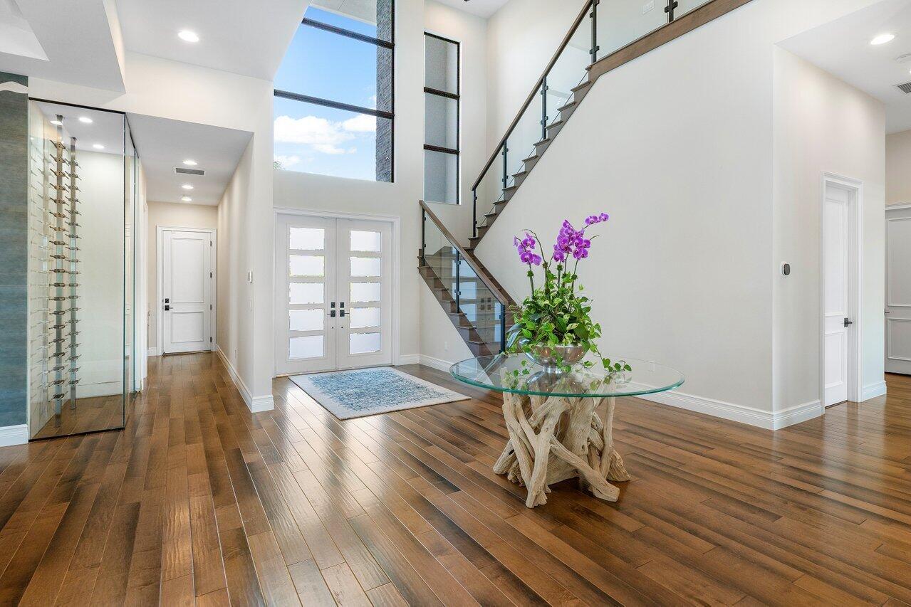 Presenting a modern lakefront estate with panoramic long lake views. Undoubtedly the BEST southern exposure lot in the prestigious Boca Bridges with endless unobstructed long lake views. Introduced by an Impressive approach, the architectural elements of this roughly 6,000 SF Contemporary Riverside are simply stunning. Open sightline's entice you as you take in the grandeur of the open concept dining and family rooms that adjoin the impressive kitchen. Exceeding the expectations of any gourmet chef with its impressive offerings of Wolf, SubZero and Bosch appliances. The tranquil transitions from room to room continue to showcase the one of a kind striking coffered ceiling details, extensive millwork, custom built-in's and the 80 bottle wine showcase.