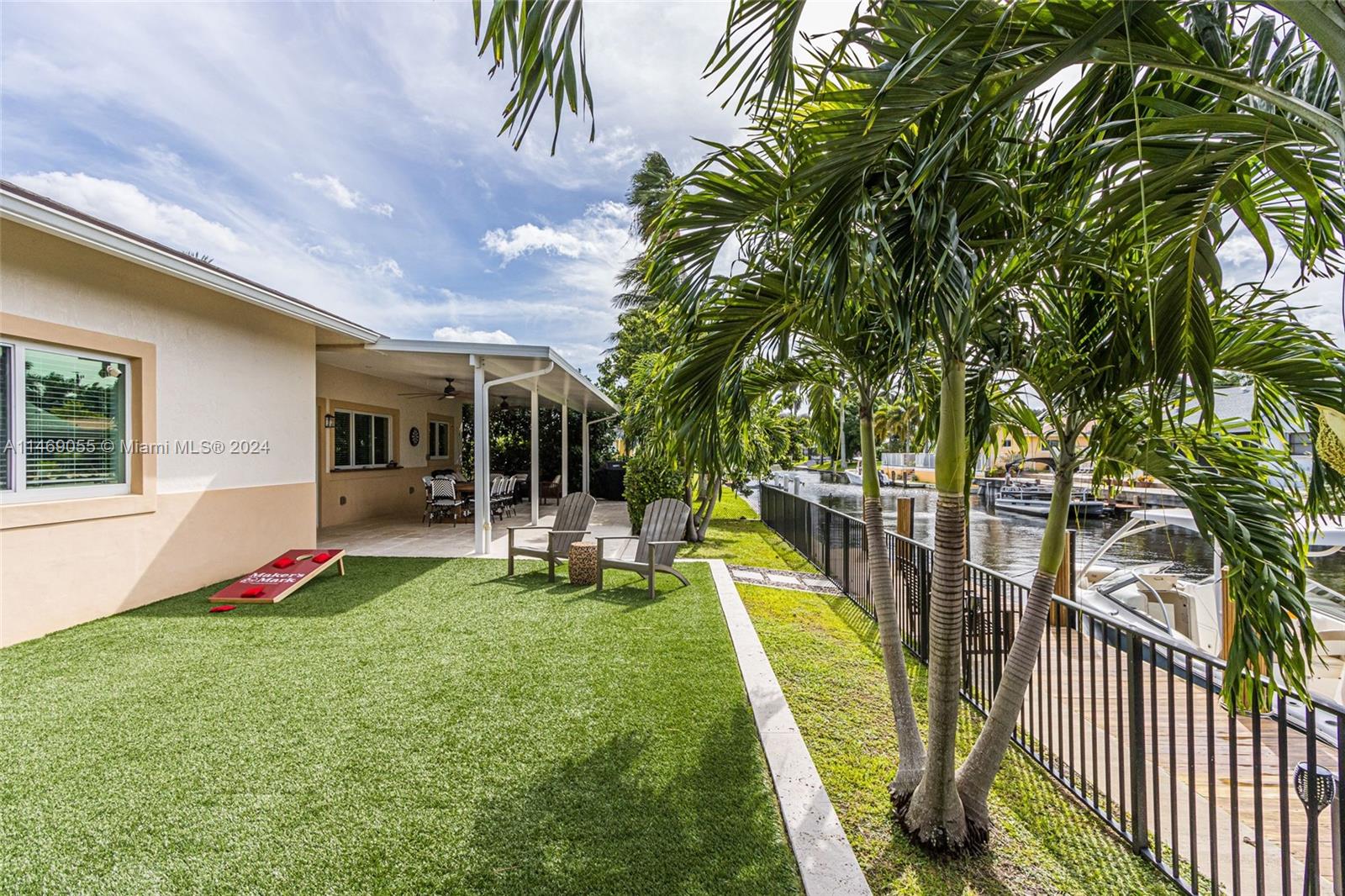 New Construction completed in 2018. Boaters dream with new 55 foot dock. 75 feet of waterfront. Direct ocean access No fixed bridges. Close to Hardrock Hotel and Casino for dining and entertainment. 4 bedroom 3 full bathrooms. Every room has 10 ft ceilings. Modern kitchen with island. His and Hers large walk in closets. All closets have custom built- ins. Guest bedroom features on-suite bathroom. New covered outdoor patio space with travertine as well as turf area for entertaining. Pool plans and renderings available upon request. Well kept landscaping and much more. Easy to show call today!