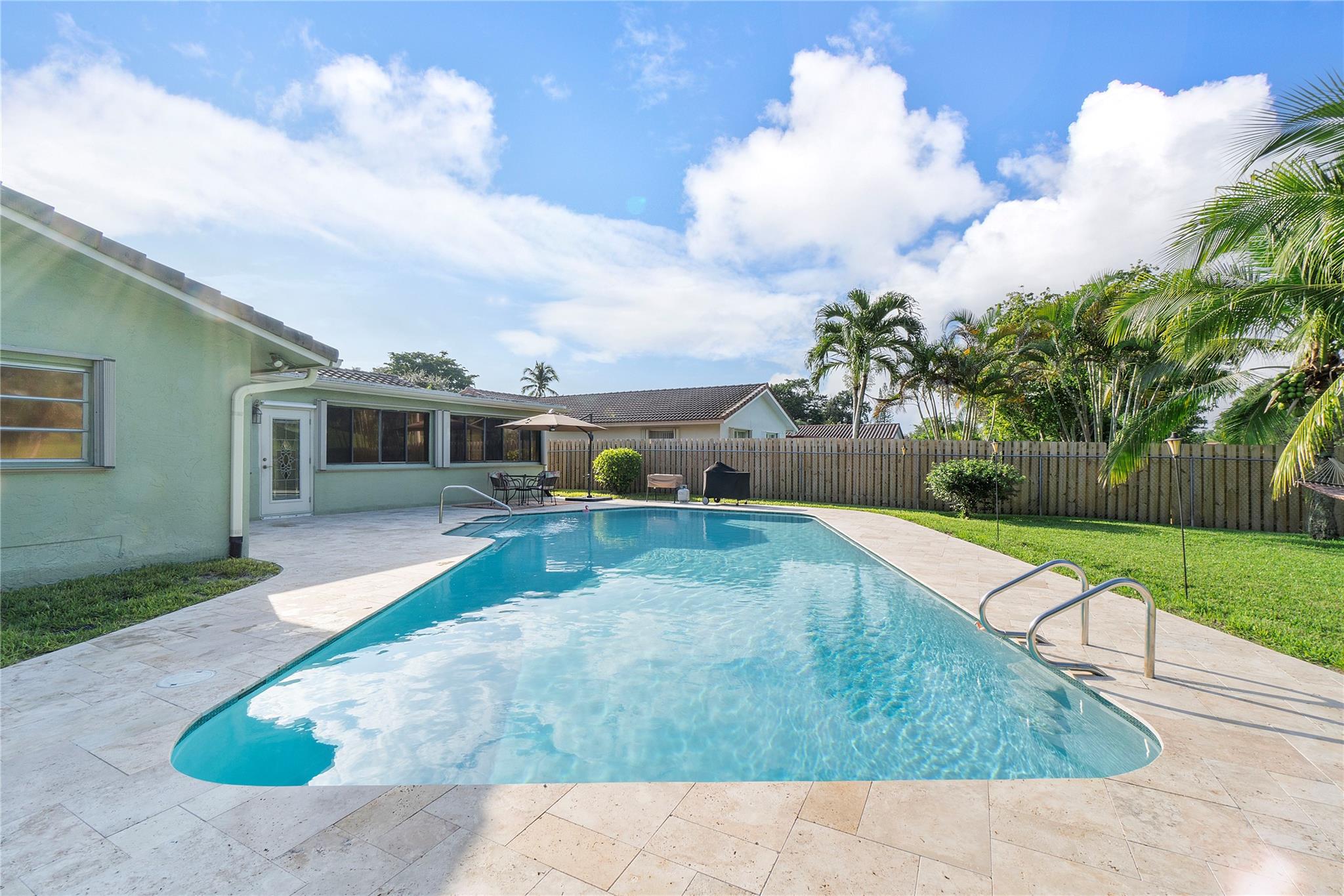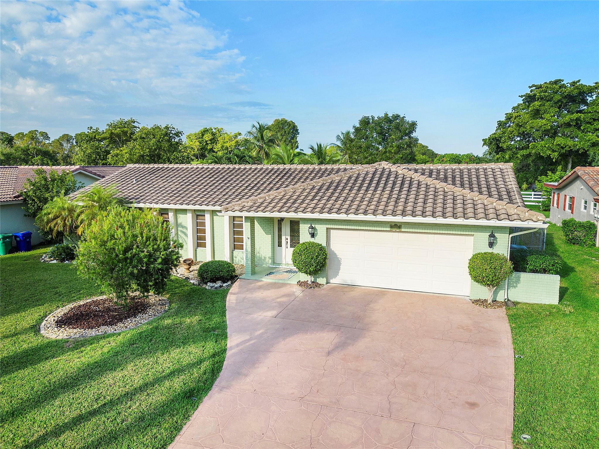 Beautiful, updated, 3 bed 2 bath pool home with gorgeous water view in highly desirable Coral Springs neighborhood w/ NO HOA. Kitchen completely remodeled (2022) features quartz countertops, soft close cabinets & drawers w/ pullouts, recessed lighting & stainless-steel appliances. Tile roof 2016. AC 2018. Hot water heater 2020. Washer & Dyer 2023. Gigantic pool w/ new surface & pavers (2023). The large fully fenced backyard overlooks the canal & park. Irrigation system. Huge Florida Room w/AC. Tile & laminate floors throughout. Primary bedroom has big walk-in closet. Guest bathroom is remodeled w/ vanity & tiled shower. Textured ceilings throughout (No Popcorn). Oversized garage with newer impact garage door. Accordion shutters & Panels. Large stamped concrete driveway. Great location!