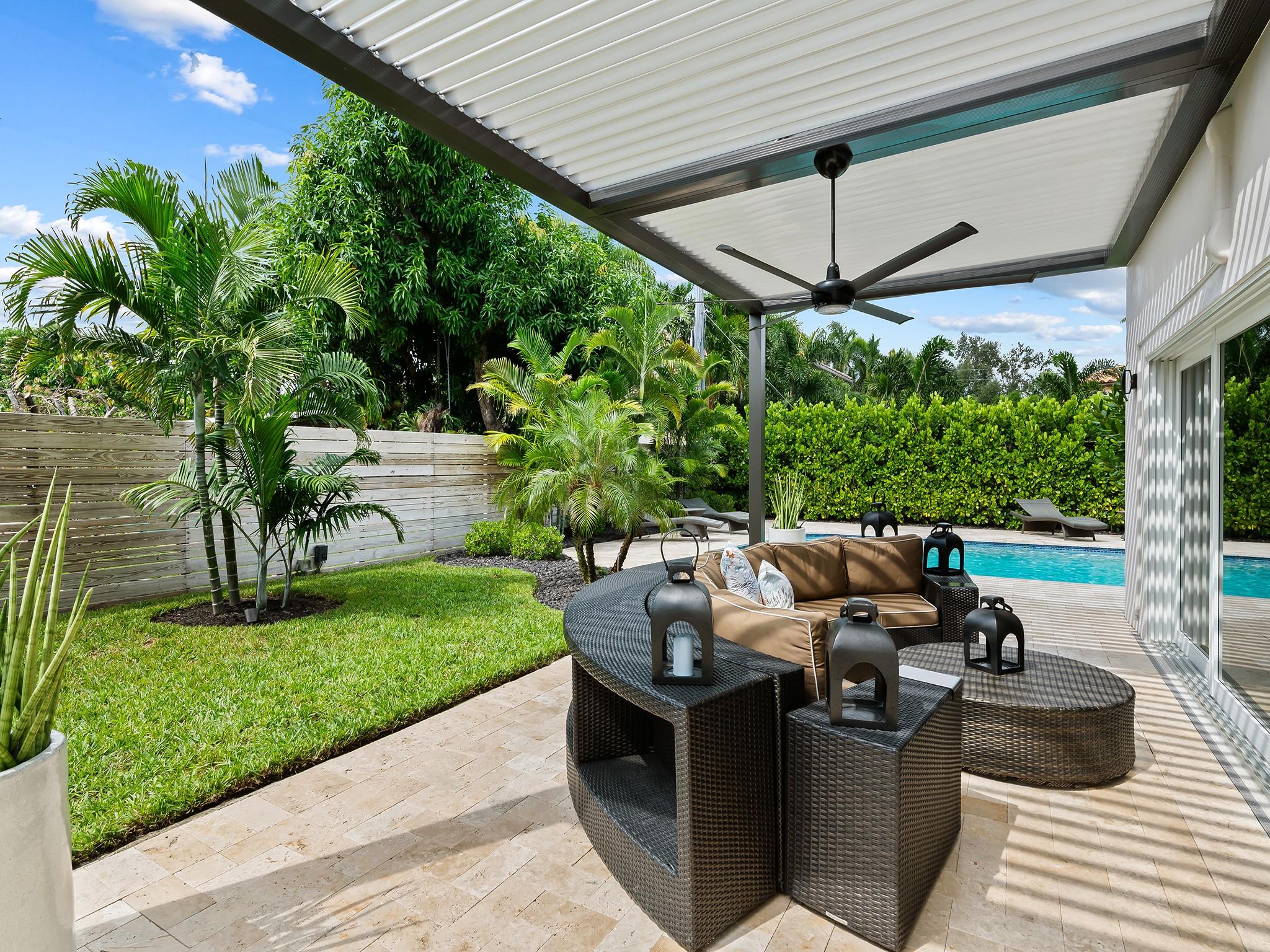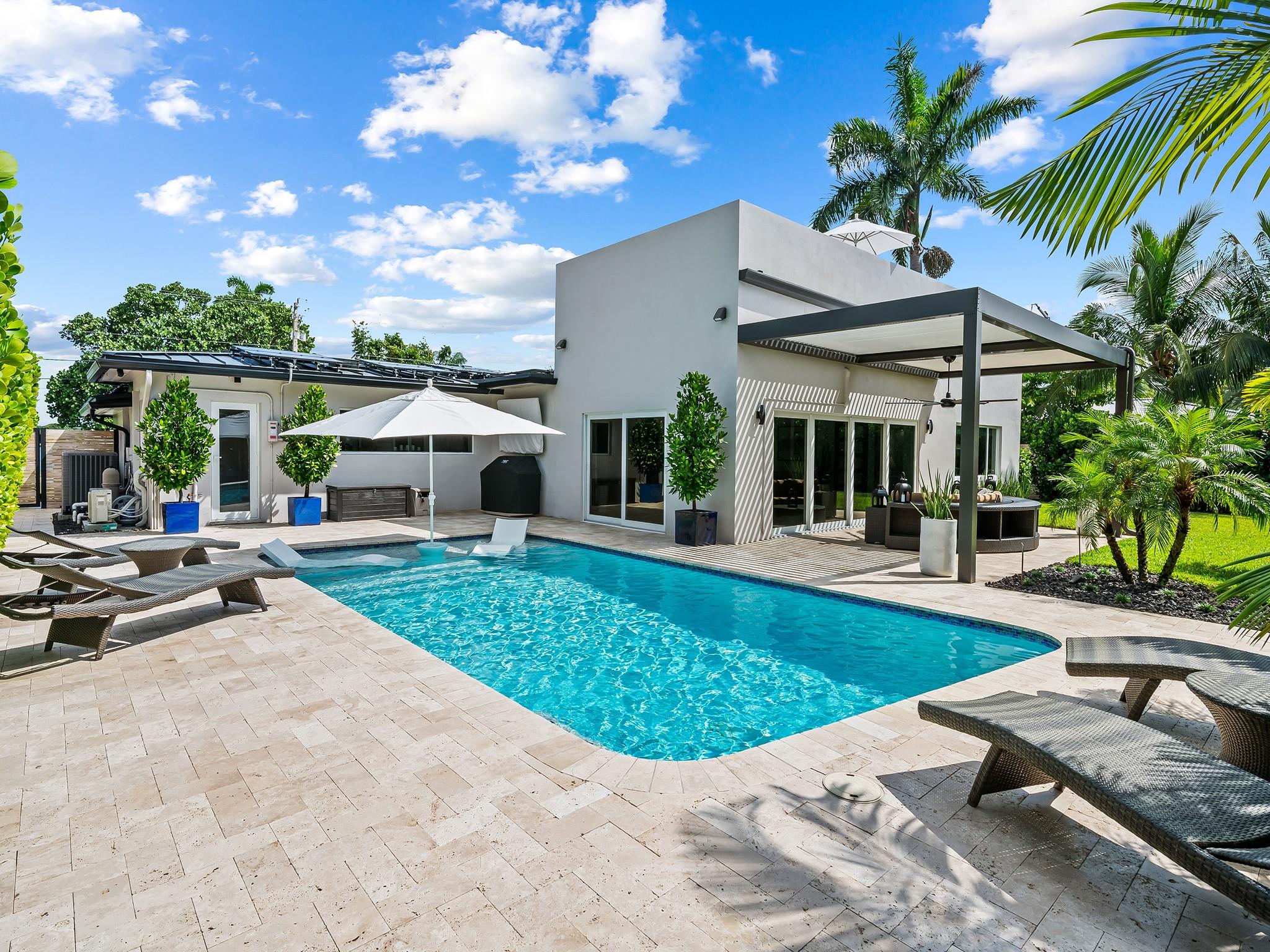 Exquisitely renovated residence lives like new construction w/modern details & luxurious appointments. Every element is designed to cultivate today's lifestyle w/an open concept flr plan, walls of glass providing an abundance of natural light & glass doors that stack to blend interior & exterior living spaces. Enjoy the S. Florida lifestyle under the covered loggia w/a louvered electric ceiling, swim in the salt water chlorinated heated & chilled pool, or experience waterway views from the finished roof top terrace. The kitchen is outfitted w/upgraded appliances & tremendous storage. The spacious primary suite offers 2 custom walk-in closets & lavish spa inspired bathrm. Additional features incl: a mosquito misting system, water filtration system, solar panels & more. Sq. Ft. from seller.