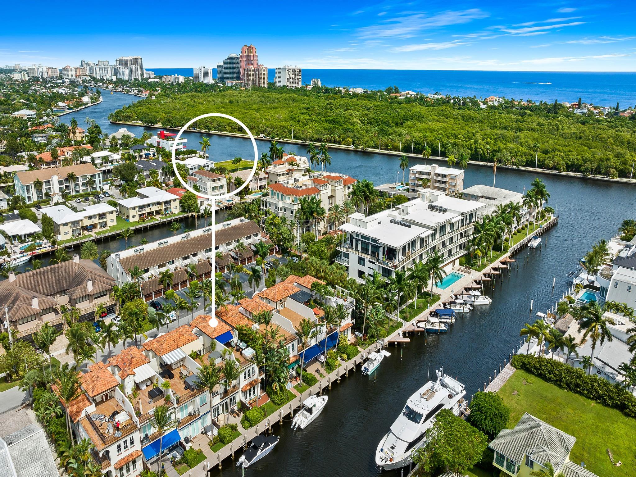 Deep Waterfront Townhome w/40' of waterfront in E. Ft. Lauderdale's subdivision of Coral Ridge. Direct access to the Intracoastal. Embrace S Florida living from the pvt. roof top terrace boasting an elevated spa, waterway & city skyline views, outside shower, living area & covered bar/summer kitchen w/ice-maker, fridge & dishwasher. The open flr plan w/volume ceilings offers intimate gatherings in the formal living & dining area or casual times in the open kitchen that overlooks the breakfast area & waterside family rm. The primary suite has a private balcony, 2 custom walk-in closets & lavish bathrm. Details: marble flooring, new wood floors in bedrooms, storage closets, walk-in closets in all bedrms, 2nd flr open loft/home office & laundry rm.