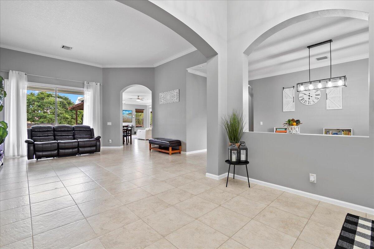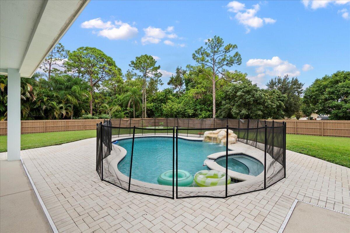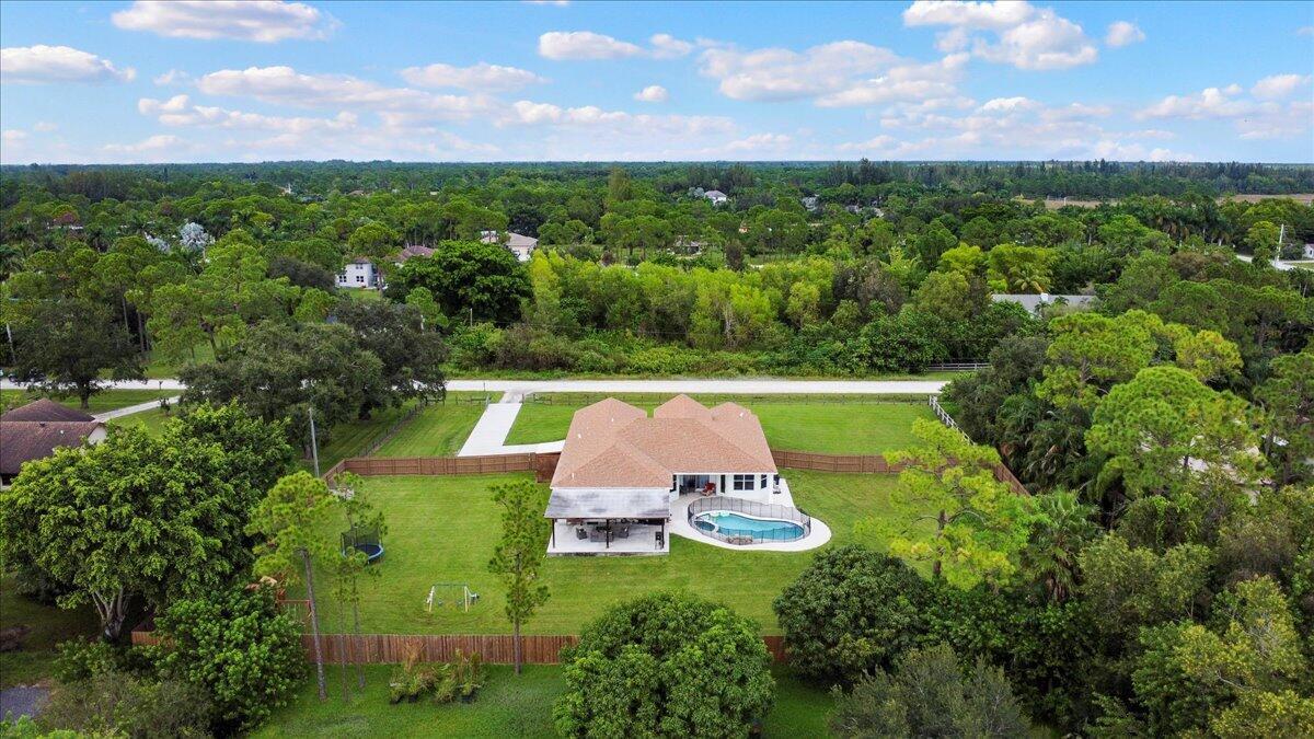 Look no further, you're Home!Beautiful 5 bed 3 full bath with oversize 2 car garage. Over 3000 ft. of living space meticulously cared for in the heart of the Acreage! The kitchen offers stainless steel appliances,granite counter tops,and wood cabinets.Newer hot water heater, 1,200 gallon septic tank recently serviced, new fence, n. 5th bedroom has a private full bath/exterior door perfect for in laws suit.Beautiful neutral ceramic tile throughout the main living areas. Newer aqua soft water system with fully covered an lighted enclosure. Full set of hurricane panels. 3 year old cement driveway. Newer AC unit in the main living area. Over 1 acre of fenced in land. Playground and trampoline included on the sale. Newer 20x20 oversize covered patio. Gorgeous saltwater pool and spa.