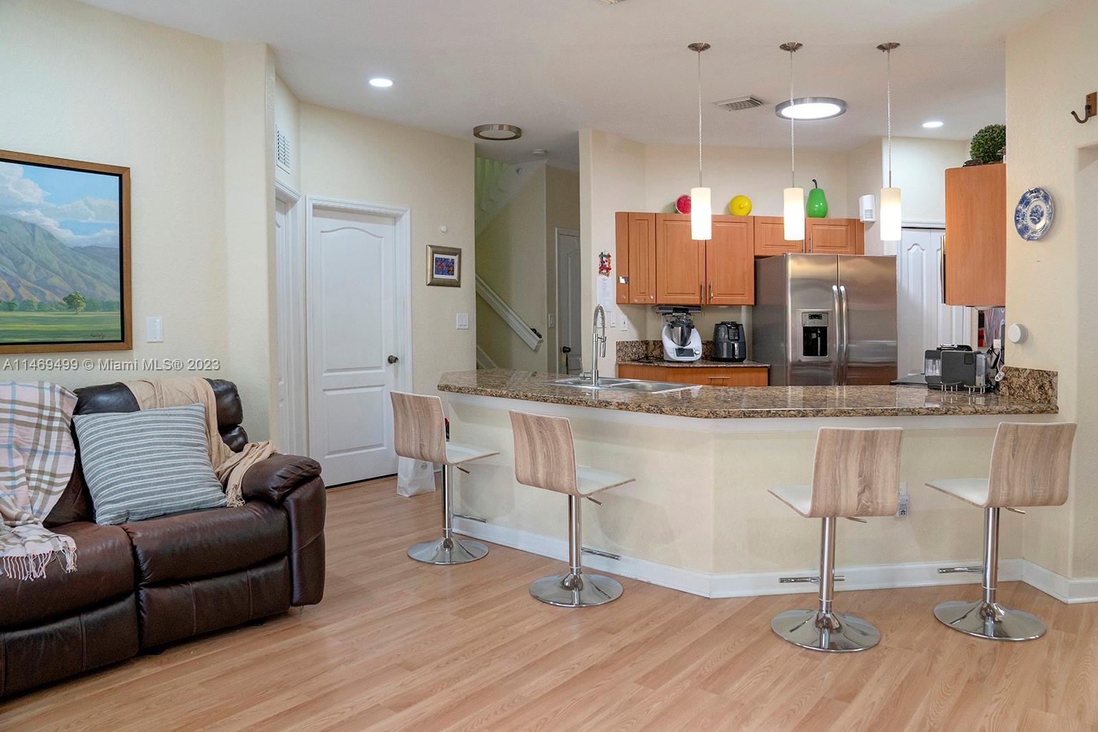 LOCATION, LOCATION, LOCATION Amazing Townhouse 4B-3B w/Private Fenced Patio in Islands of Doral w/1 full size bedroom & Full Bath downstairs.Open floor plan with wood floors, updated granite kitchen countertops.2nd floor: Primary Bedroom w/large ensuite bath, laundry room w/side by side washer/dryer,2nd and 3rd bed are Jack & Jill Bath w/dual sinks, tub & shower.First floor also has upgraded LED lighting throughout.Blackout shades, Master Spa 7 seat whirlpool,Plantation Shutters window, California Closets customized.Accordion Shutters throughout. AC 2022, Water heater. FHA/VA/Conv buyers welcome. Community has 3 pools tennis, fitness center, basketball, kids park.Close to Miami Airport, Dolphin shopping Mall, Hospitals. Turnpike/Palmetto/826/Dolphin Expwy. A+schools.Easy to show, call now.