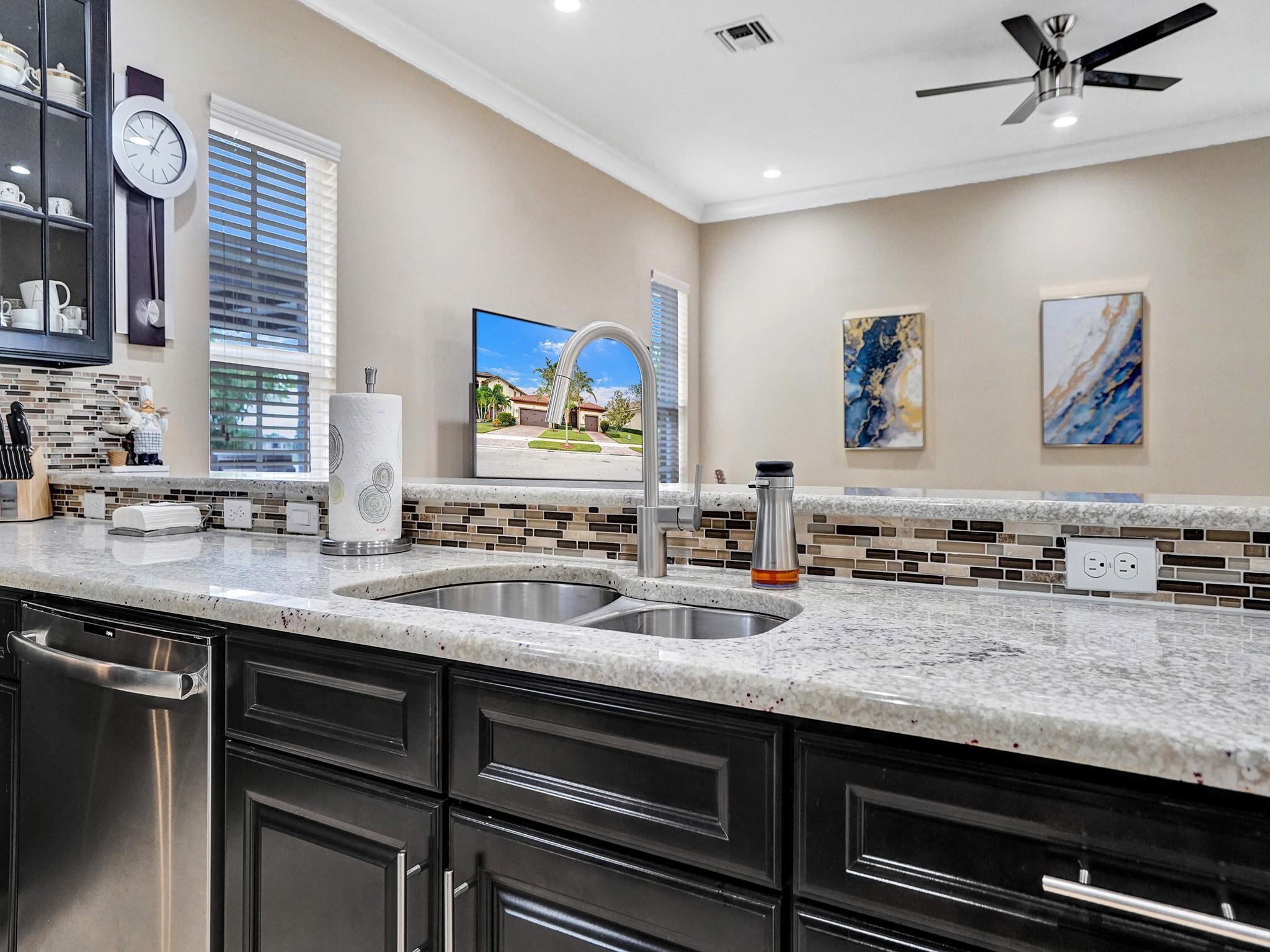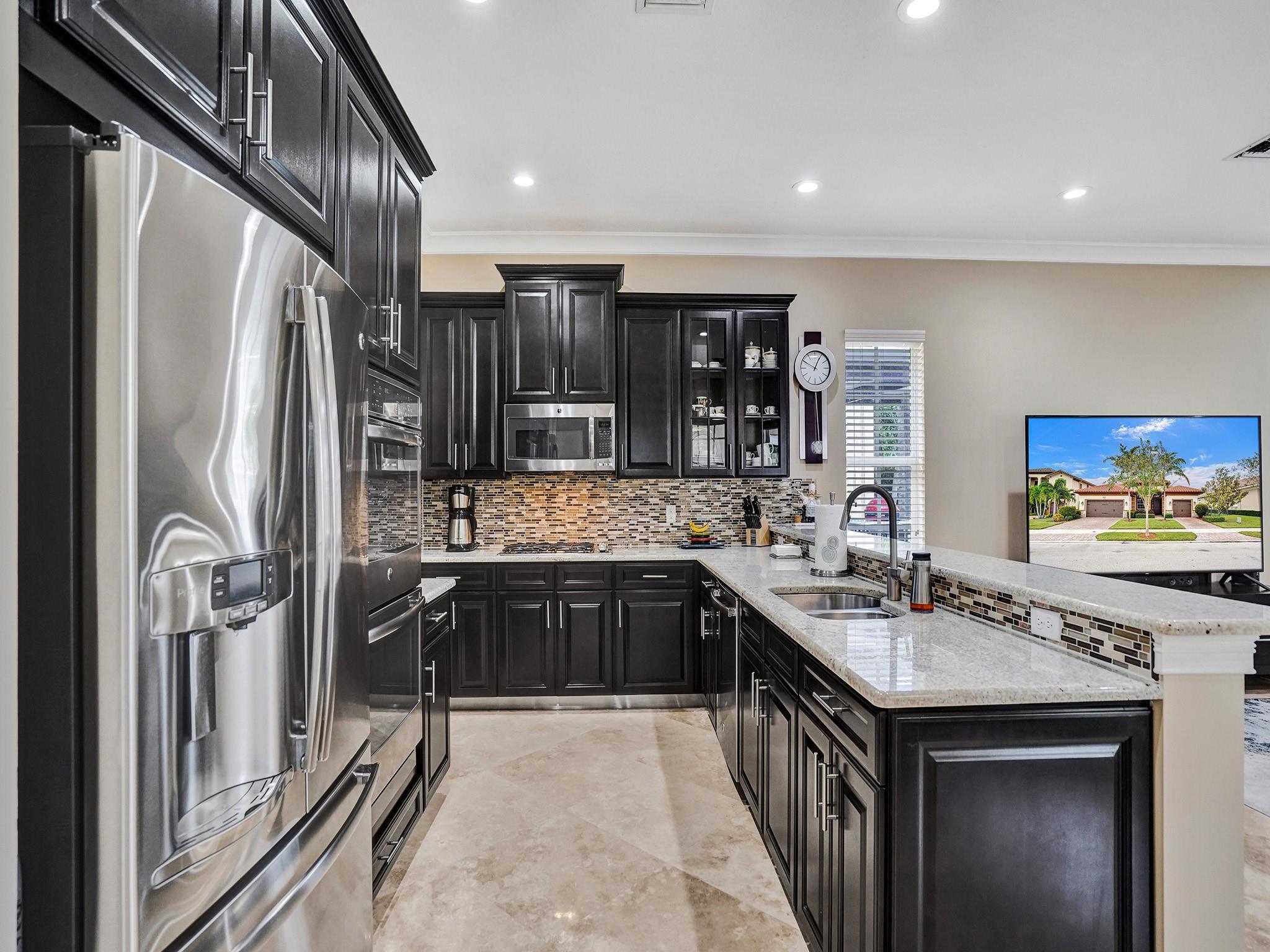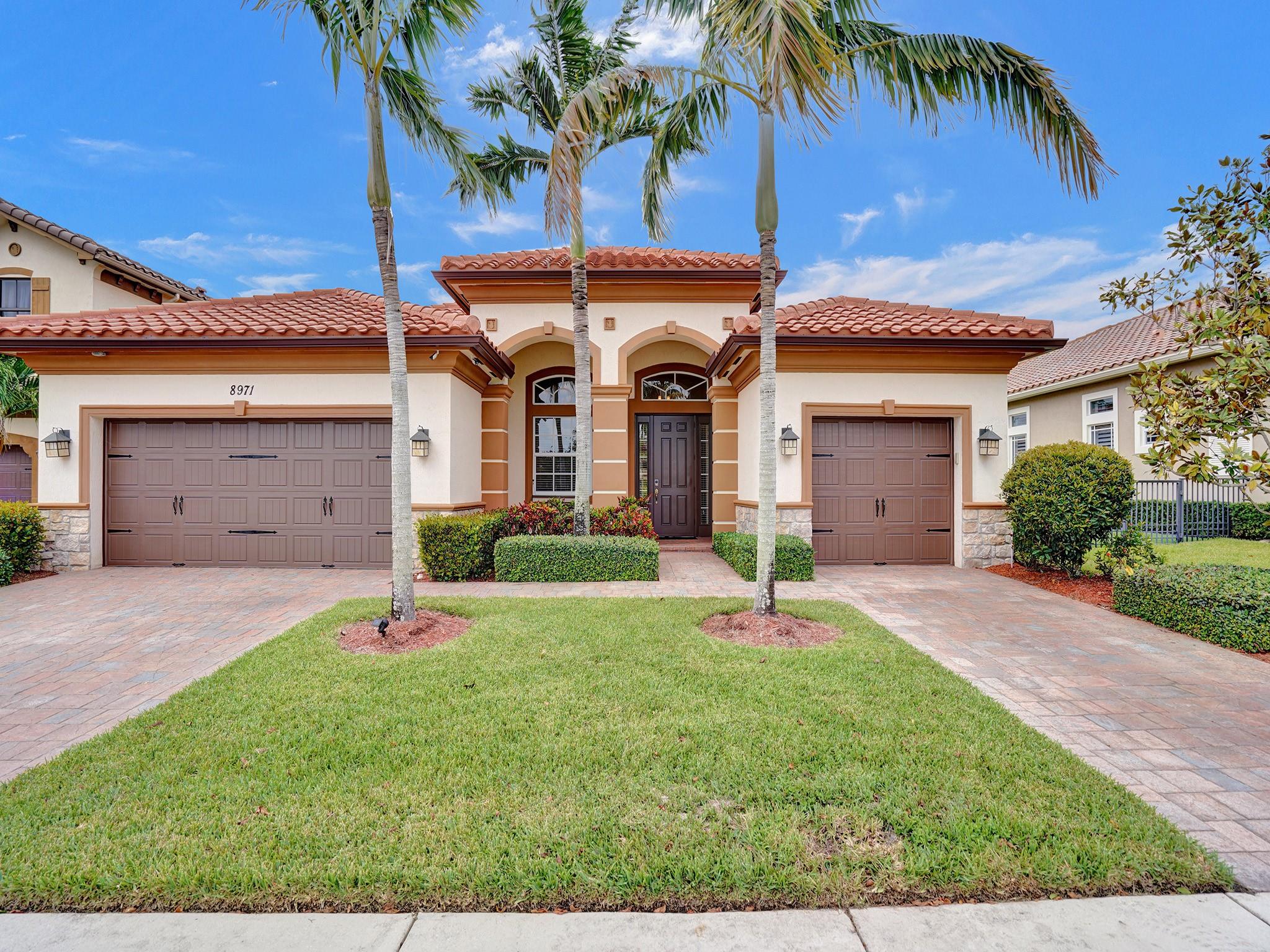 MIRALAGO ESTATES BEST PRICED 4 BED 3 BATH NEWER HOME! Pride of ownership - the owners have kept this home in A+ meticulous condition. Tons of upgrades: oversized marble floors, porcelain tile (mud set - no grout lines), crown molding, upgraded kitchen cabinets, wood trim panels, white granite counters, stainless appliances, double oven, gas stove, extended patio, oversized wide lot w/ fence, LED lighting, frameless glass shower w/ jacuzzi tub in bath, impact glass windows & doors & three car garage. The split bedroom floor plan offers plenty of space between bedrooms, making it an ideal home for a family. The community amenities are truly amazing: two newer clubhouses, large resort pools, professional gym, tennis courts, kids playroom, playground, party rooms, & indoor basketball courts.