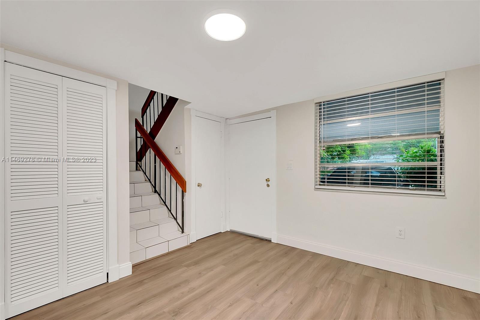 Fantastic, remodeled, two story, 2 bdrm/ 2.5 bath townhome in North Miami. New roof! Great floorplan. Formal living/dining room. Remodeled kitchen with stainless steel appliances, new countertops, and white cabinetry. Adjacent family room with sliding doors out to the backyard. Half bath located on the first floor. 2 en-suite bedrooms are located upstairs each with their own balcony, walk in closets and updated bathrooms. Conveniently located, separate laundry room. Laminate flooring, sliding shades for windows. Beautiful, tropical fenced backyard. 2 car carport and double driveway.