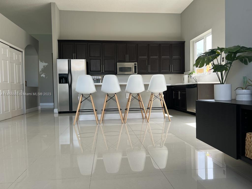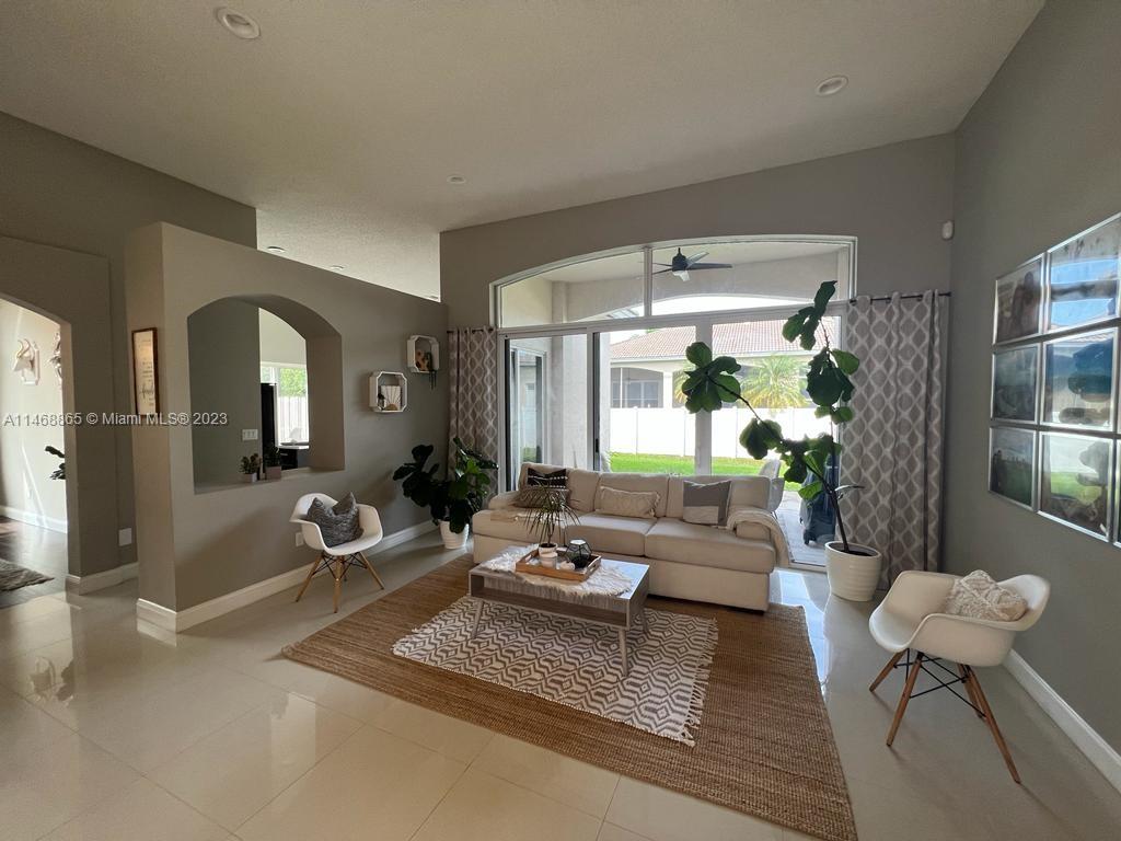 Modern Turn Key Estate 4BD, 3BTH, 2GAR, in sought after gated community of Estancia. Over $150,000 in upgrades. High vaulted ceilings, spacious open floor plan w/ large tiles throughout. New Roof 2023! New Impact Windows, Doors & Garage Door. New A/C unit. New electrical garage outlet NEMA 14-50 for electric car. Open kitchen, w/ large pantry, large center island, kitchen seating, & formal dinning area. Master bedroom is a sanctuary w/ custom chandelier, modern bathroom w/ soaking tub & tower shower, separate toilet room, two sinks, his & hers large walk - in closets. Lanai to enjoy morning coffee, nice yard for grilling. Resort style amenities, cascading Olympic pool, brand new gym, basketball court. Close to I-75, US 27, West Pines Park, Preserves, A Schools & Memorial Miramar Hospital.