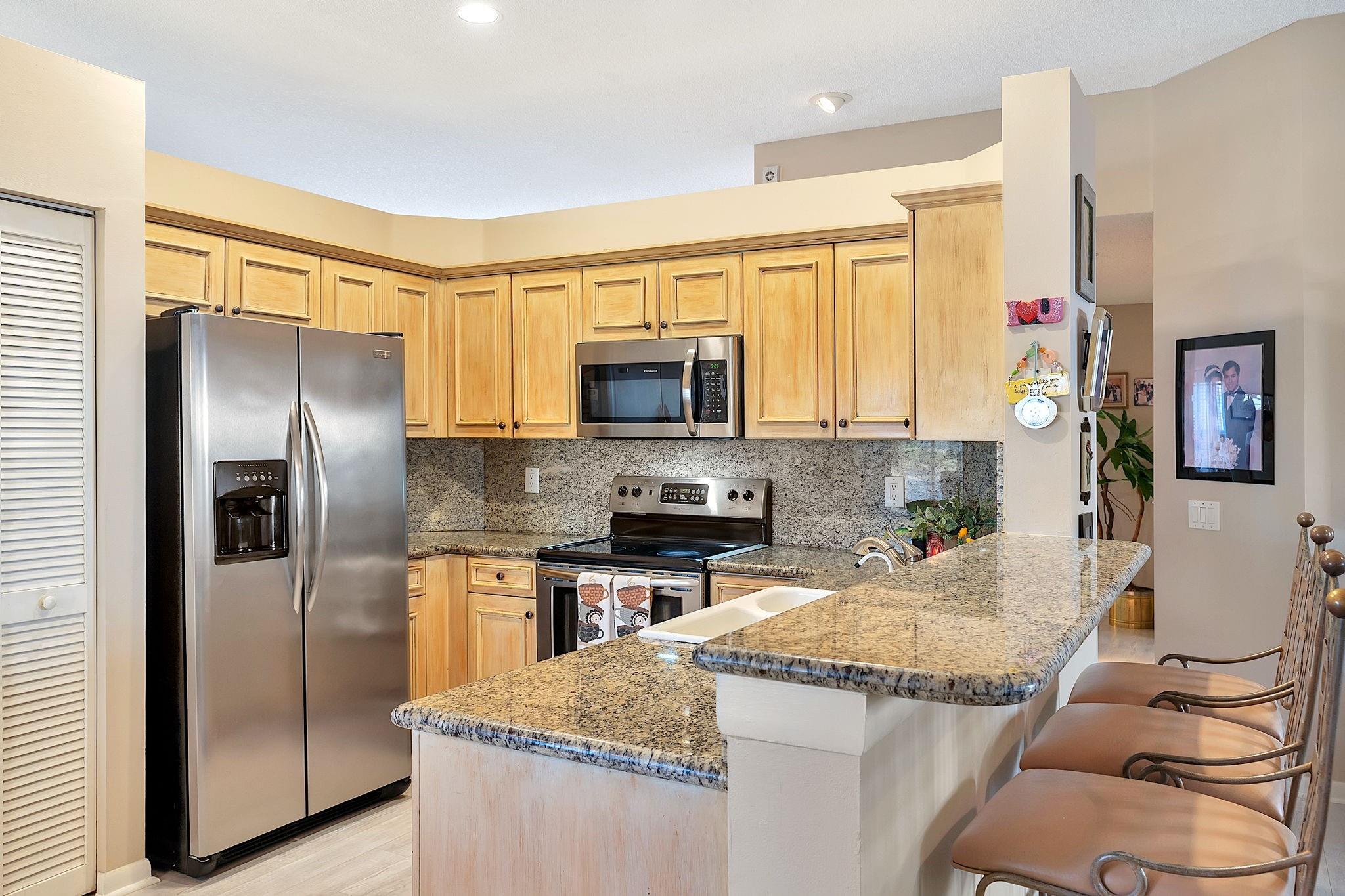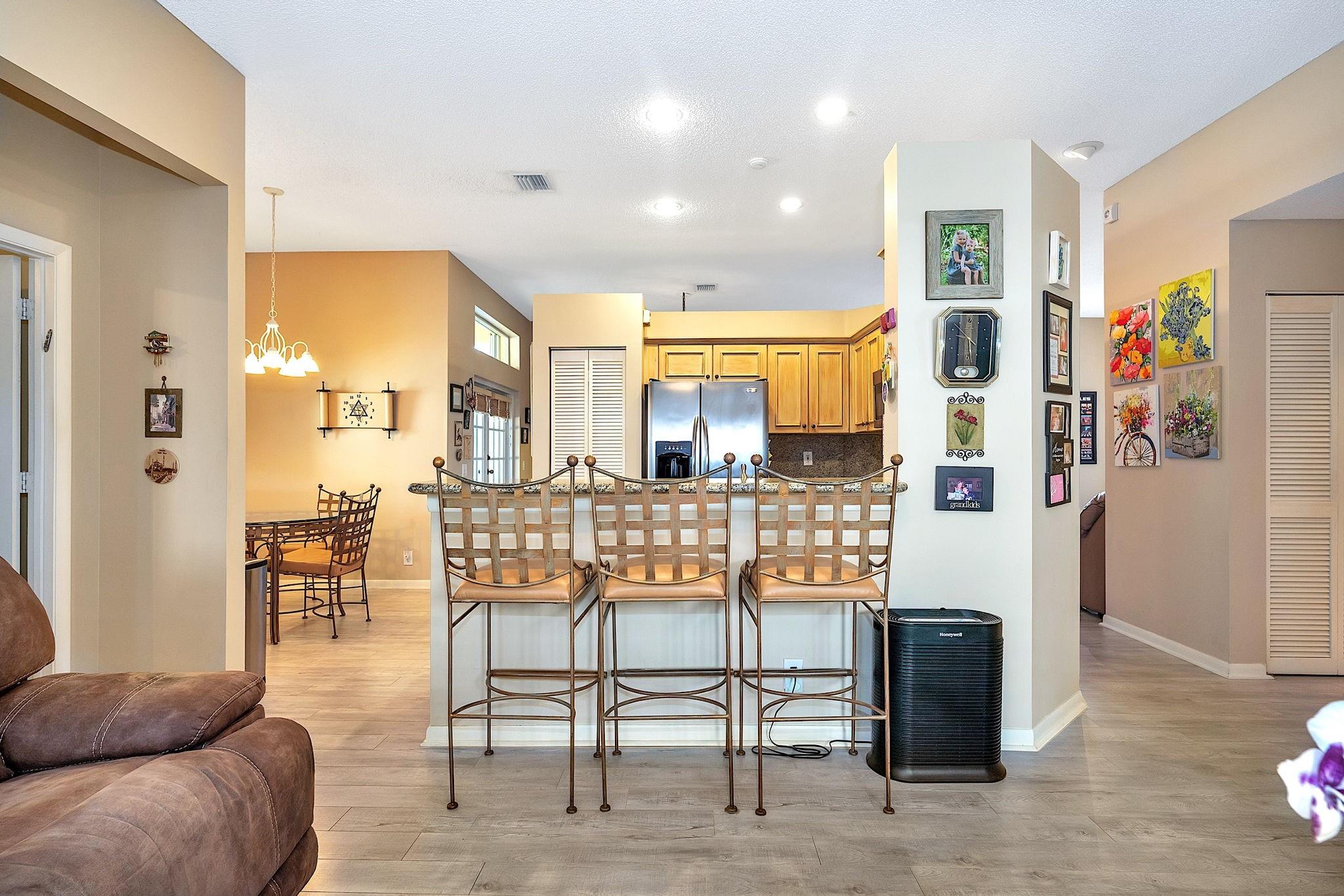 This spacious 3-bedroom, 2-bathroom home boasts a beautifully upgraded kitchen and baths and hurricane accordion shutters throughout. New roof before closing!!!The open living area features laminate floors, adding elegance and durability to your home. Step outside to the extended screened patio and take in the stunning wide lake views, offering a serene and picturesque backdrop. Nestled in a peaceful cul-de-sac, this home provides a tranquil living environment. Additionally, the garage is equipped with ample cabinetry, providing plenty of storage space for your needs. Don't miss this opportunity to make this exceptional property your new home!
