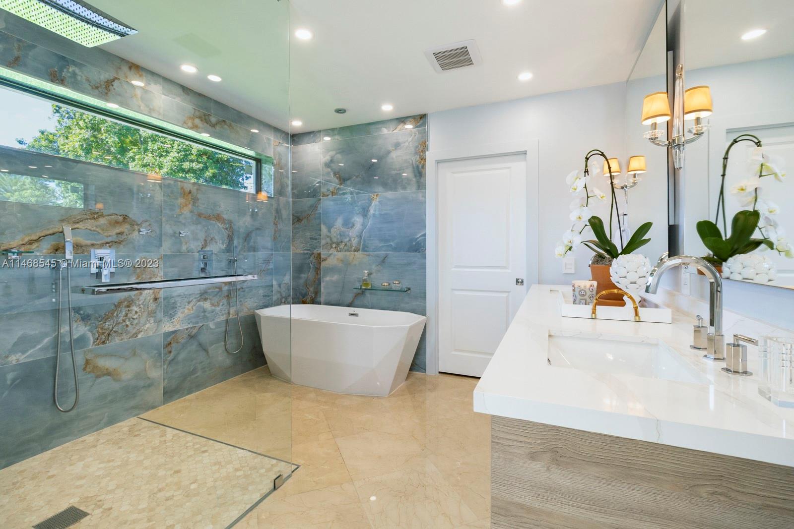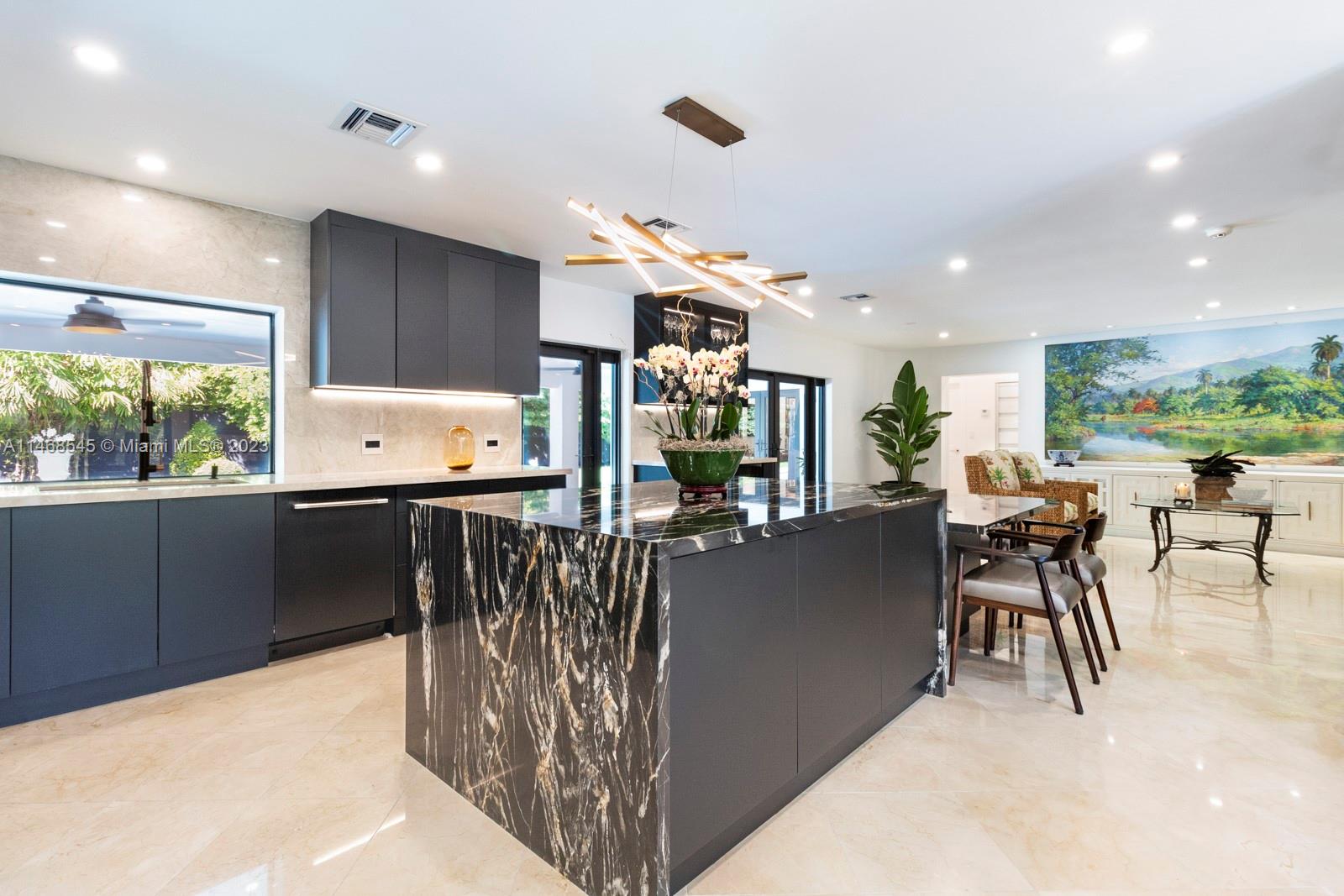 Magnificent 5 Bedroom 4.5 Bath Pool Home in coveted North Pinecrest. Home features include new roof, impact windows and doors, marble floors throughout. High end designer kitchen and appliances with huge island with combined dining area is perfect for entertaining and family reunions. The open concept design lends itself for gracious living with French doors opening to a large, covered terrace with an adjacent deck and sparkling pool. Large primary suite with dual walk-in closets also boasts a beautiful primary bath with soaking tub and walk in shower. Elegant and functional this home was designed with comfort and style sure to please even the most discerning of buyers.