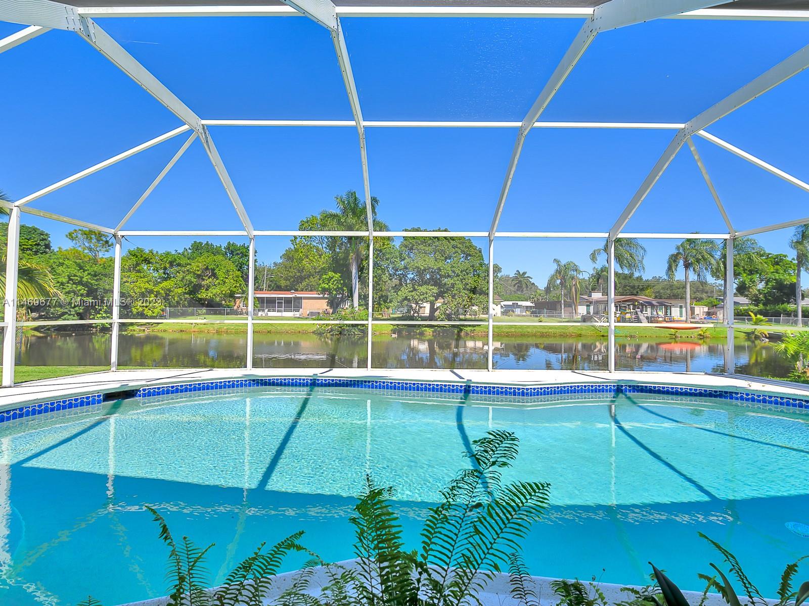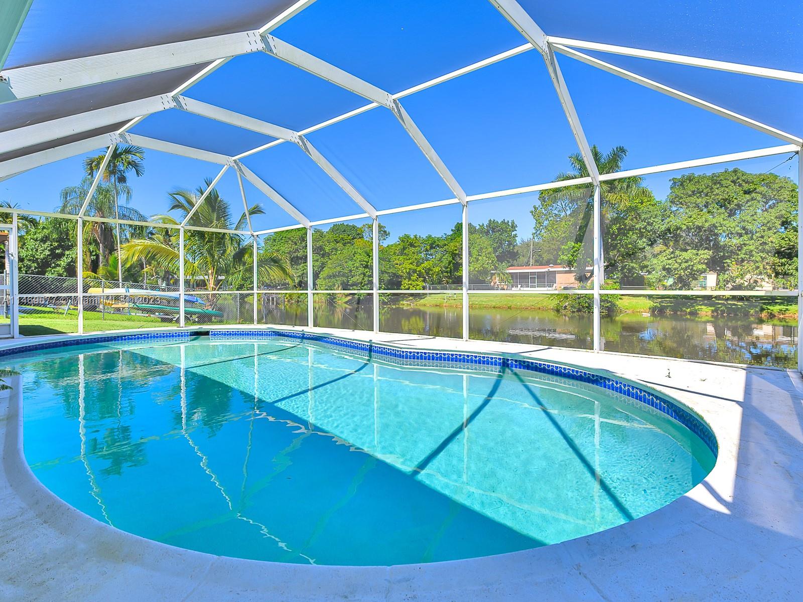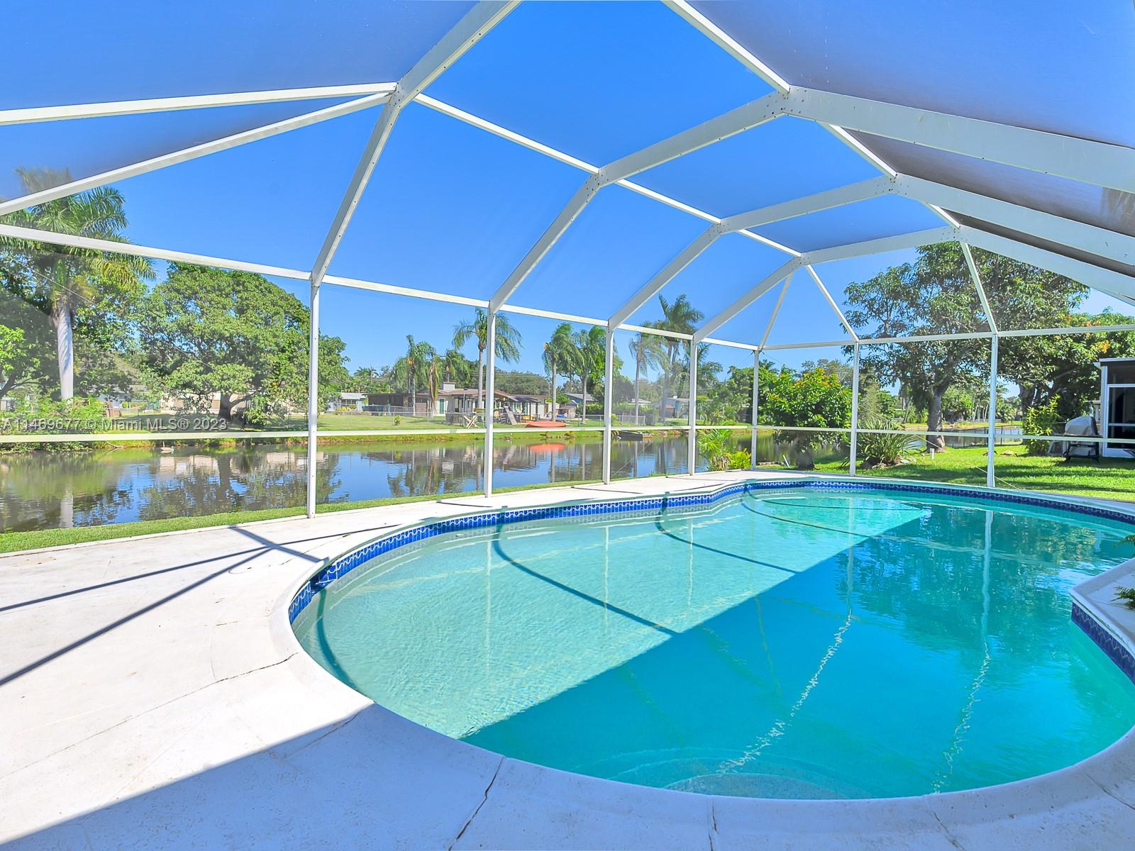 NEW ROOF COMPLETED JANUARY 2024- SHINGLE & FLAT - PRICE REDUCED $$ - Impeccably maintained 2 bedroom 2 bath 1 car garage - double wide circular driveway - roofed screened pool & patio - 8,500 sq ft waterfront canal lot with a seawall - tastefully remodeled kitchen and baths - tile flooring diagonal layout - accordion storm shutters - "no carpet" all Cooper City "A" rated schools - no HOA - automatic sprinkler system - newer interior 6 panel doors with lever handles - freshly painted. Truly move-in condition. Community Amenities: Beyond schools, Cooper City offers a wealth of amenities, including parks, sports facilities, enhancing your family's quality of life. Call today for your private showing.