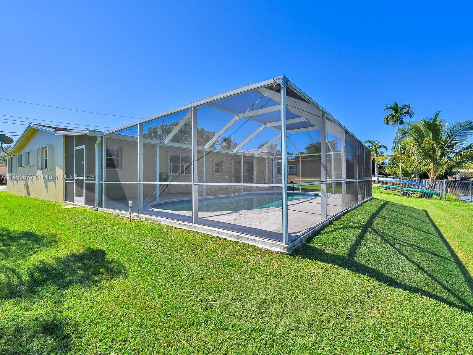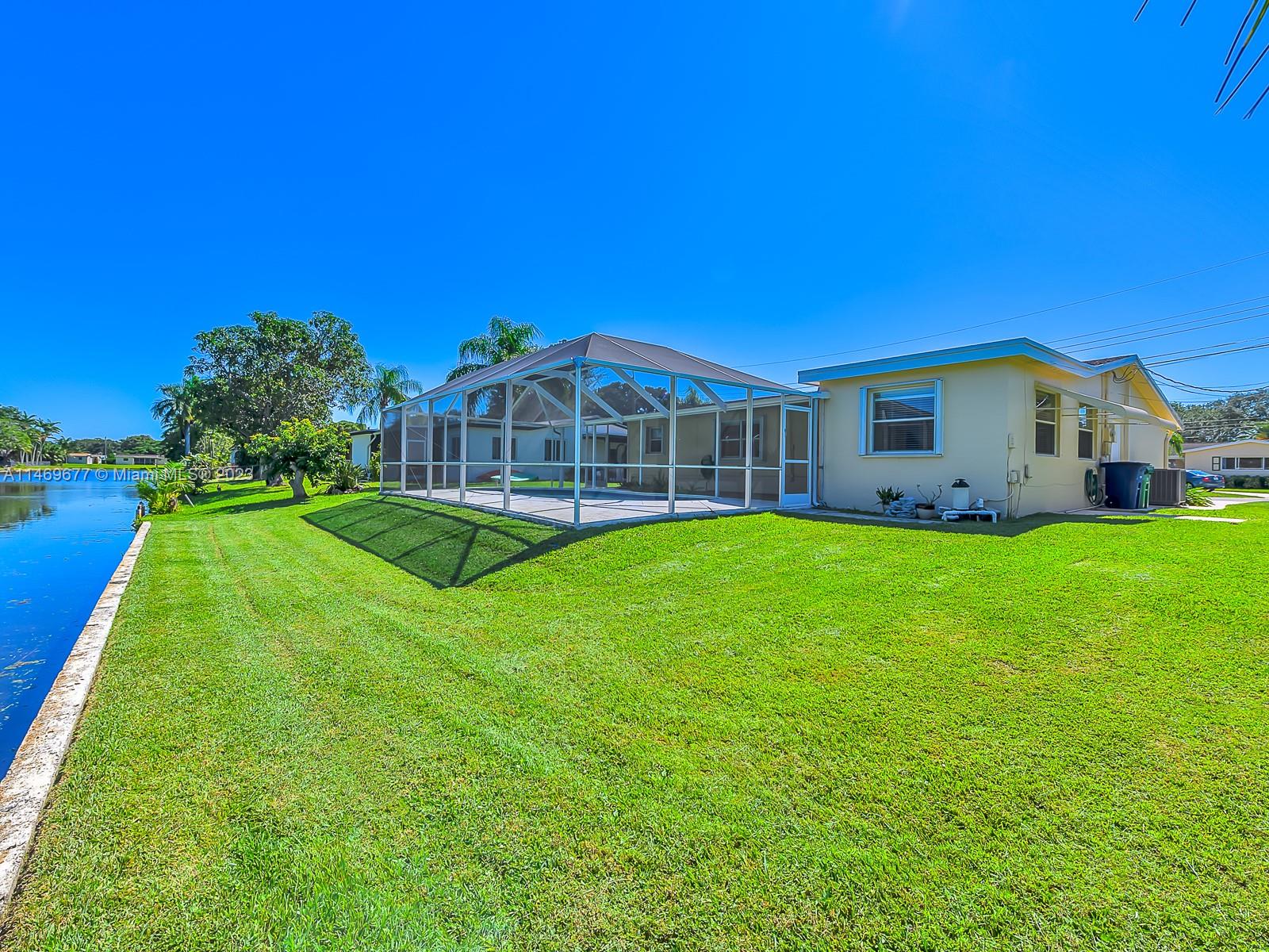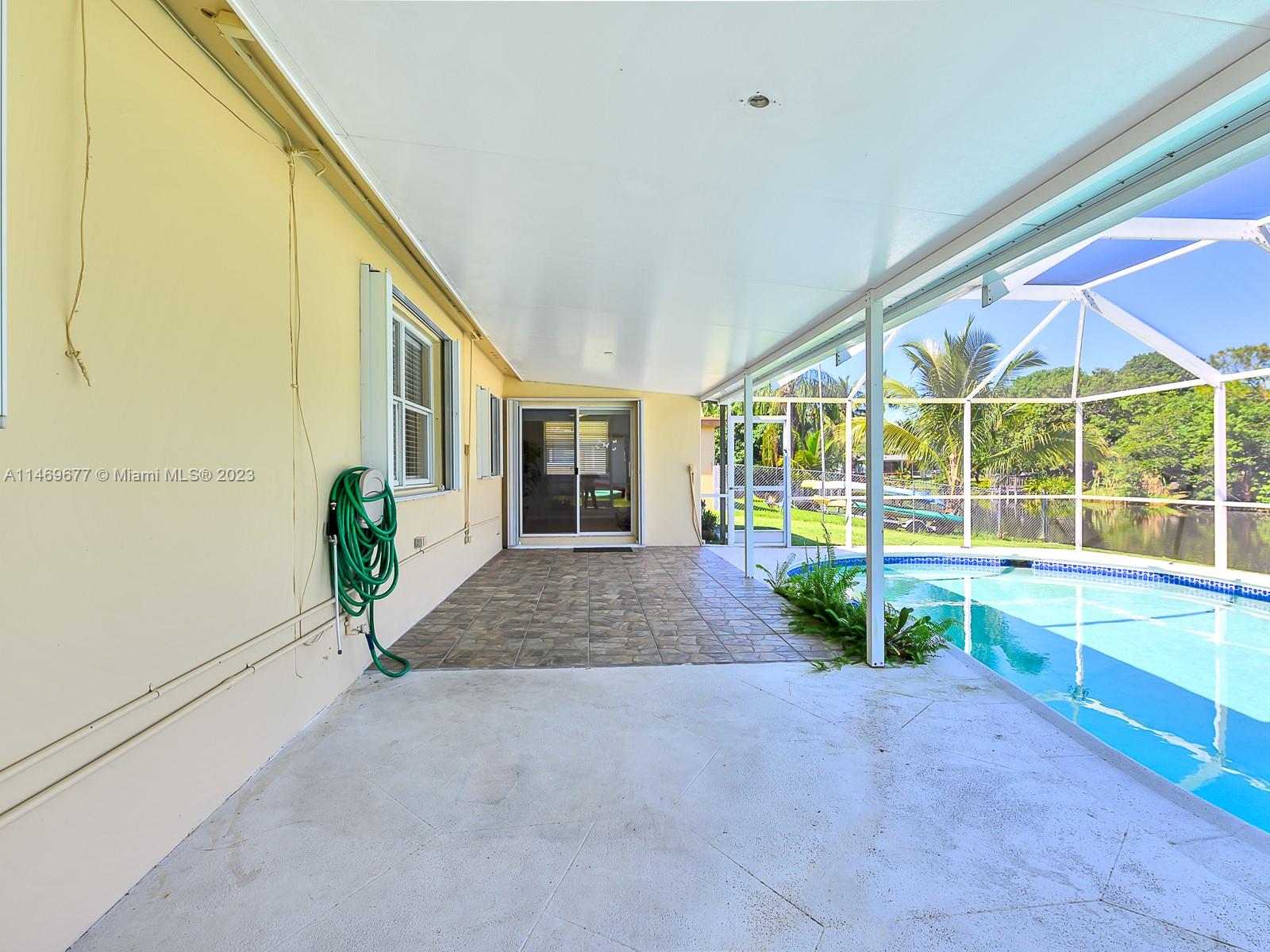 NEW ROOF COMPLETED JANUARY 2024- SHINGLE & FLAT - PRICE REDUCED $$ - Impeccably maintained 2 bedroom 2 bath 1 car garage - double wide circular driveway - roofed screened pool & patio - 8,500 sq ft waterfront canal lot with a seawall - tastefully remodeled kitchen and baths - tile flooring diagonal layout - accordion storm shutters - "no carpet" all Cooper City "A" rated schools - no HOA - automatic sprinkler system - newer interior 6 panel doors with lever handles - freshly painted. Truly move-in condition. Community Amenities: Beyond schools, Cooper City offers a wealth of amenities, including parks, sports facilities, enhancing your family's quality of life. Call today for your private showing.