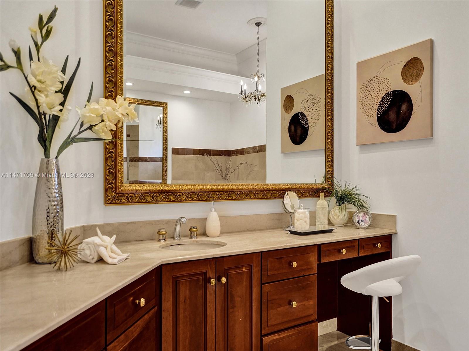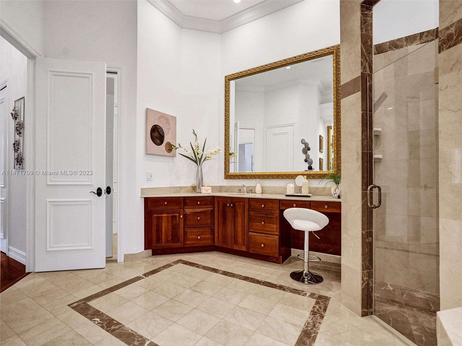 Situated in the esteemed Windmill Lake Estates, this 4-bed, 4.5-bath sanctuary exudes luxury and privacy. A grand circular driveway and 3 car garage greet you, while serene water views and lavish lap pool within lush landscape define the outdoor experience. Marble floors, fireplace, and French doors elevate the main living areas. High ceilings accented by crown molding and gourmet kitchen—outfitted with a wood island, custom cabinets, and high-end appliances. The owner's suite is a private retreat with hardwood floors, plantation shutters, and patio access with a marble-clad primary bath with dual sinks, a Jacuzzi tub, and a shower. Well-appointed office with its own half bath. New impact-resistant windows and doors and a new roof are the finishing touches on this luxurious abode.