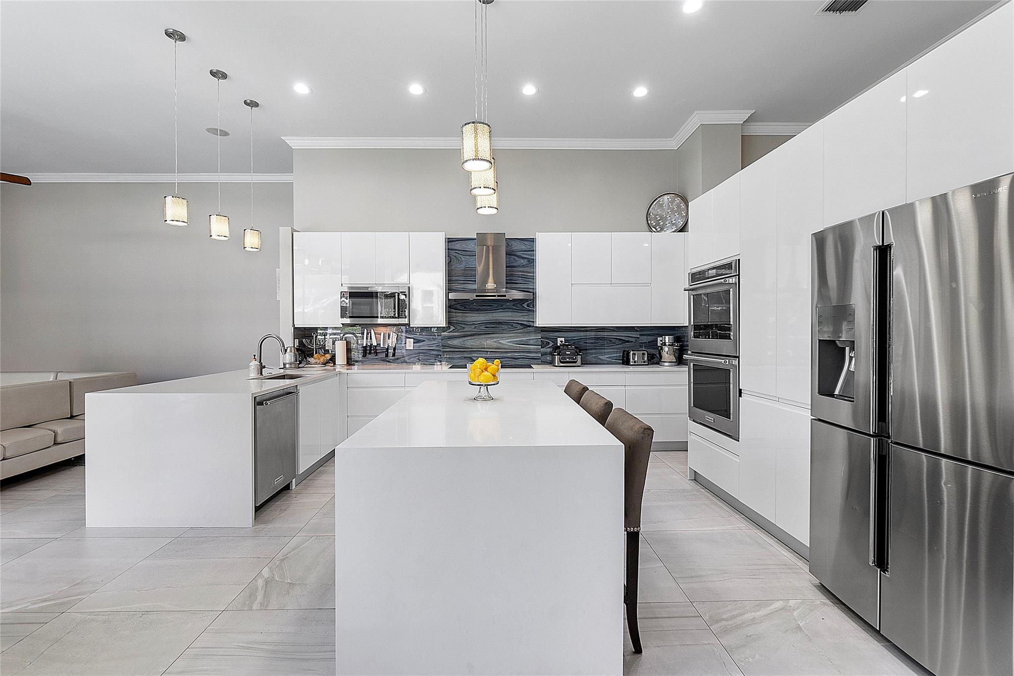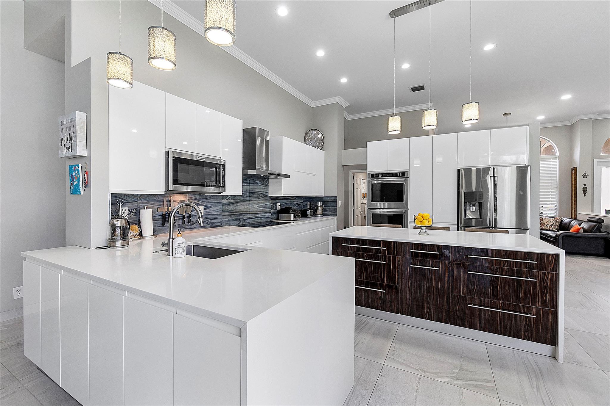 BEAUTIFUL 4/3 IN KENSINGTON COMMONS WITH TRIPLE SPLIT BEDROOM PLAN. HOME WENT THRU RENOVATION A FEW YEARS BACK WITH PORCELAIN TILES THRU OUT, GOURMET KITCHEN WITH LARGE ISLAND. KITCHEN HAS 2 WALL OVENS, BUILT-IN PANTRY, QUARTZ COUNTERTOPS, AND MORE. SS APPLIANCE PACKAGE IS KITCHEN AID. 4TH BEDROOM HAS PRIVACY POCKET DOOR AND FULL BATH THAT ALSO ACTS AS THE CABANA BATH. BREATHTAKING LARGE BACKYARD WITH POOL AND LOTS OF PRIVACY ALONG WITH OVERSIZED COVERED PATIO. CAMERA SYSTEM FOR PREMITER OF HOME STAYS WITH THE HOME. THIS IS A MUST SEE AND PRICED RIGHT. DON'T MISS OUT ON THIS AMAZING OPPORTUNITY!!!