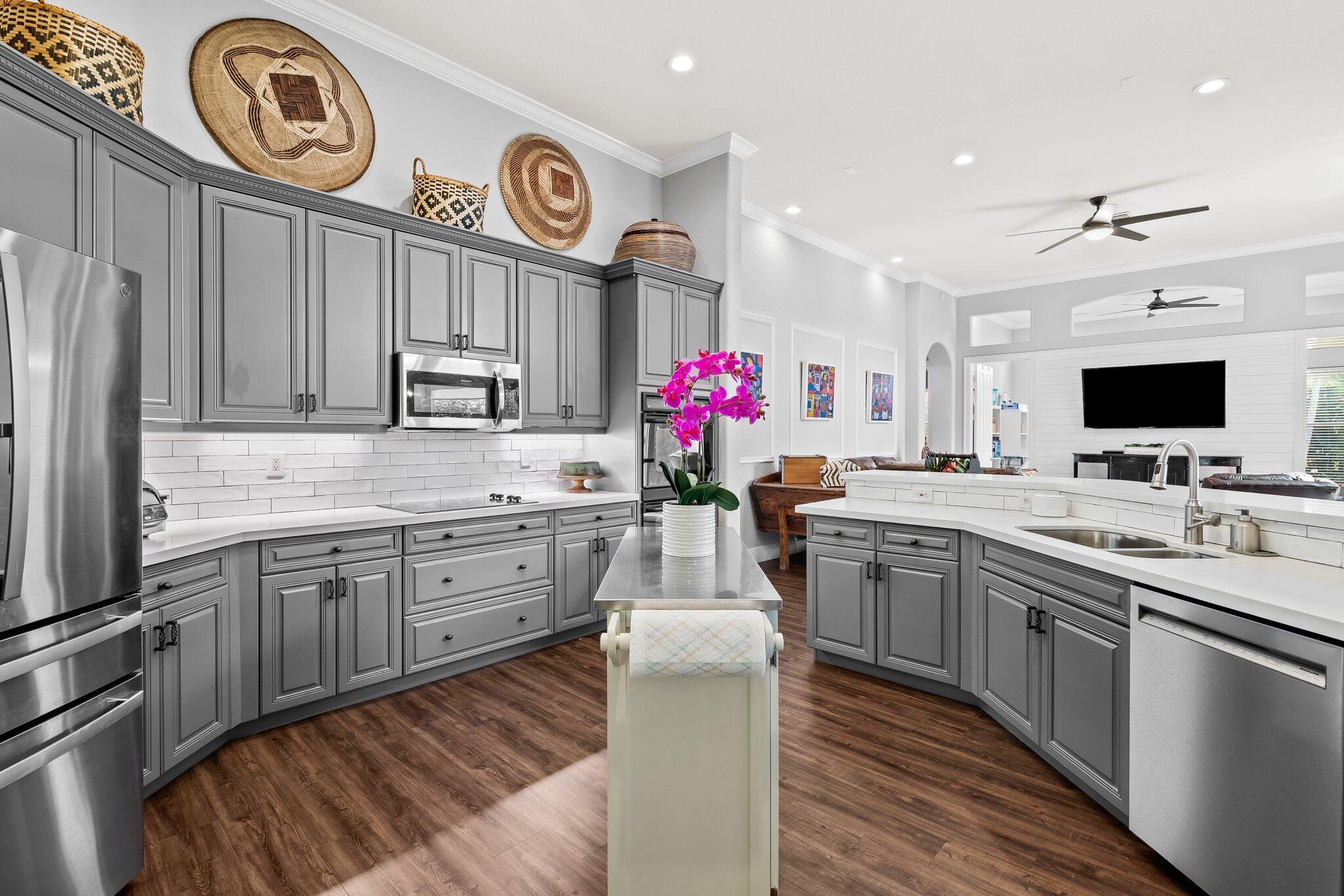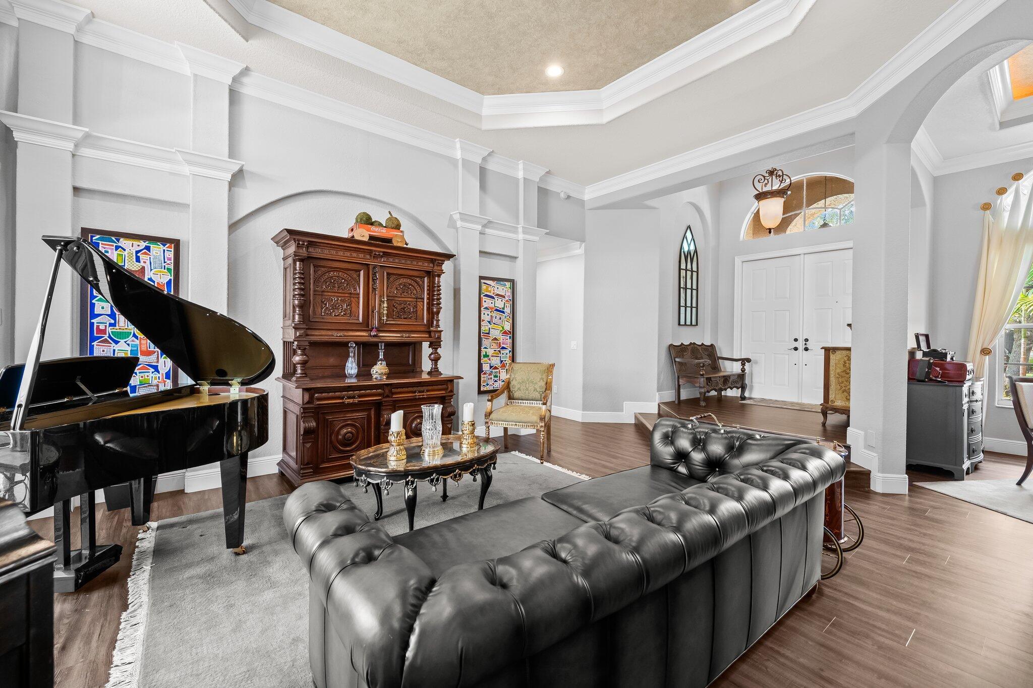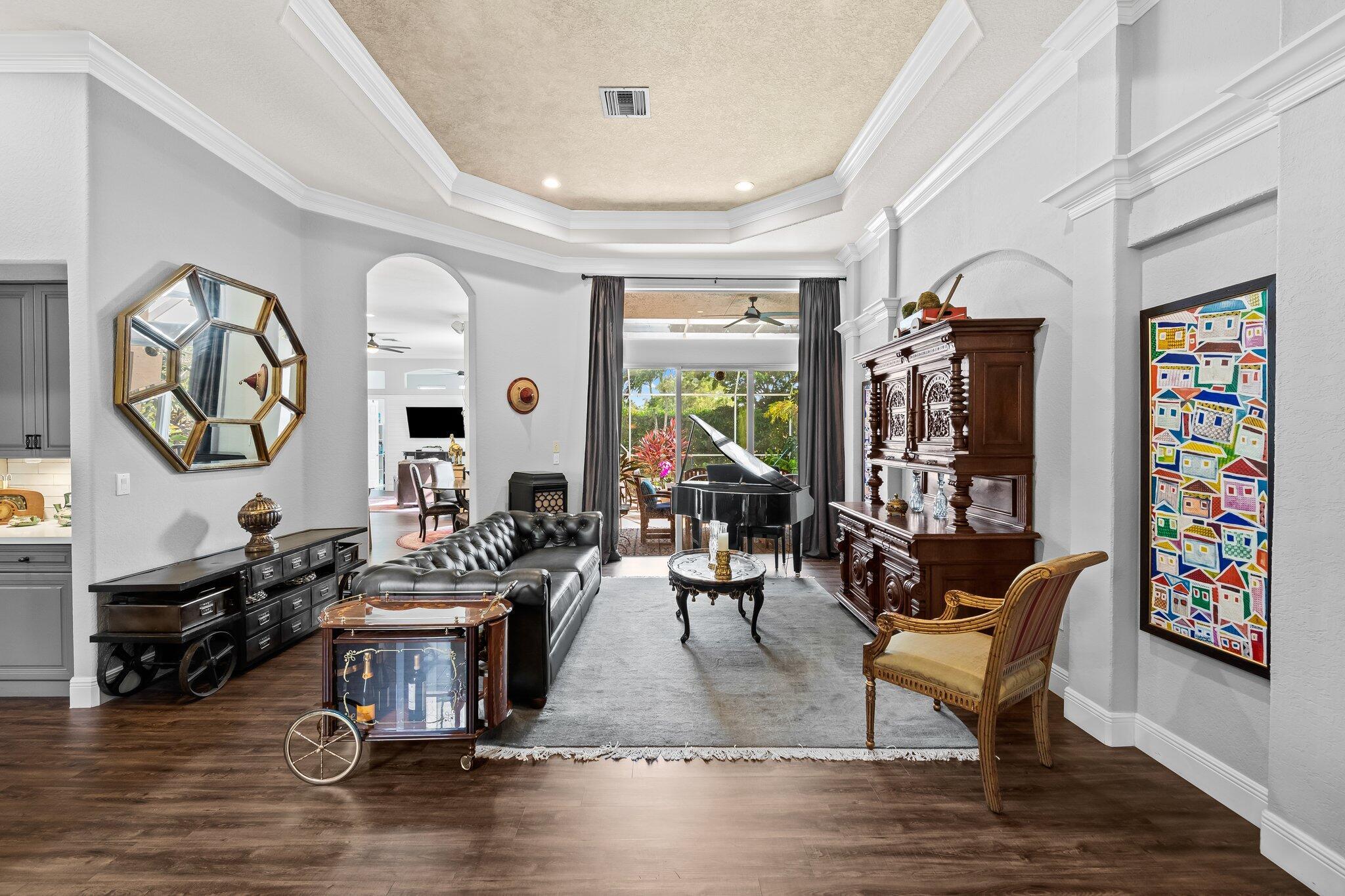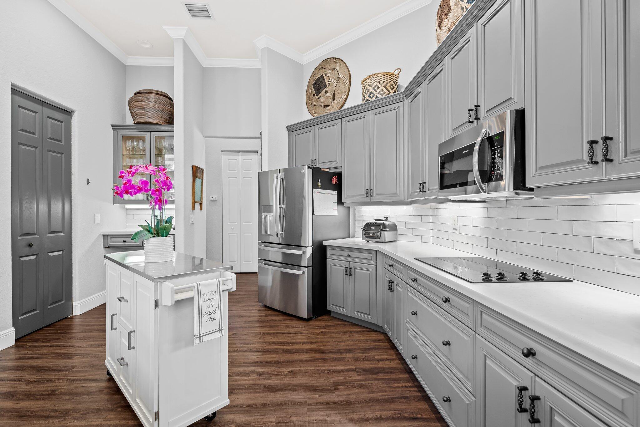 Beautiful one story Raphael model with 5 bedrooms, 3 full baths plus bonus room. This home is located on a quiet tree lined street in highly sought after Saturnia. This three way split floor plan with soaring ceilings, large foyer, luxury wood-look vinyl floors & lots of windows overlooking the pool & patio. Kitchen features wood cabinets, island for additional prep area, quartz countertop & counter height bar overlooking the family room. A walk in pantry for extra storage. Additional breakfast nook located off kitchen. Large family room perfect for entertaining. The bonus room is oversized making an awesome playroom, craft area or office. A peaceful primary suite with large windows overlooking the pool & patio with sitting area, two large custom built-in closets & double vanities