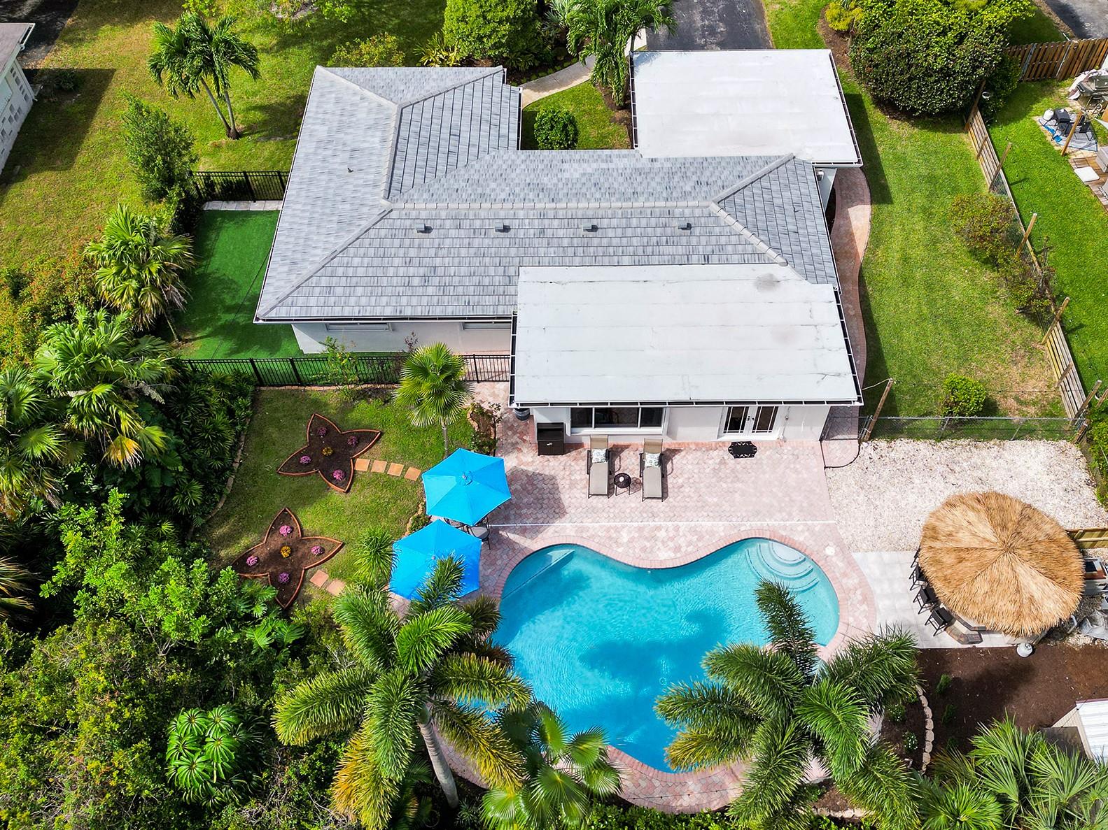 Beautifully updated 3 bed, 2 bath pool home on a gorgeous tree lined street in highly sought after Plantation Gardens. This immaculate home features a remodeled resort style pool with tiki hut, summer kitchen and patio area on a professionally landscaped oversized lot. Large open kitchen with updated appliances and pantry. Brand new roof, gutters and exterior paint. The location is excellent, within walking distance to Plantation Woods Park, community center, library, tennis courts, Plantation History Museum and Botanical Gardens. Easy access to shopping, airport, beaches and downtown Fort Lauderdale. Golfers will love the proximity to some of Broward County's best golf courses - Plantation Preserve, Jacaranda Country Club, Lago Mar Country Club and Fort Lauderdale Country Club.