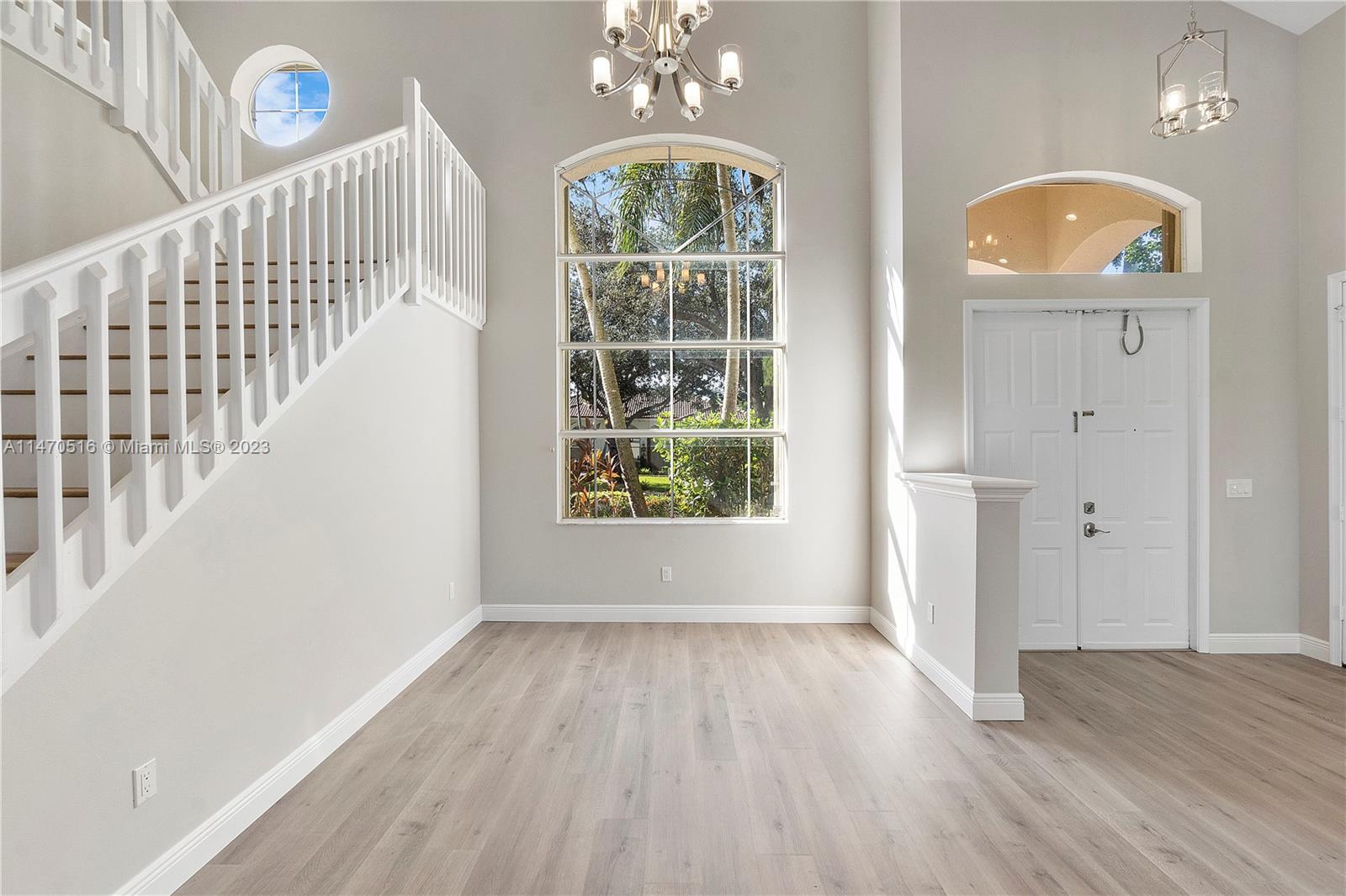 Beautiful 4 Bed/ 3 Bath + (5th Bed Loft) & 3 Car Garage Pool Home Located In Prestigious Yardley Estates. This Home Features An Open New Custom Kitchen W/ LG SS Appliances, Quartz Countertops W/ Island & Breakfast Bar. One Bedroom Downstairs Has Connecting Bathroom With New Vanity, Shower W/ Frameless Enclosure. New Flooring Throughout, All New Light Fixtures & Fans, LED Recessed Lighting, Siemens Electrical Panel. Water Heater 2020. 2 Newer AC's. Large Primary Suite W/ Dual Walk-In Closets. Upgraded En-Suite Bathroom With Freestanding Tub, Dual Sinks & Upgraded Shower. Two Other Bedrooms Share Updated Hall Bath W/ Dual Sinks, & Upgraded Tub/Shower. Large Private Fenced Corner Lot w/ Newly Renovated Pool, Mango Trees, & Accordion Shutters. Located Near A Rated Schools & Park. Low HOA.