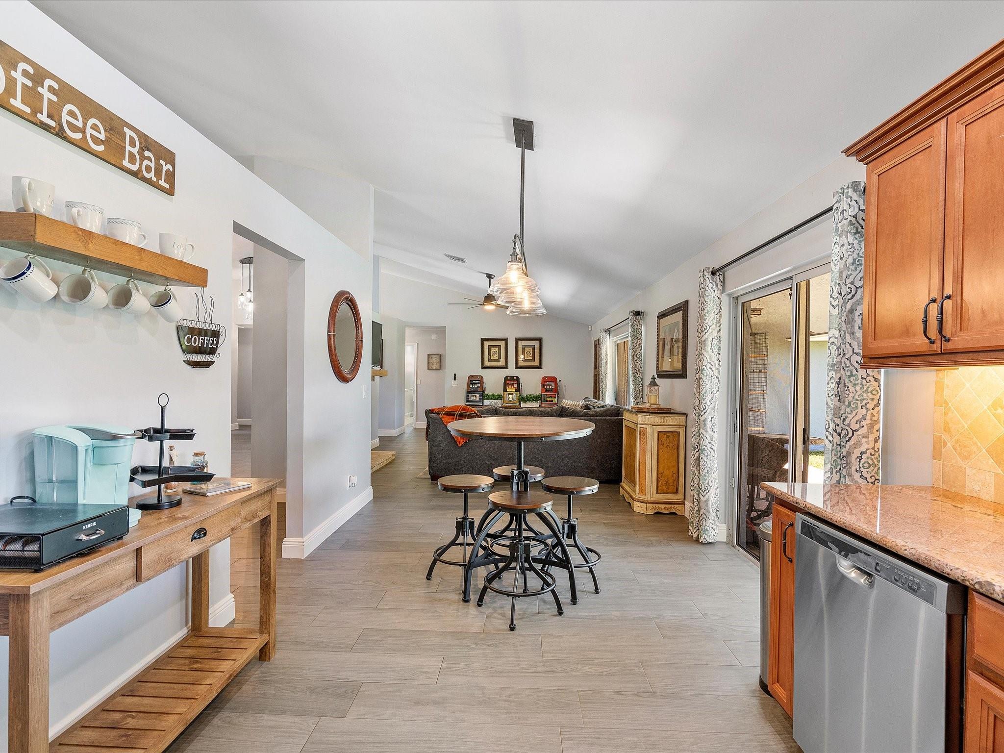 This is the Plantation Acres home you've been waiting for. This spacious 4 Bedroom 2 Bath home features tile flooring throughout, vaulted ceilings, & Formal Dining/Living rooms. You'll love the upgraded kitchen wood cabinetry, soft close doors & drawers, under cabinet LED lighting, granite countertops, double pantry w/pull-out shelves, and stainless steel appliances. The vaulted ceilings continue in the Primary Suite where there's also sliders to the patio, walk-in closet with custom built-ins, and an ensuite with dual vanities. There's also a metal roof, hurricane-impact shutters/panels, a hurricane-impact garage door, 2 car garage, and a fully fenced yard with plenty of room for a pool. Here you'll be close to parks, shopping, dining and major freeways. **Realtors See Brokers Notes