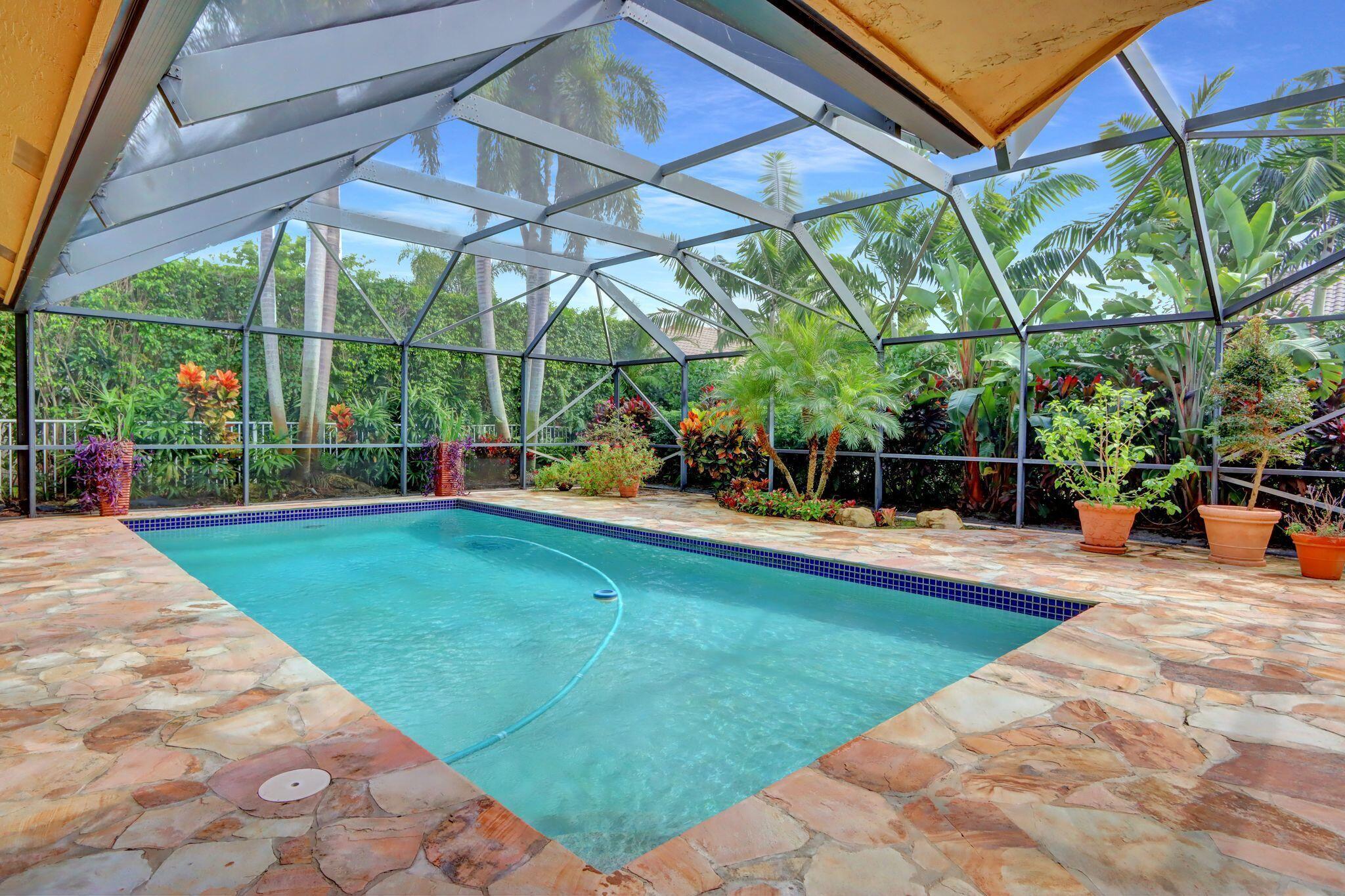 JUST REDUCED! This immaculate & bright one-story pool home offering 3 bedrooms plus an office features a double door front entry; volume ceilings with crown moldings; flat wall finish & wainscoting;Saturnia marble & wood floors; open kitchen with 42'' white cabinetry, granite counters & backsplash,farm sink, stainless steel appliances and an inviting breakfast nook;plantation shutters;solid core molded doors; a spacious primary suite with custom closet design & a marble bath; large utility room; 2-car garage & circular driveway. French doors open across the rear of the home to a covered lanai & a spacious screened patio area of stone pavers with an oversized pool surrounded by extensive tropical landscape design. Roof 2021, A/Cs - 2022, 2015, Japanese water heater 2021. Move right in