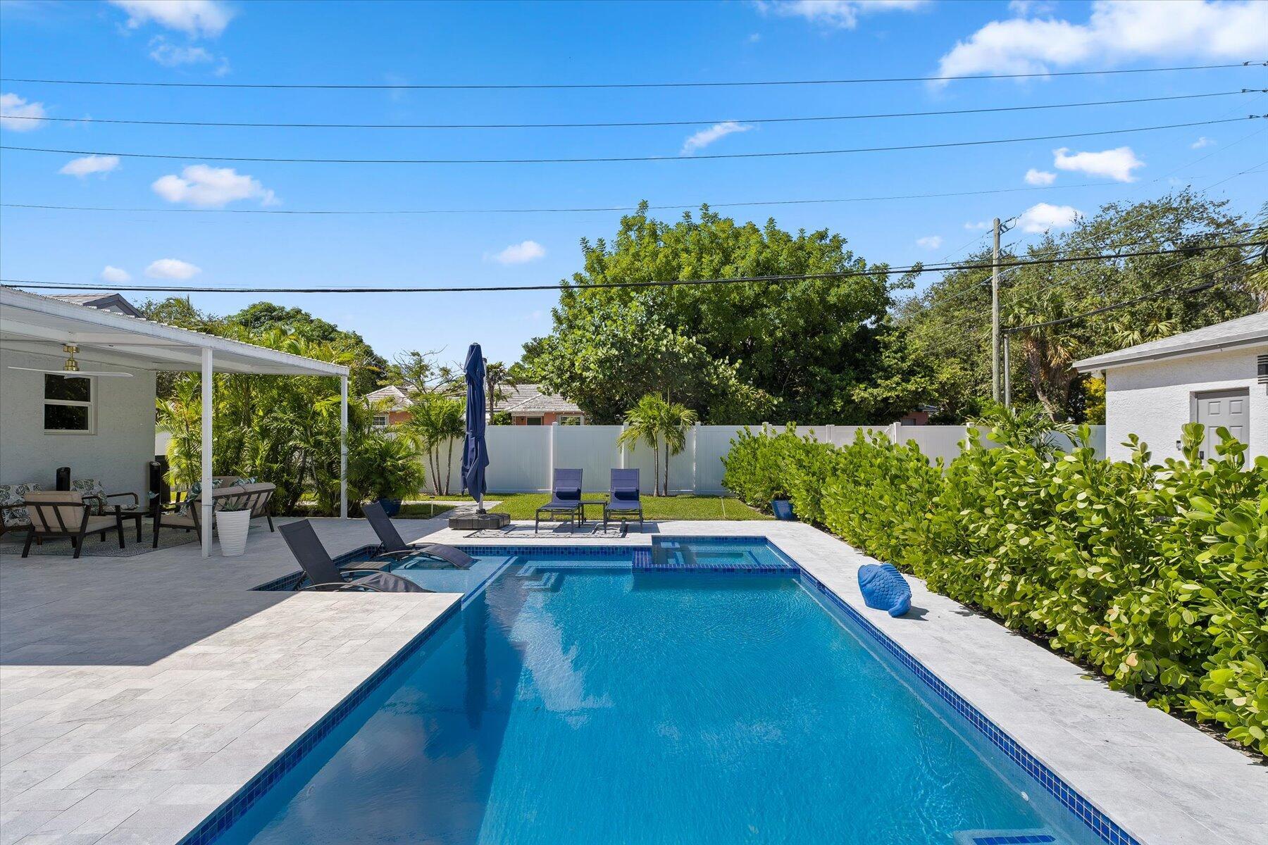 Fantastic opportunity to own this lovely redone home with a detached guest house all enclosed with brand new fencing to make a very private compound. New resort style heated salt pool/spa. Guest house has separate parking entrance & separate laundry room. This stylish home rests in the SoSo neighborhood close to some of the best restaurants in our area and just 3 blocks to the Intracoastal. Home was totally gutted in 2019 with new roof, impact windows, wiring, & A/C. Owner continued on with many upgrades such as new GE profile package including refrigerator, dishwasher, gas range, disposal, gold touchless faucet, outdoor shower, new sprinkler system, marble pavers, extended driveway with pavers, etc. etc. A must see for sure! Don't miss out on this great home