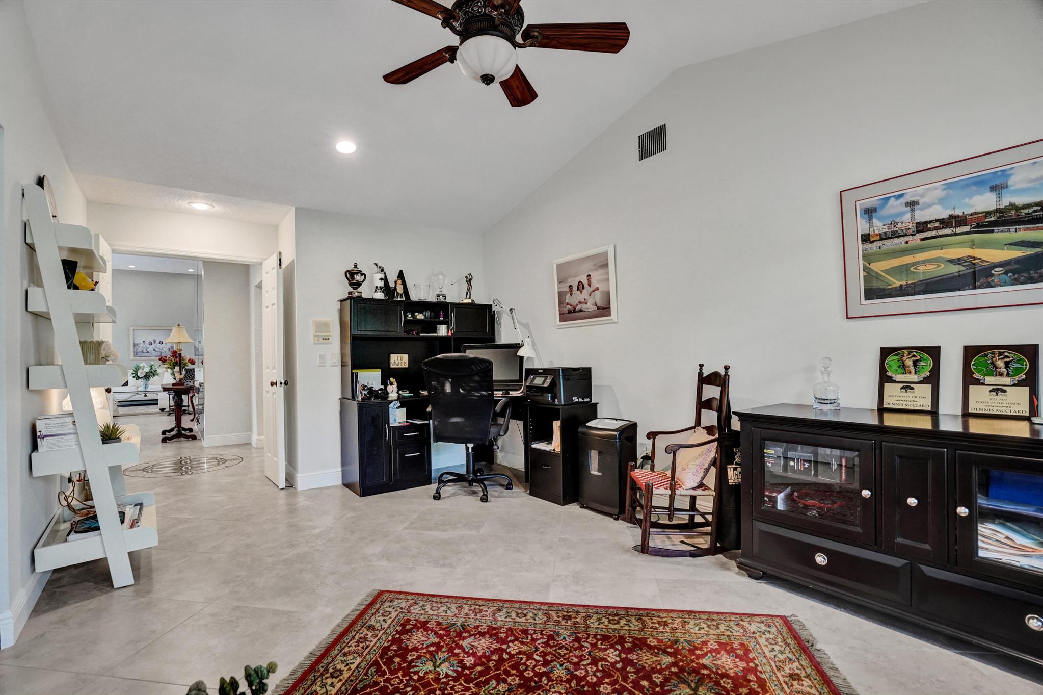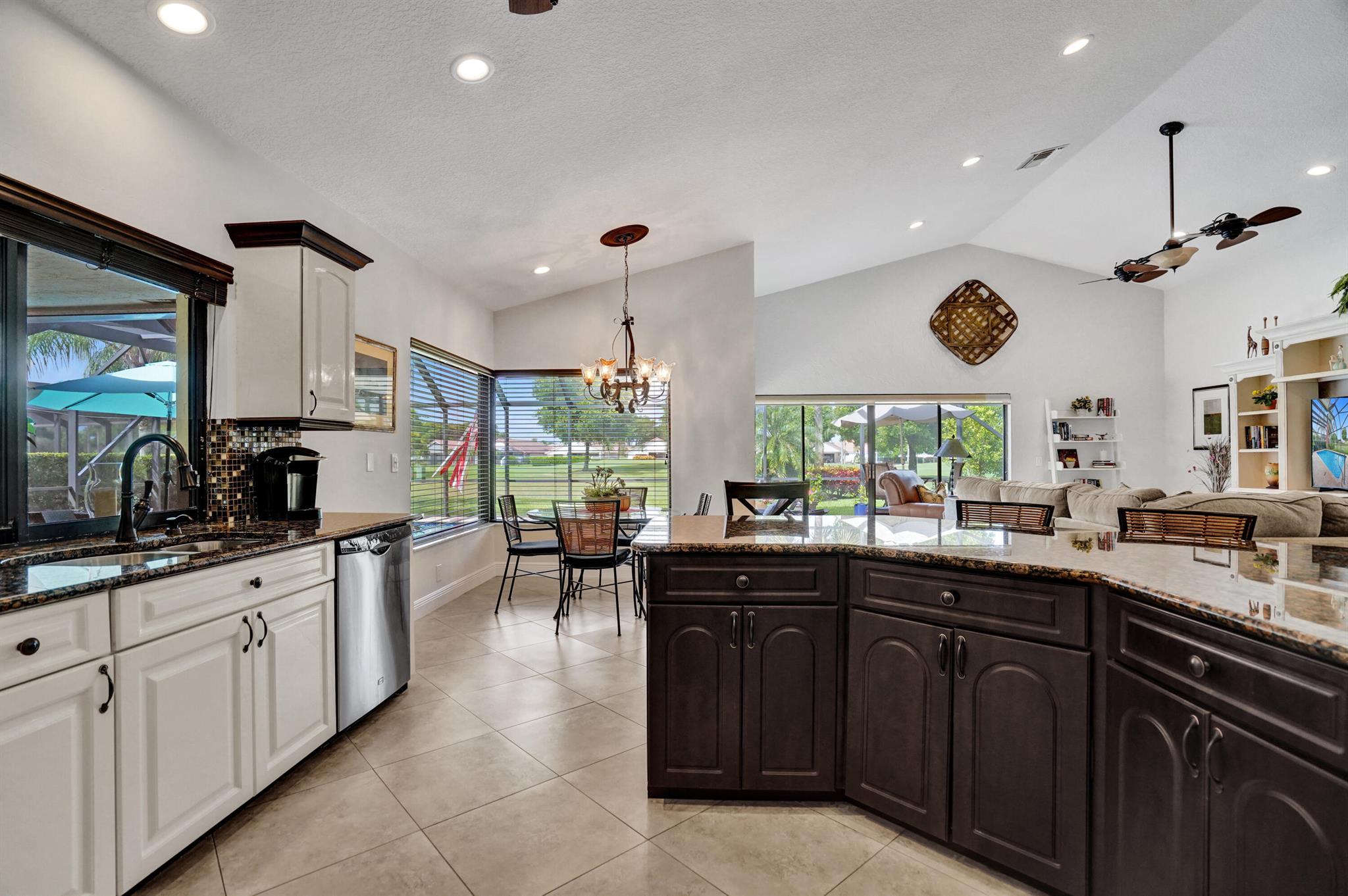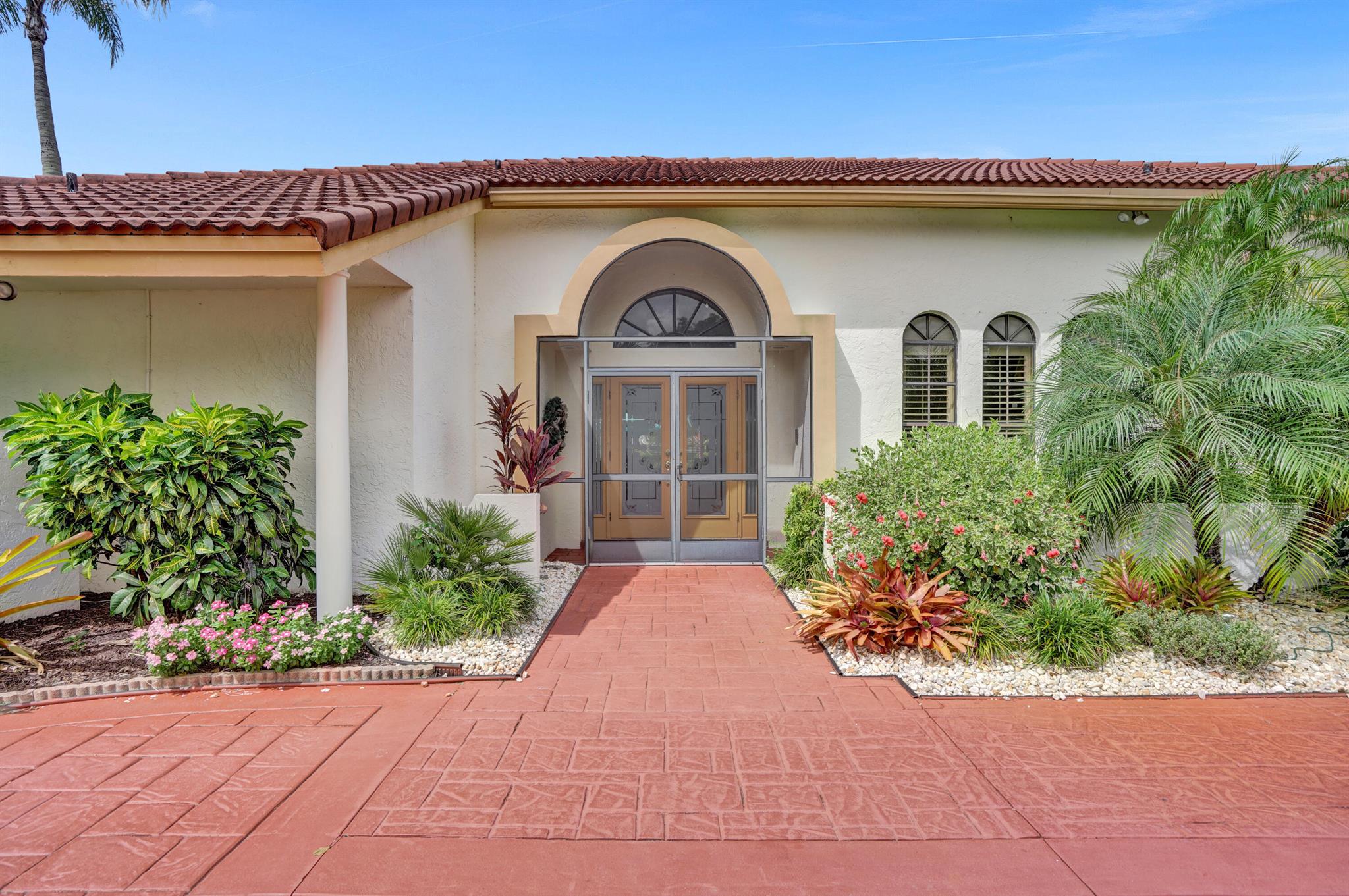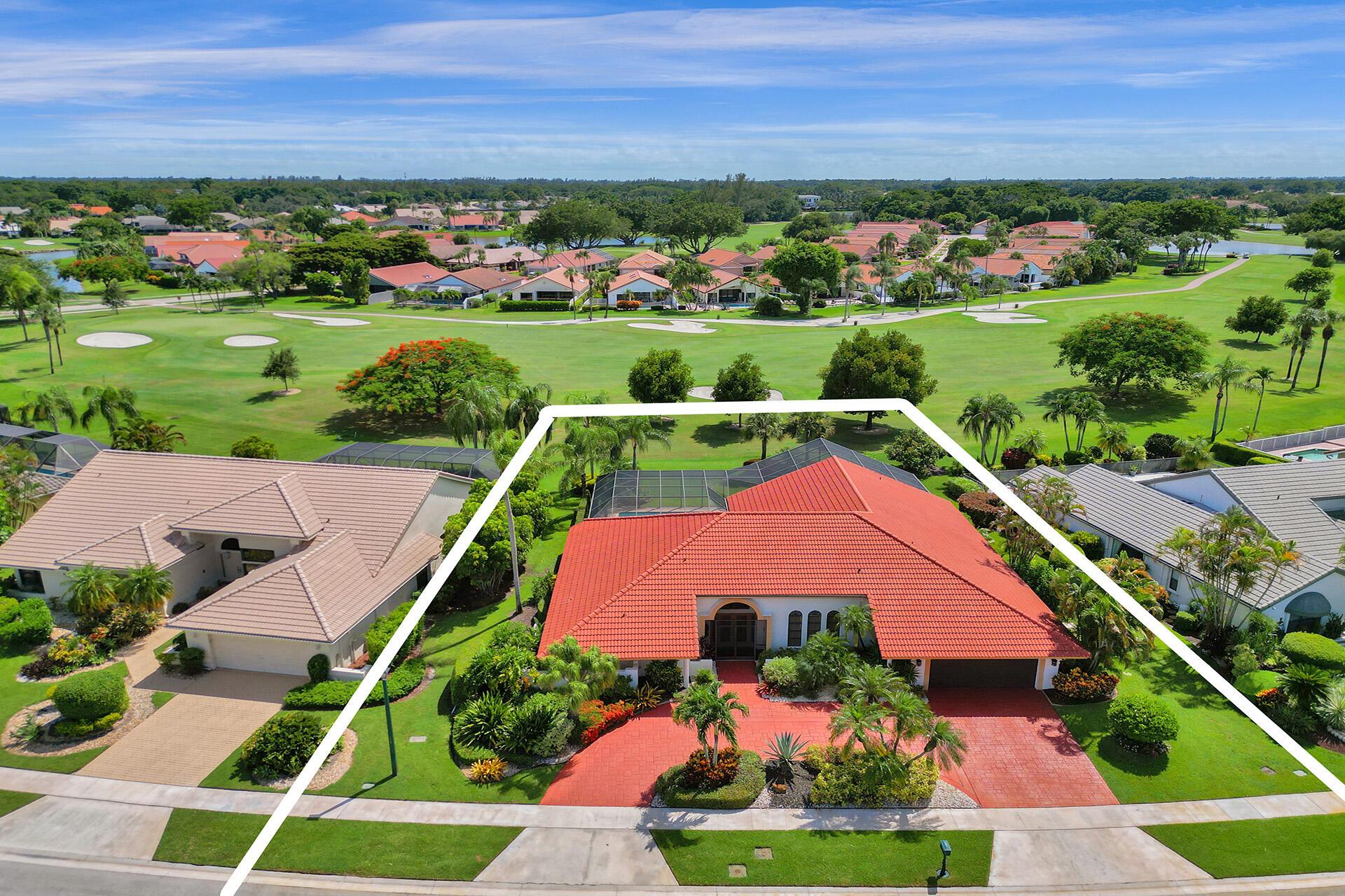 You will love this beautiful Corinthian model in the all-age golf community of Boca Woods. The home is just under 3000 sf; has 3 large bedrooms, 3 full bathrooms and an enclosed patio with a pool. Renovations were completed several years ago and included floors, kitchen and bathes; the house has been impeccably maintained and is in move-in condition. Upon entering the home you are welcomed into a large living area with vaulted ceilings, an adjacent dining room and views of the pool and golf course. The spacious eat-in kitchen/family room provide a gathering point for family fun and entertaining. The home is located on the 11th fairway of the Lakes course and provides amazing views of both the tee and the green. Generac partial home generator is included. Membership is mandatory